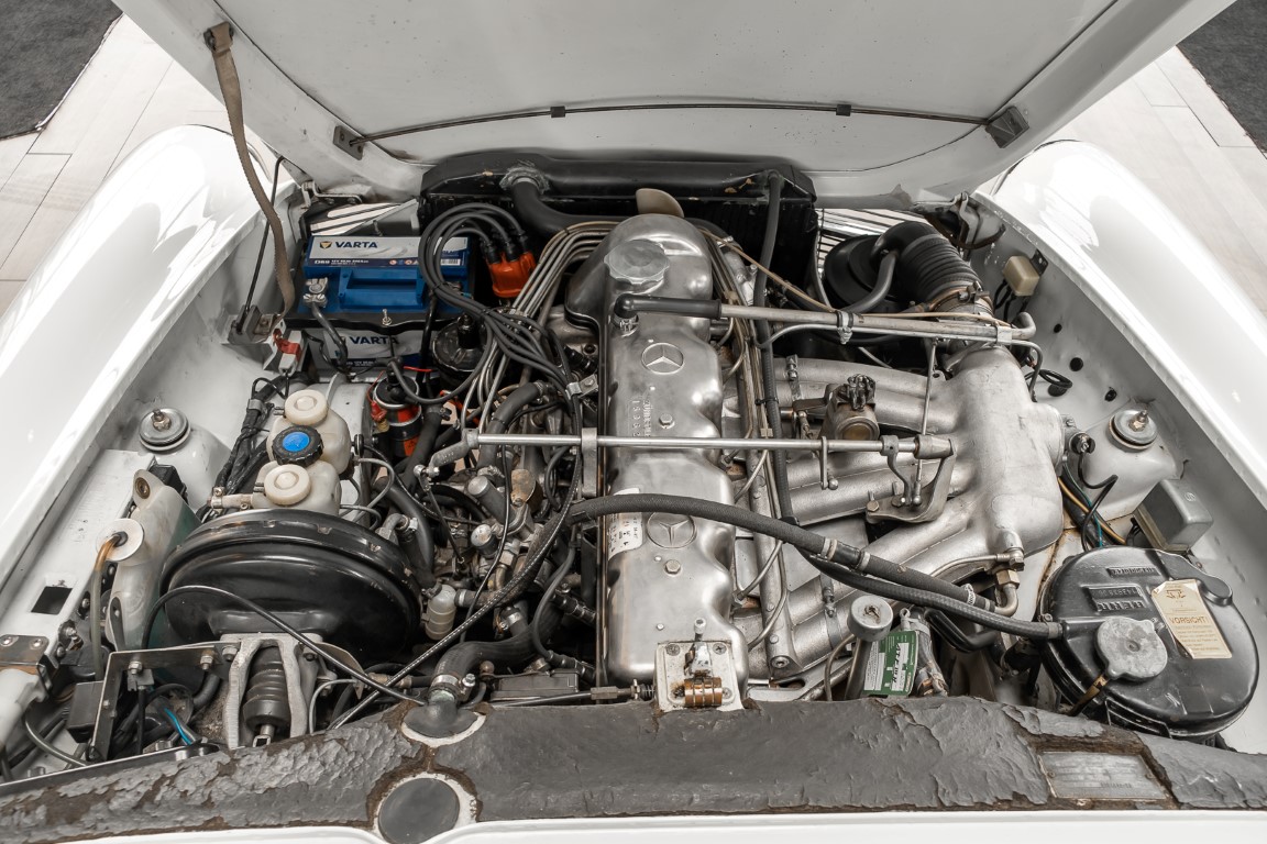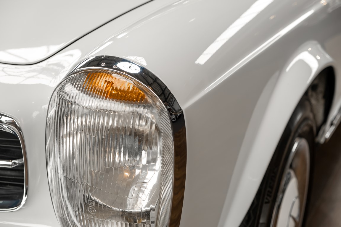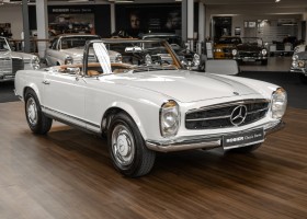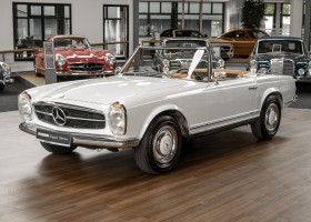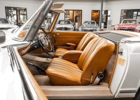 Eine wahrhaft einzigartige 230 SL Pagode können wir Ihnen mit diesem Traumroadster in klassischem Papyrusweiss mit braunem Kunstleder anbieten. Nicht mehr oft wird man eine solch originale und toperhaltene Pagode finden. Dem originalen Kundendienstheft ist zu entnehmen, dass das Fahrzeug am 17.11.1966 an seinen Besitzer in die französische Metropole Paris, genauer gesagt in die Gemeinde Ivry-sur-Seine – etwa 7km südöstlich des Pariser Stadtzentrums, geliefert wurde. Den lückenlosen Einträgen zufolge verblieb das Fahrzeug bis 1978 in Paris. Einträge aus Nizza und Monaco zeugen von ausgiebigen Reisen an die malerische Côte d’Azur, in dessen Umgebung sich dieser Klassiker wohl bestens eingefunden hat.