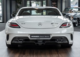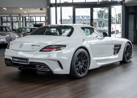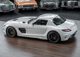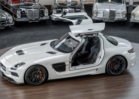 Im Juni 2013 war der offizielle Verkaufsstart der Highend-Version des Flügeltürers, den SLS AMG Coupé Black Series. Wer dieses von der Rennversion SLS AMG GT3 inspirierte Supersport-Coupé haben wollte, musste schnell sein: Denn die gerade einmal 408 Einheiten wurden von Sammlern aus der ganzen Welt sehnsüchtig erwartet und waren unverzüglich ausverkauft. Das fünfte Black Series-Modell von Mercedes-AMG faszinierte seine Liebhaber durch atemberaubendes Design, überragende Fahrdynamik und konsequenten Leichtbau. Mit einem Leergewicht von 1550 Kilogramm und einer Motorleistung von 631 PS bei 7400/min erreicht der SLS AMG Black Series ein Leistungsgewicht von 2,45 kg/PS. Damit wird der dynamischste straßenzugelassene Flügeltürer in nur 3,6 Sekunden auf Tempo 100 katapultiert.