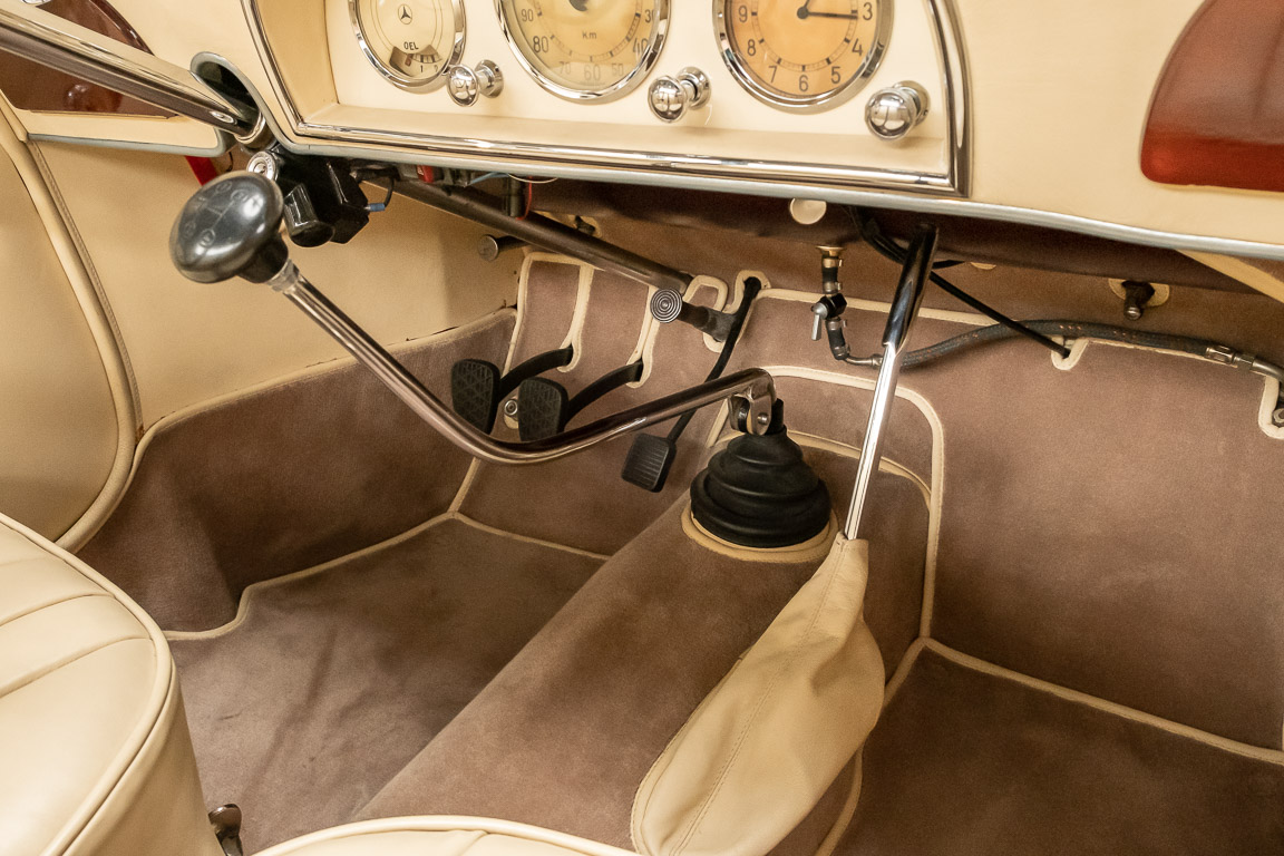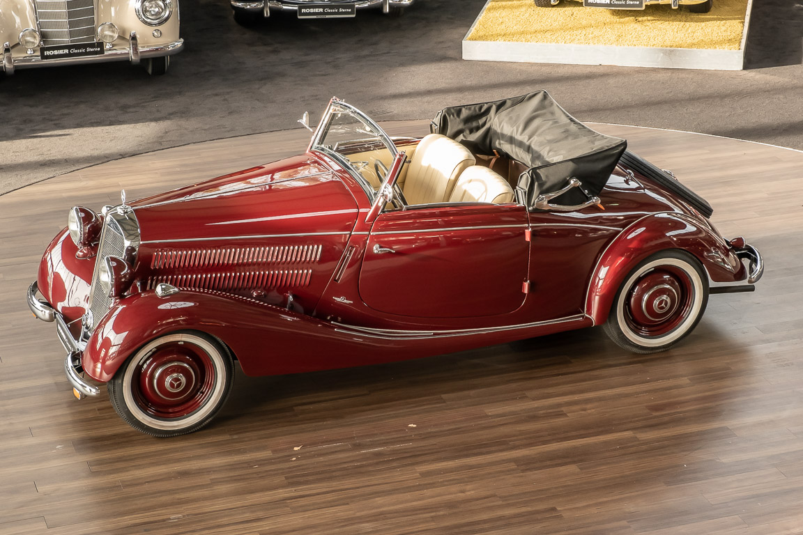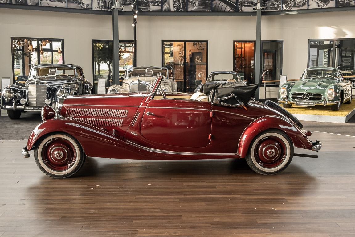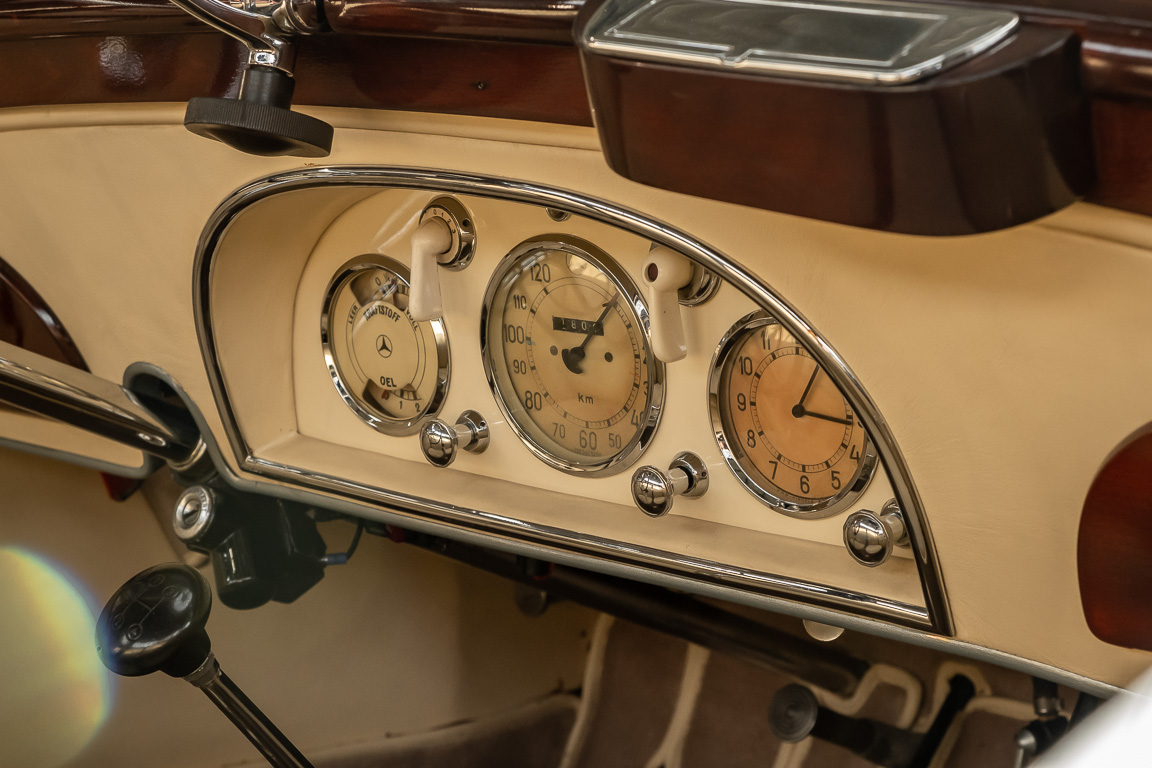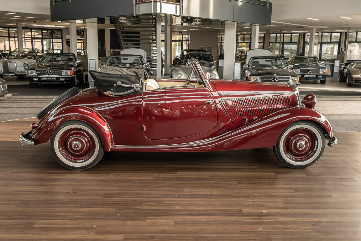 Ein Cabrio Traum mit super Historie ist dieses Mercedes-Benz 170V Cabriolet A aus dem Jahre 1938. Der Wagen wurde im Oktober 1938 über das bis heute bestehende Autohaus Metje + Ziegler in Windhoek, Namibia, an Jürgen Voigts in Voigtsgrund im Bezirk Gibeon, ausgeliefert. Die Farm der angesehenen, deutschstämmigen Familie Voigts, umfasste zu dieser Zeit bereits 160.000 Hektar meist Eigenland und war bekannt für seine etwa 17.000 Tiere umfassenden Karakulschaf-Herden. Die Kriegsjahre verblieb der Wagen in Namibia und kam erst nach dem Krieg zurück nach Deutschland. Er fand seine Heimat im Raum München und gehörte Mitte der 1960er Jahre unter anderem dem Schauspieler Danilo Zschauer aus München, wie man dem noch original vorhandenen Pappbrief entnehmen kann. Am 25.08.1978 kam das Cabrio gemäß dem uns vorliegenden originalen Kaufvertrag in den Besitz eines höchst erfolgreichen Unternehmers im Märkischen Kreis, in Nordrhein-Westfalen. Er pflegte und erhielt den Wagen bestens, entschied sich aber einer Mitte der 1980er Jahre zu einer Totalrestaurierung. Die Restaurierung war von solcher Güte, dass sich der Wagen auch heute, viele Jahre später, in nahezu makellosem Zustand präsentiert. Er lädt ein zu stilvollen Ausfahrten mit unendlich schönem Cabrio-Vergnügen durch malerische Landschaften.