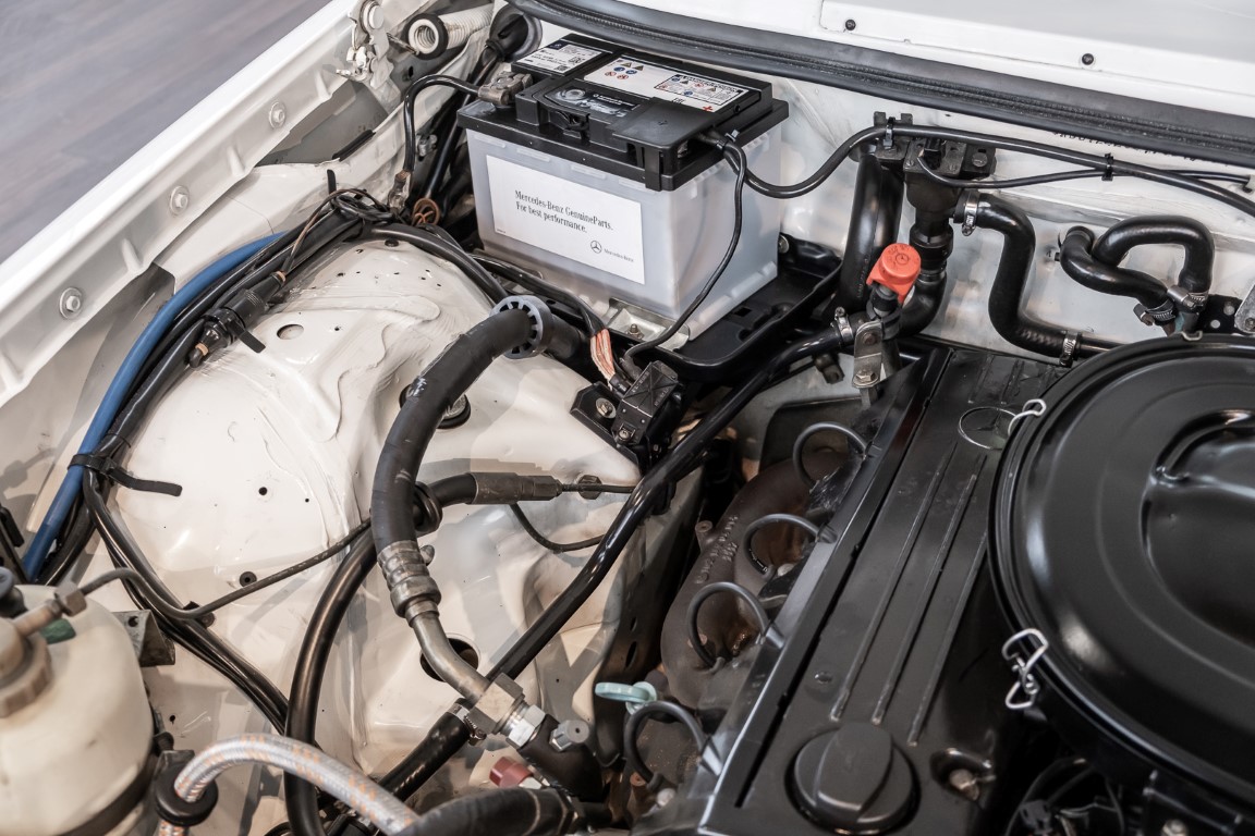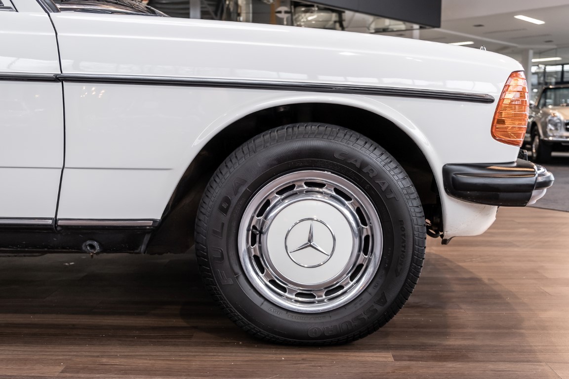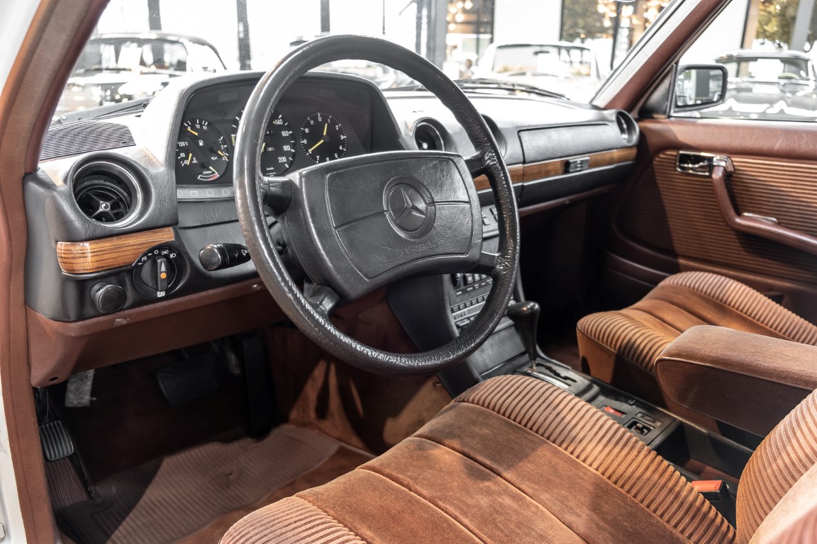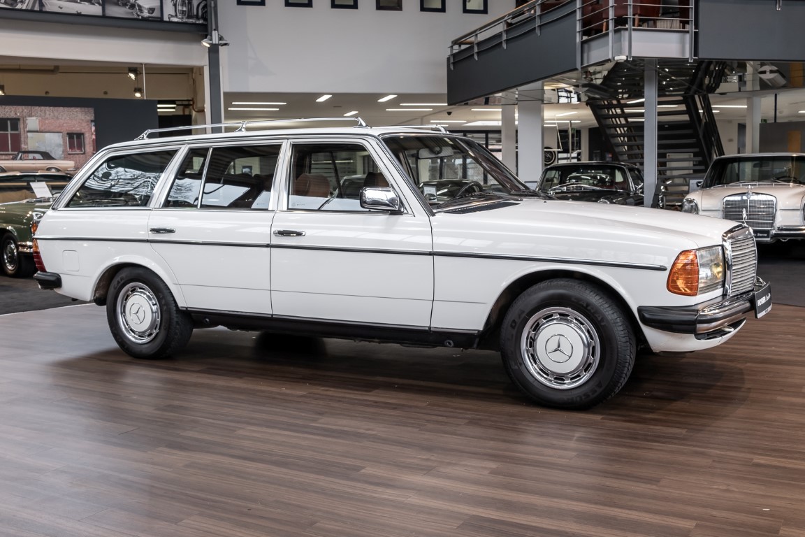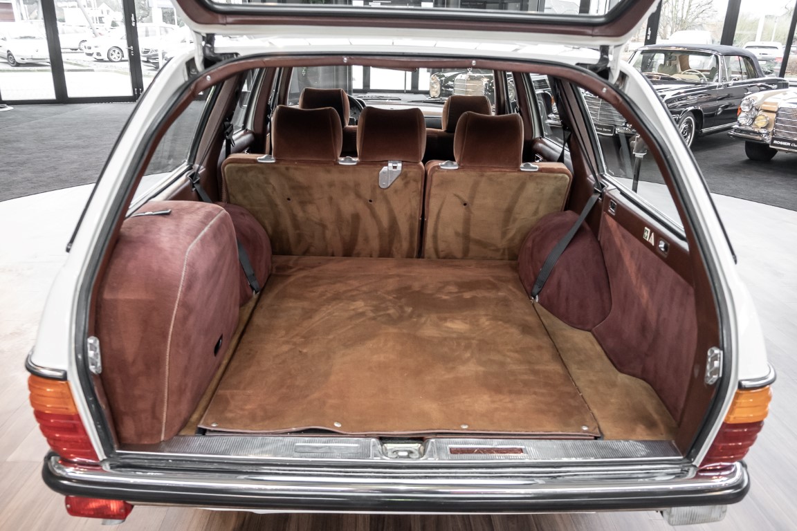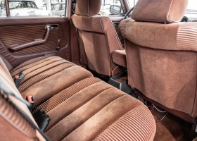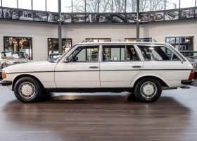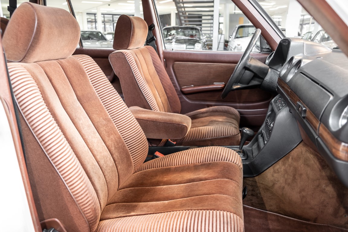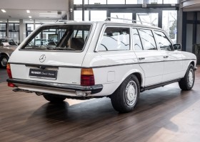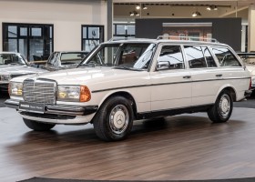 Dieser wundervoll praktische 230 TE wurde 03.10.1983 im Werk Sindelfingen für den französischen Markt fertiggestellt. Das klassische Classicweiß (737) harmoniert hervorragend mit der Veloursausstattung im seltenen Hennarot (957). Auch die Ausstattung kann sich sehen lassen: mit Automatik, Fahrer-Airbag, Klimaanlage und 7 Sitzen bleiben selbst für heutige Verhältnisse kaum Wünsche offen. Der robuste 2,3 Liter Vierzylinder läuft fantastisch, die Automatik schaltet wie sie soll und das Fahrwerk läd zum Reisen ein.