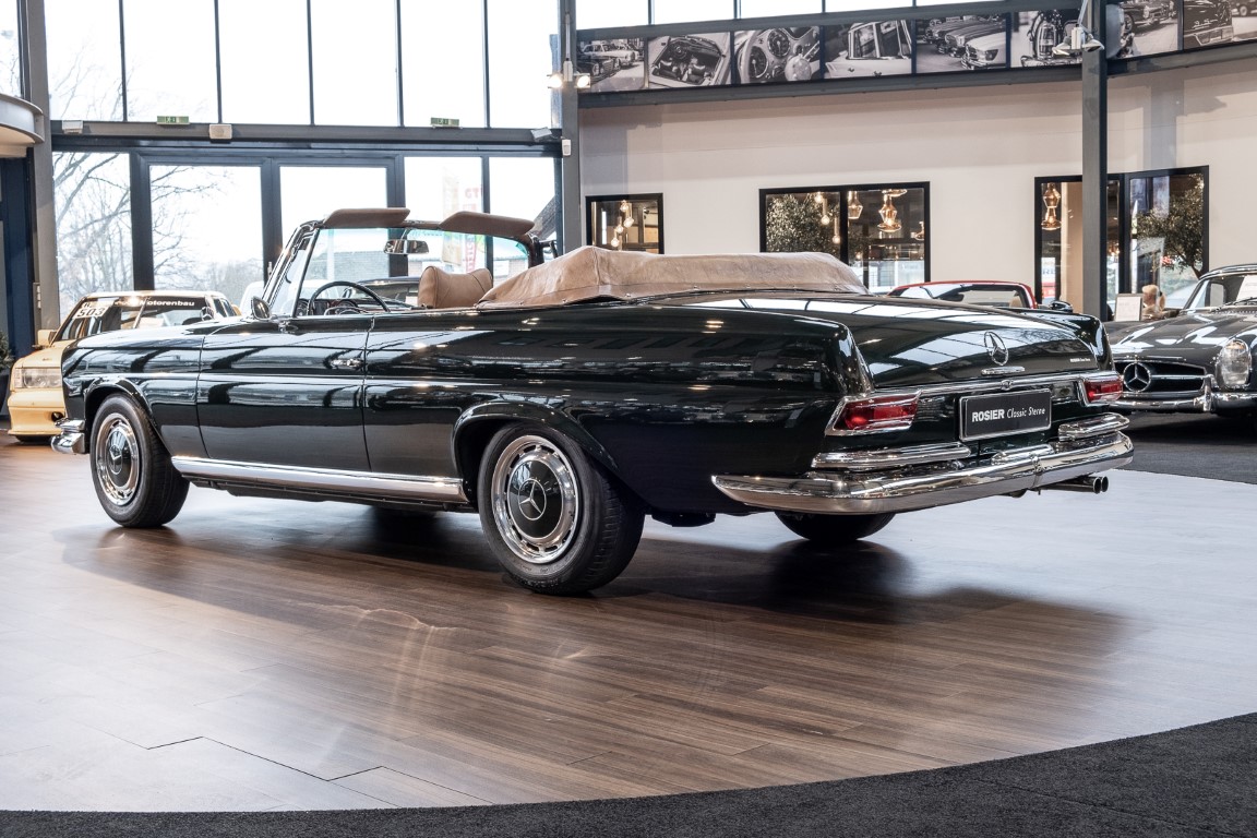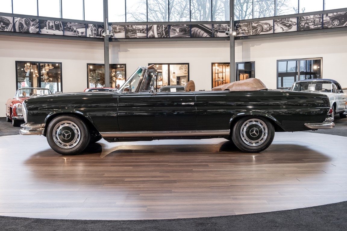Ein sensationelles Fahrzeug ist dieser Mercedes-Benz 250 SE Werkscabriolet. In 1967 an seinen Erstbesitzer ausgeliefert verblieb das Cabriolet bis 2006 in den USA. Ein deutscher Geschäftsmann und Mercedes-Enthusiast erwarb anschließend diesen „Rohdiamanten“ um etwas ganz Besonderes daraus entstehen zu lassen: der Wagen wurde komplett bis auf die Rohkarosse zerlegt und Stück für Stück neu aufgebaut. Ein leistungsstarkes 8-Zylinder-Aggretgat aus der Zeit wurde verbaut und das Getriebe darauf abgestimmt. Die länger übersetzte Hinterachse der zu der Zeit stärksten Limousinenmodells rundete das Kraftpaket entsprechend ab und verrichtet mit erstaunlicher Harmonie seine Arbeit. Mit nur 954 gebauten Einheiten präsentiert sich dieses einmalige Hochkühler-Werkscabriolet in Bestform – mit einem rundum gelungenen Umbau, der selbst eingefleischte Originalitätsliebhaber in seinen Bann ziehen wird.