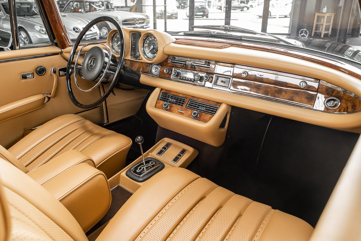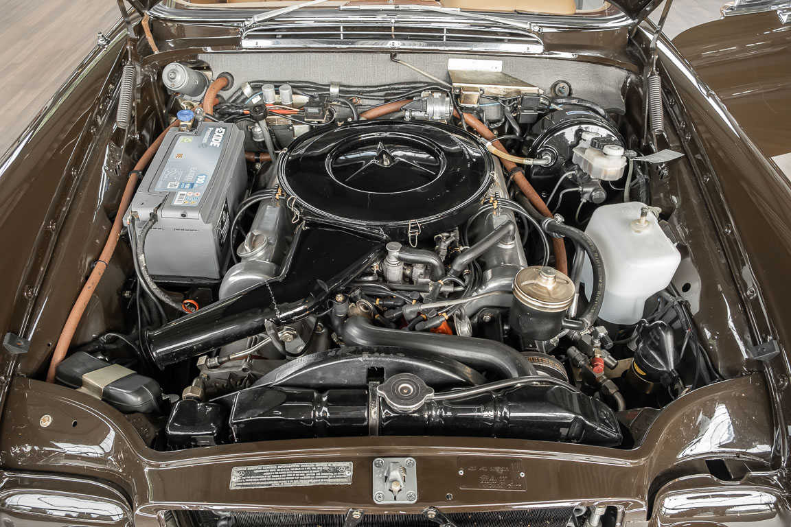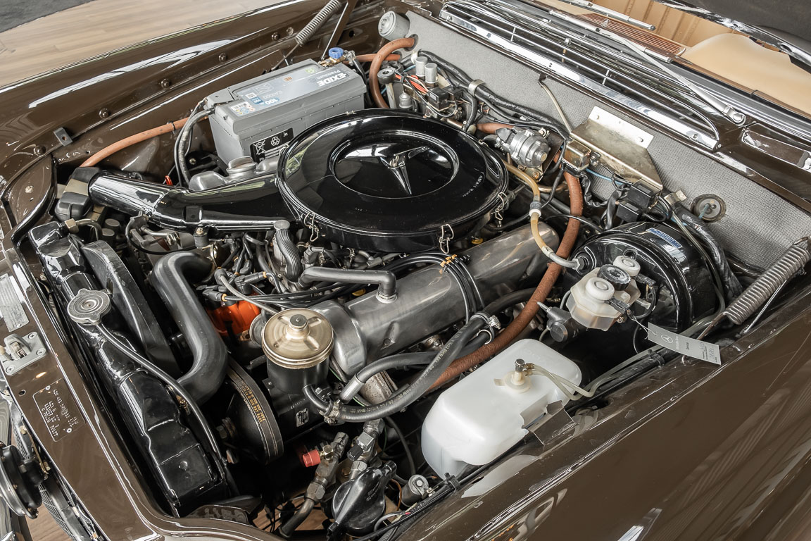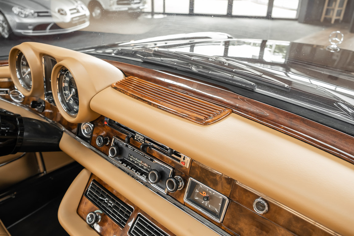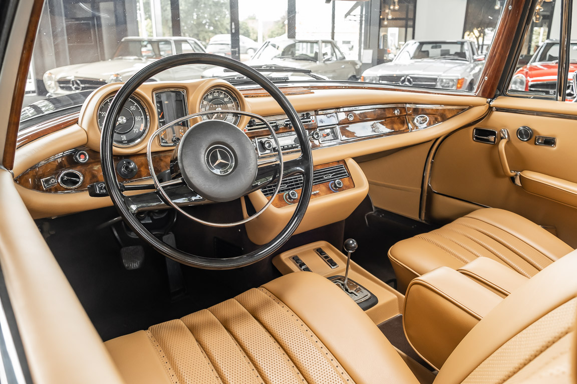 Dieses elegante 280SE 3.5 Liter Cabriolet wurde im Frühjahr 1971 bei Mercedes-Benz in Deutschland fertiggestellt und nach South Carolina/USA verschifft. Die Ausstattung war exzellent und umfasste ein Becker Radio, Klimaanlage aus dem Hause BEHR und Automatik Getriebe mit Mittelschaltung. Der Erstbesitzer hatte den Wagen in elegantem Tabakbraun in Verbindung mit cognacfarbenem Lederinterieur geordert, das mit der dunkelbraunen Wurzelholzausführung des Armaturenbretts besonders harmoniert. Das elegante Cabriolet blieb lange Jahre in South Carolina und fand in 2012 seinen Weg nach Georgia/USA. Von dort kam der Wagen in 2014 nach Deutschland und wurde über die Mercedes-Benz Niederlassung in Hannover an seinen bisherigen Besitzer verkauft. Der Wagen wurde sorgfältig überarbeitet und erhielt in diesem Zug eine neue Lederausstattung in feinster Qualität. Sie unterstreicht eindrucksvoll die schier unendliche Eleganz dieses 280 SE 3.5 Liter Cabriolets. Machen Sie sich am besten selbst ein Bild in unseren Räumlichkeiten, Sie werden begeistert sein.