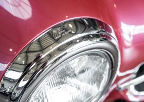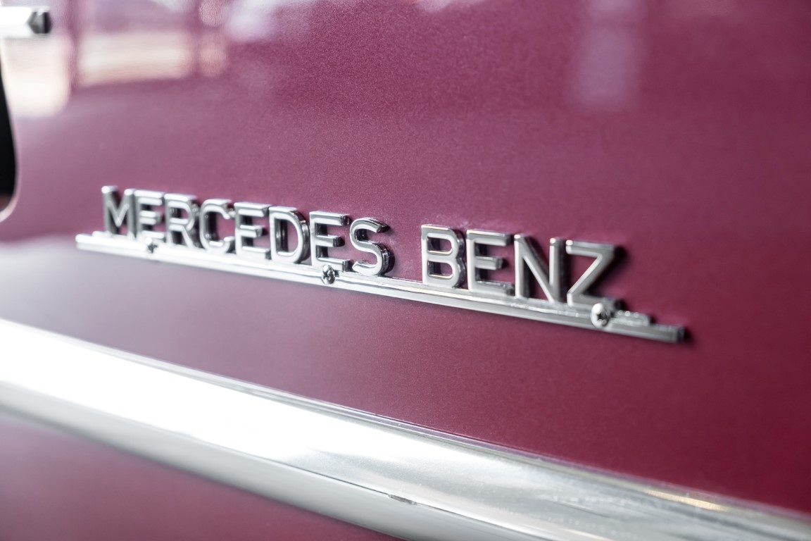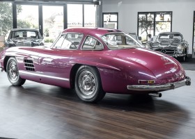 Laut dem Gullwing Group Registry war der erste Besitzer des Coupés Nr. 20 Roy Miller aus China Lake, USA. In den frühen 1970er Jahren wurde Weston Hook aus La Jolla, Kalifornien, Eigentümer, der den Wagen in den nächsten vier Jahrzehnten betreute und schließlich an seinen Sohn übergab. Weston Hook verbrachte seine Zeit sowohl in Kalifornien als auch auf Hawaii, wobei letzteres das Zentrum seiner Immobiliengeschäfte war, und so pendelte der Wagen zwischen den beiden sonnigen Orten am Pazifik. Nach mehreren Jahrzehnten des Besitzes und der Nutzung beauftragte Hook den wohl renommiertesten 300 SL-Restaurator Jerry Hjeltness aus Escondido, Kalifornien, mit einer Restaurierung, deren Ergebnis man kurz und knapp als außergewöhnlich bezeichnen kann. Im Laufe von zwei Jahren und mit viel Liebe zum Detail wurde der Flügel mit der Nr. 20 bis ins kleinste Detail komplett restauriert und in den zeitgemäßen Mercedes- Farben DB 543 Erdbeerrot Metallic lackiert. Die Kombination mit beigefarbener Lederausstattung und grün karierten Sitzen ist stilsicher und außergewöhnlich. Passendes Gepäck und verchromte Rudge-Räder vervollständigen das unbestreitbar schöne Erscheinungsbild, das in jeder Gesellschaft die Aufmerksamkeit auf sich zieht. Das Ergebnis dieser Restaurierung hat unweigerlich zu vielen Concours-Siegen in der Klasse und in ganzen Ausstellungsbereichen geführt. Das Auto ist einfach eine „Best-of-the-Best“-Restaurierung, von einem der besten 300SL-Restauratoren.
