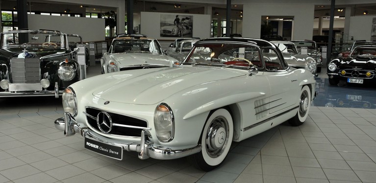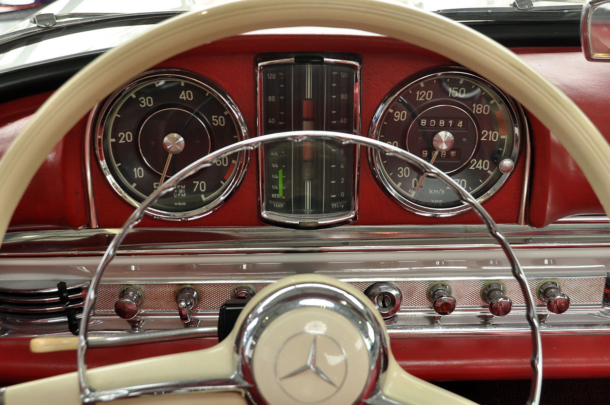 Der 300SL Roadster mit Scheibenbremsen und Alumotor ist in Sammlerkreisen eine Rarität, von der nur etwa 210 Fahrzeuge gebaut wurden und sehr gesucht.