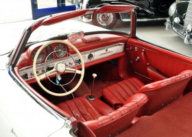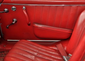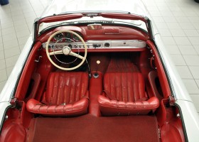 Zum Lieferumfang gehörte auch ein schwarzes (040) Coupédach, ein schwarzes Stoffverdeck und Weisswandbereifung. Die Erstauslieferung fand in Europa statt. Erfreulich ist in diesem Zusammenhang, dass die Armatureneinheiten bis heute in deutscher Beschriftung, einschließlich Kilometer-Tachometer, erhalten sind.Der Wagen wurde in den 1970er Jahren in die USA verkauft und war dort bei sehr gut nachvollziehbaren, besten Adressen zuhause. So gehörte er dem in den USA sehr bekannten Enthusiasten klassischer Automobile Bruce Meyer, in Newport Beach, Californien und in 1976 Peter A. Tadin in Cupertino, Californien. Der Zustand des Roadsters ist traumhaft, das offensichtlich noch originale, fein patinierte Leder, wurde bei einer früheren Restaurierung des Wagens überarbeitet.