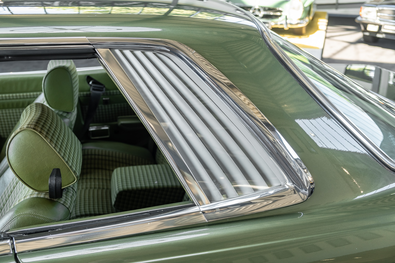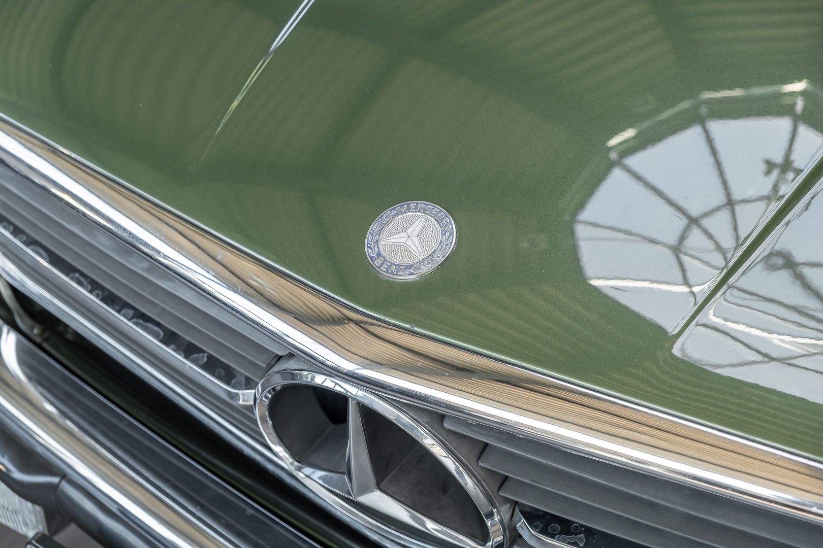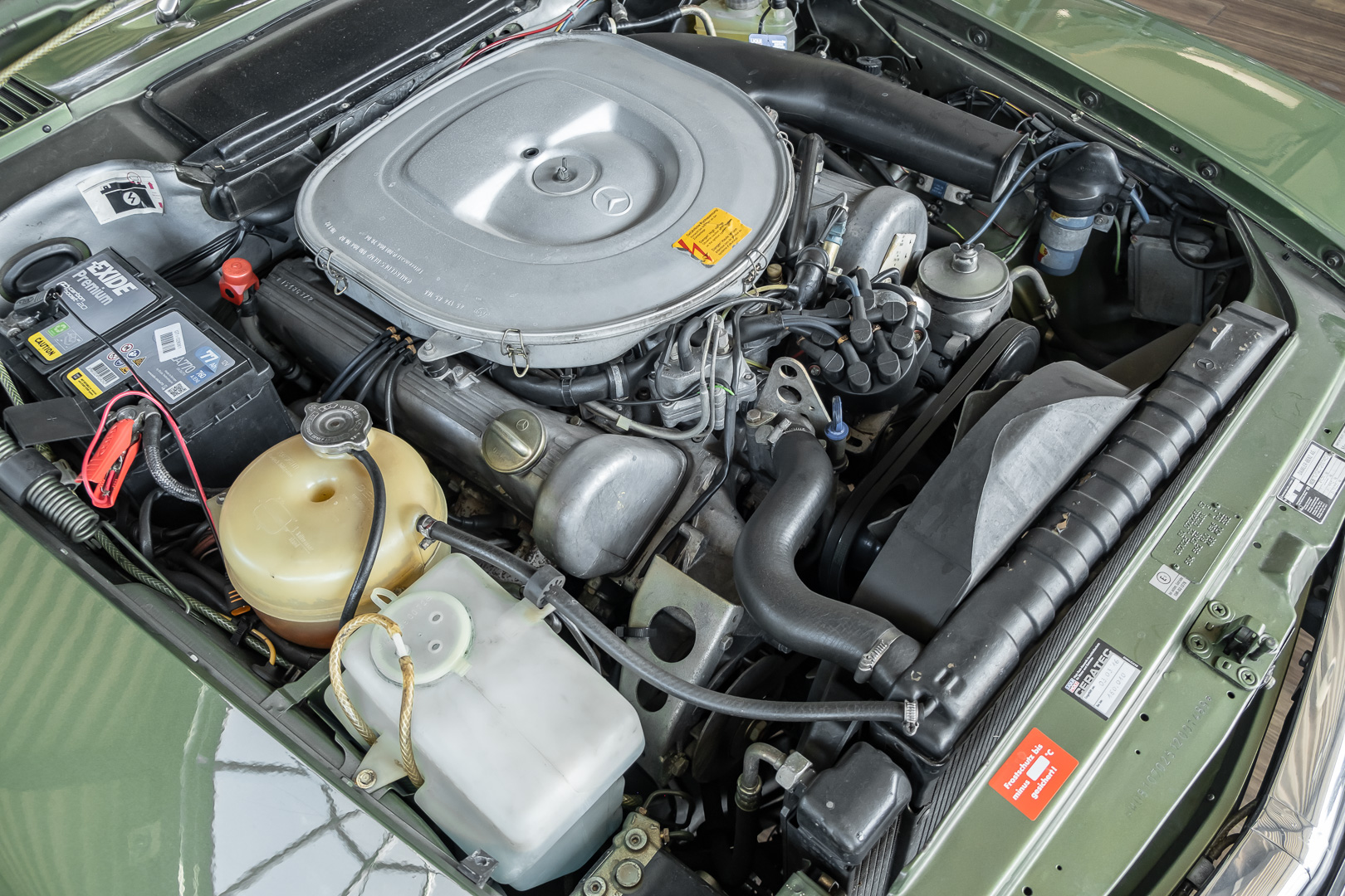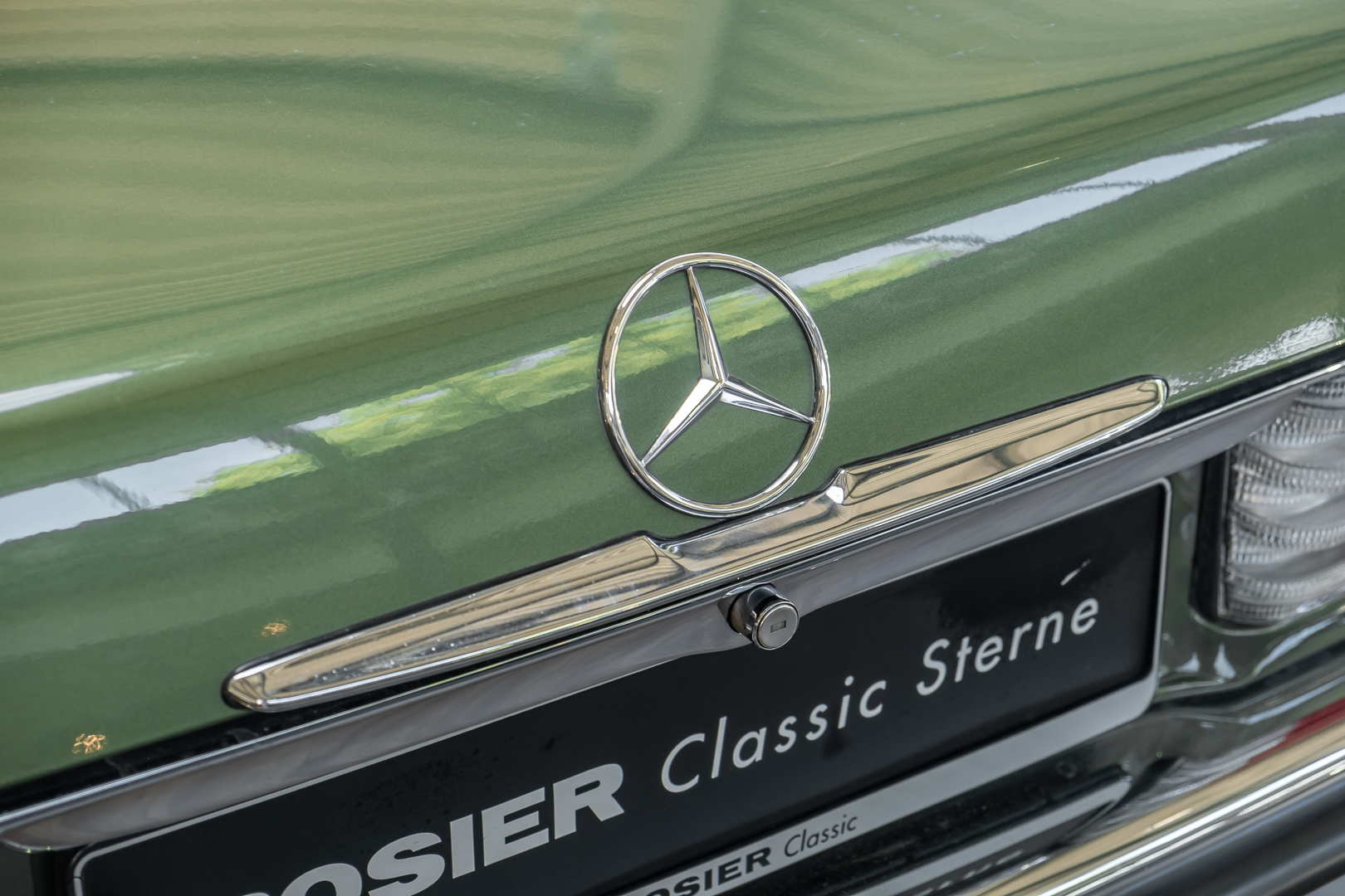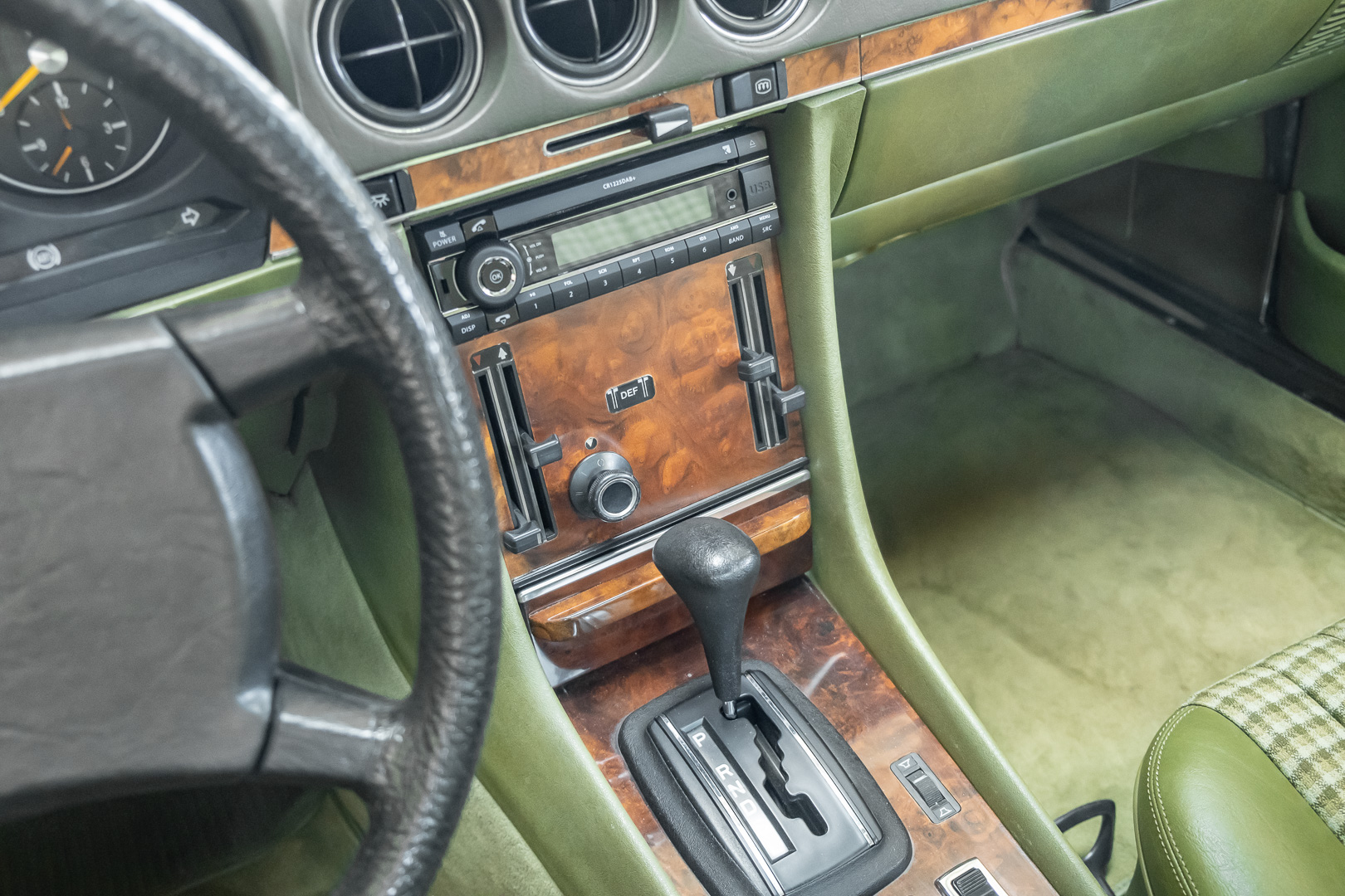 Ein automobiler Traum in Zypressengrün-metallic und der heute so gesuchten Stoff Karo Innenausstattung, passend in Olive, ist dieser Mercedes-Benz 380SLC aus der C107 Serie. Der Inhaber einer Rohrbiegerei im Schweizer Waengi, hatte sich in der Kreuzgarage Meggli in Elgg, seinen persönlichen Wunschtraum verwirklicht. Ein Mercedes-Benz Coupé mit kräftigem 8 Zylinder Motor, in seiner Lieblingsfarbe. Der Wagen bereitete ihm großen Fahrspaß. Er ließ jeden Kundendienst ausführen und jede Kleinigkeit sofort in Ordnung bringen. Es ist eine Freude das sorgfältig ausgefüllte Original Kundendienstscheckheft mit allen seinen Stempeln und Eintragungen zu lesen. Der Wagen blieb etwa 12 Jahre in der Schweiz. Im Mai 2013 kam das Coupé in eine zarte Damenhand im benachbarten Baden-Württemberg in Deutschland. Sein Weg führte es weiter über einen Besitzer in Schleswig-Holstein nach Braunschweig in Niedersachsen. Im Jahre 2017 konnten wir das Fahrzeug in eine Berliner Autosammlung verkaufen, aus dessen Besitz wir das Fahrzeug nun wieder anbieten düren. Der Pflegezustand des Wagens ist noch immer einmalig. Man sieht förmlich, dass er stets pfleglich behandelt und gewartet wurde. Die hohe Qualität der Lackierung zeigt, dass in jüngerer Zeit einmal eine fachmännische Überarbeitung stattfand. Die satte Farbe und der Tiefenglanz lassen das Coupé funkeln. Die Innenausstattung und die Technik zeigen sich von ihrer besten Seite. Eine Rarität, wie sie kaum zu finden ist. Es wurden nur 3.789 Fahrzeuge des 380 SLC gebaut, was ihn auch zu einem interessanten Sammlerobjekt macht.
