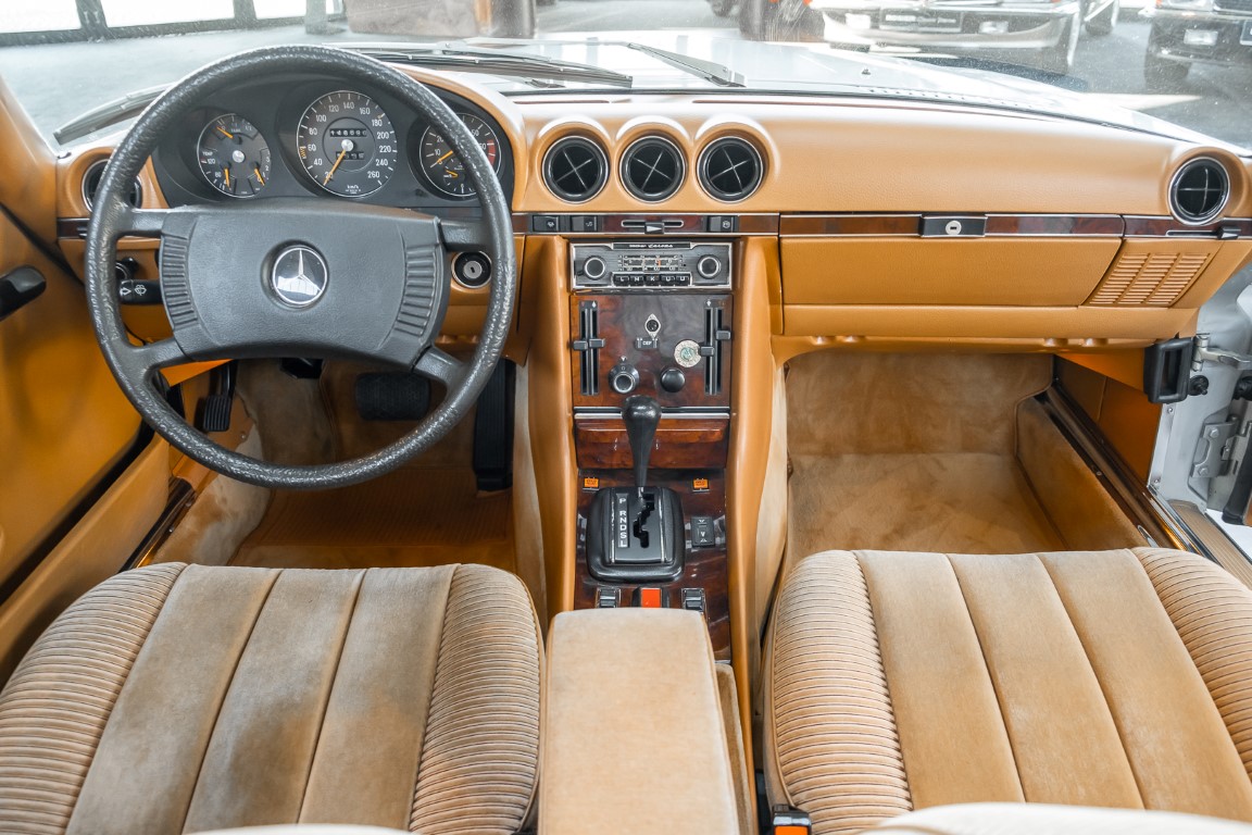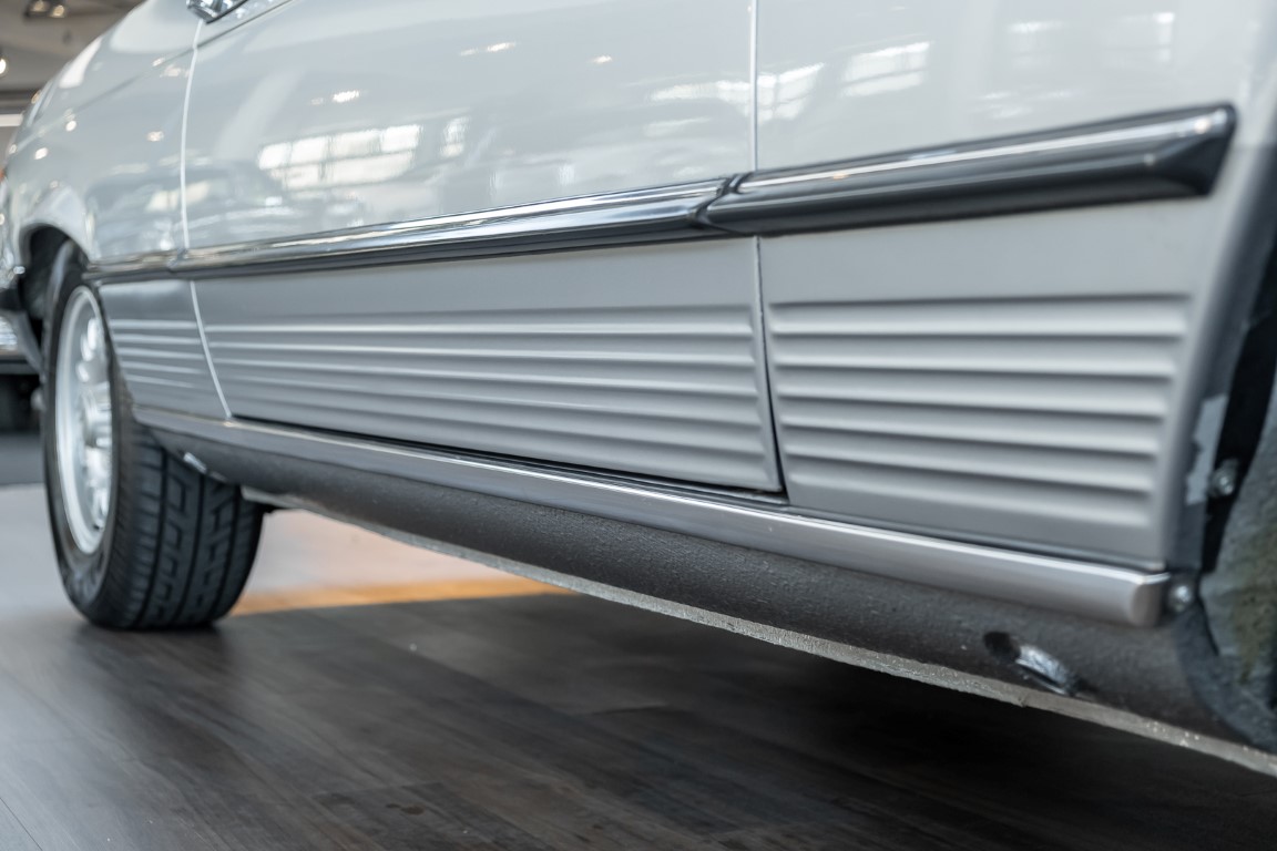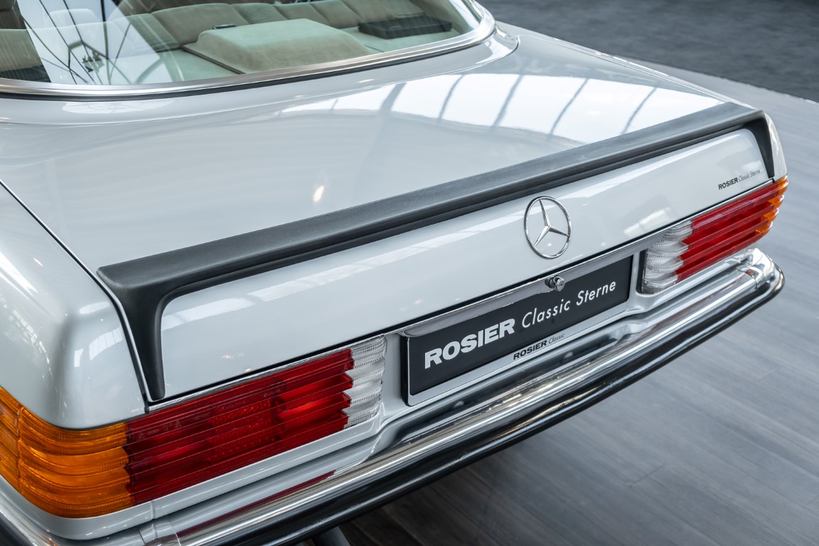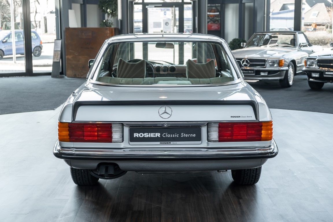 Ein eindrucksvolles Modell mit atemberaubend schöner Linie, sportlich und elegant zugleich, mit schier unendlicher Durchzugskraft. Am 08. März 1979 wurde dieser elegante Mercedes-Benz 450SLC 5.0 auf seinen Erstbesitzer, die Marco Pelz GmbH + Co. KG im Mittelfränkischen Fürth zugelassen. Dort verblieb der Wagen bis 1983. Das immer schwerer gewordene Pelzgeschäft zwang die Firma zum Aufgeben. Das elegante Coupé fand ein neues Zuhause bei einer gut situierten Familie in Regensburg. Hier verblieb der Wagen die nächsten 26 Jahre und wurde lediglich in 1988 von der Frau auf den Mann umgeschrieben. Er wurde wenig gefahren und hatte gemäß TÜV Protokoll aus 1995 eine Kilometerleistung von 125.000 und einem DEKRA Prüfungsbericht aus dem Mai 2009 138.787 km gelaufen. Im Sommer 2009 kam das 450SLC 5.0 Coupé in den Besitz einer Dame in München. Sie pflegte den Wagen und ließ ihn zuerst bei Mercedes-Benz Service und später bei einem auf Mercedes Klassiker spezialisierten Betrieb in München warten. In 2012 verkaufte Sie das Coupé an einen Unternehmer im oberbayrischen Kreis Bad Tölz-Wolfratshausen, etwa 50 km südlich von München. Der neue Besitzer wollte den „Diamant“ neu funkeln lassen und ließ ihn von einem Karosseriefachbetrieb sorgfältig und fachmännisch überarbeiten. In diesem Zug erhielt der Wagen auch eine Ganzlackierung in der Farbe, die er immer hatte, in Astralsilber-metallic. Ordnungsgemäße Rechnungen des Karosseriefachbetriebes und des ansässigen Mercedes-Benz Partners belegen ein Invest von über €uro 16.000,-. Der Gesamtzustand des Wagens ist traumhaft schön. Zuletzt erwarb ein Mercedes-Liebhaber aus Stade das Fahzeug, der es aber kaum nutze. Aus seiner Sammlung dürfen wir Ihnen dieses Traum-Coupé nun anbieten. Die elegante bis heute bestens erhaltene Veloursausstattung, ist fein patiniert und verleiht dem Wagen eine enorme Ausstrahlung. Lassen auch Sie sich in seinen Bann ziehen.