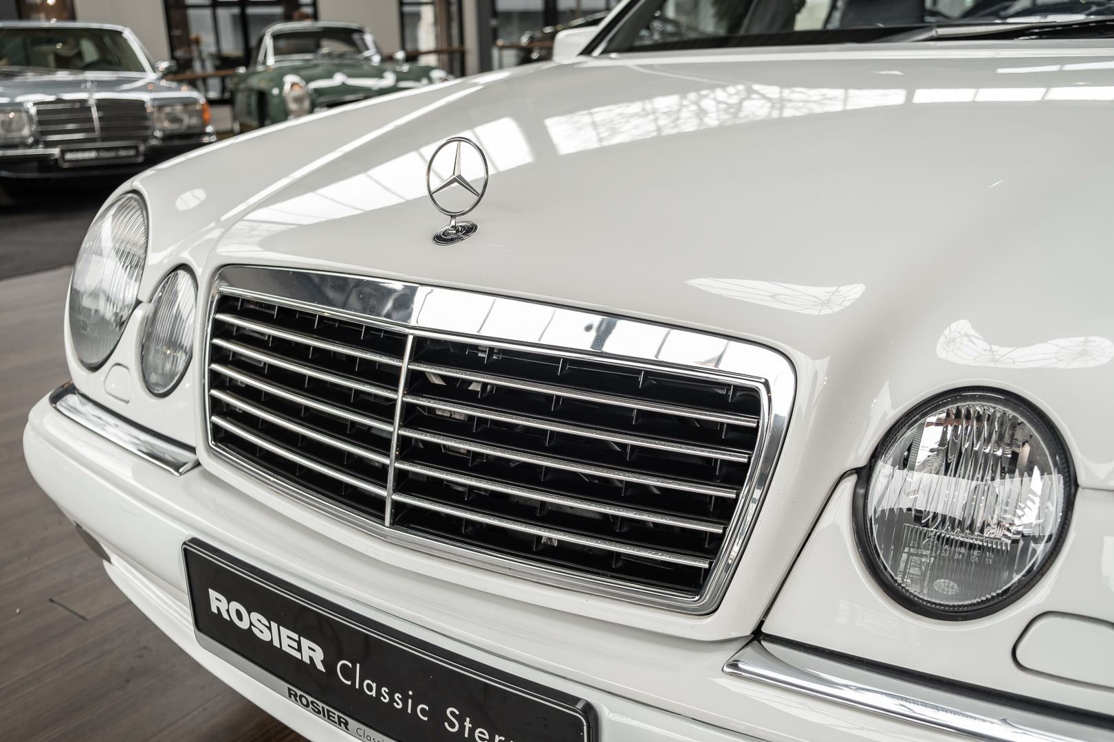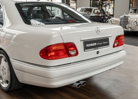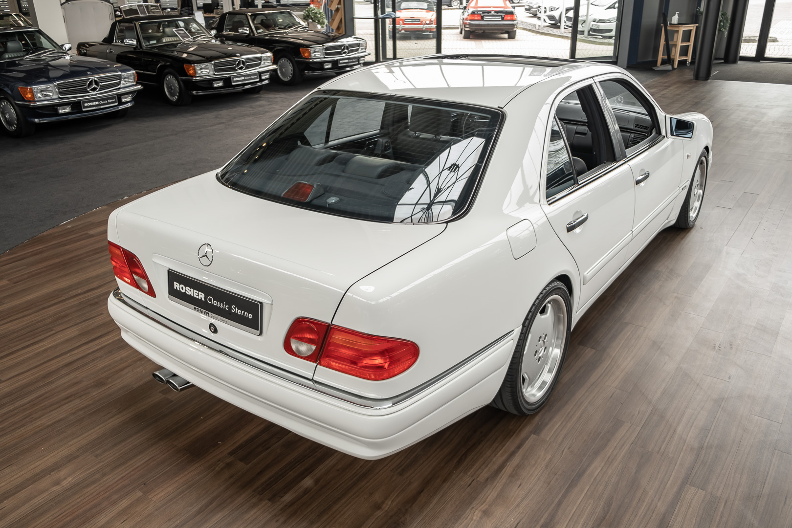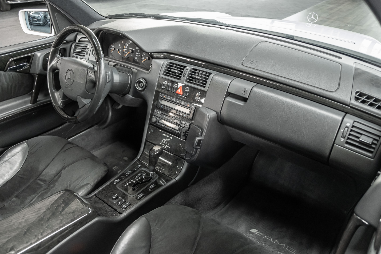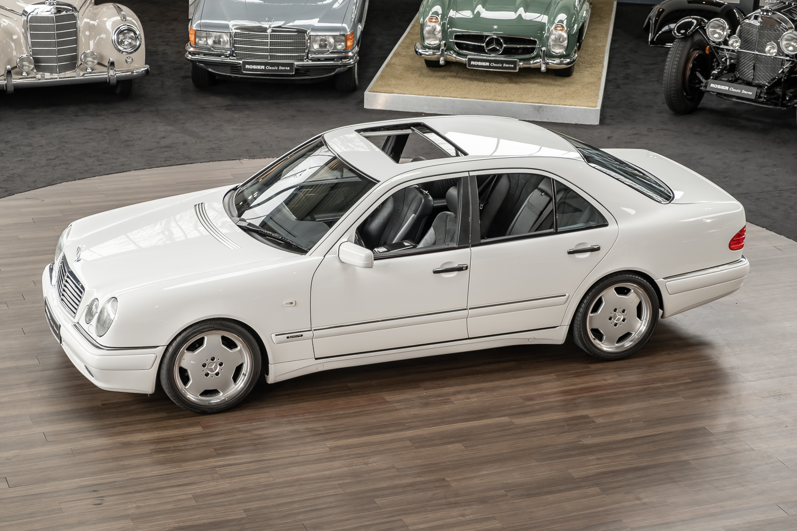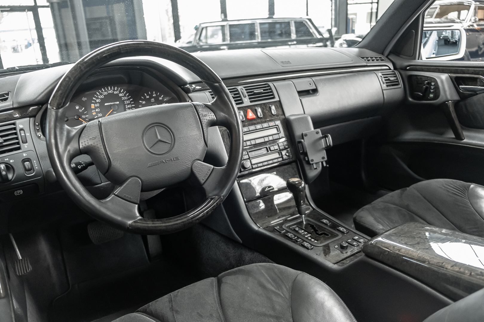 Wir freuen uns, Ihnen dieses 210er-Schmuckstück aus dem Hause AMG anbieten zu können. Zunächst verließ diese AMG-Rarität das Werk in Sindelfingen als E 50 AMG, der mit 347 PS bereits ausreichend Kraftreserven bereithielt. Bestimmt war die vollausgestattete Sport-Limousine in firnweiß für einen japanischen Kunden, der das Exklusive liebte. Genau das war der Grund, warum das Fahrzeug – vor der langen Reise nach Japan – erst noch nach Affalterbach gelang, wo die AMG-Experten auf die besondere Anfrage hin, den Umbau auf den leistungsgesteigerten E 60 AMG vornahmen. Der Umbau umfasste eine Leistungssteigerung durch AMG auf den hubraumvergrößerten Motor M 119-6.0 Kat, eine geänderte Achsübersetzung sowie angepasstes Getriebesteuergerät sowie ein AMG Holz-/Leder-Airbaglenkrad.
