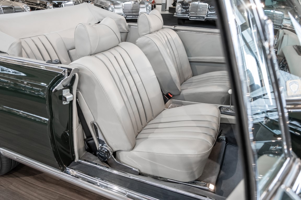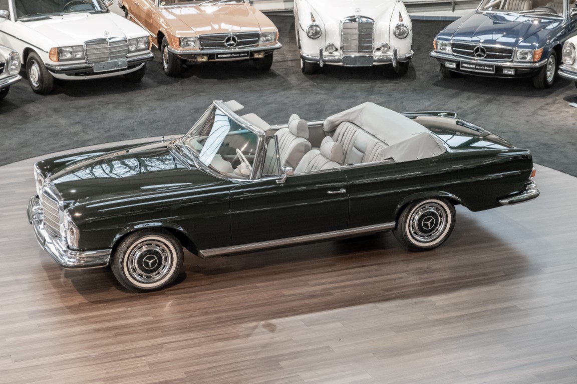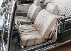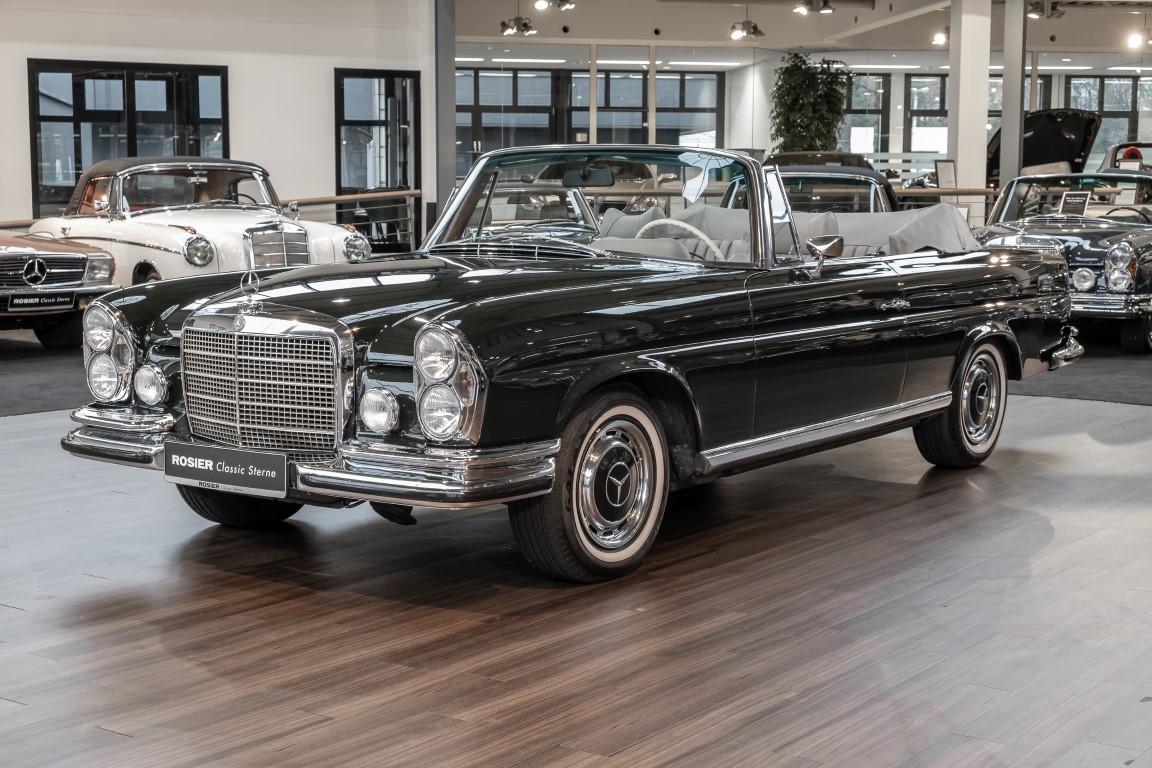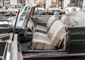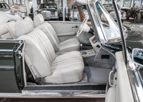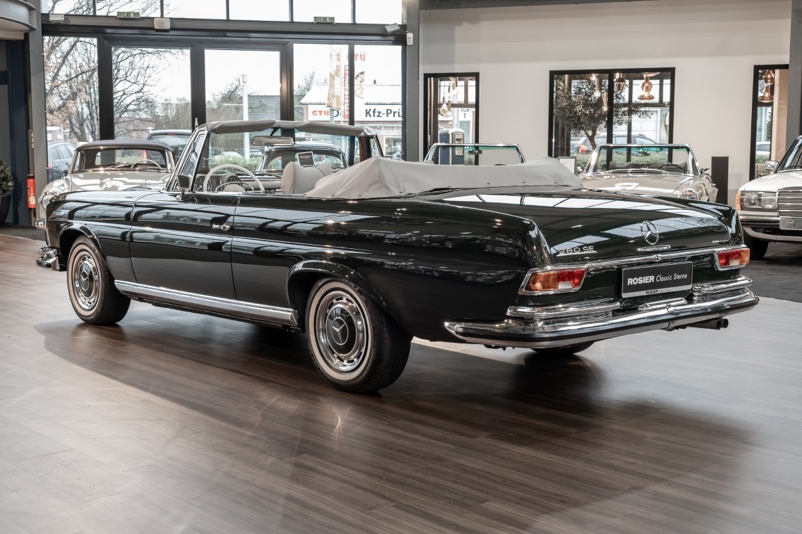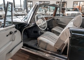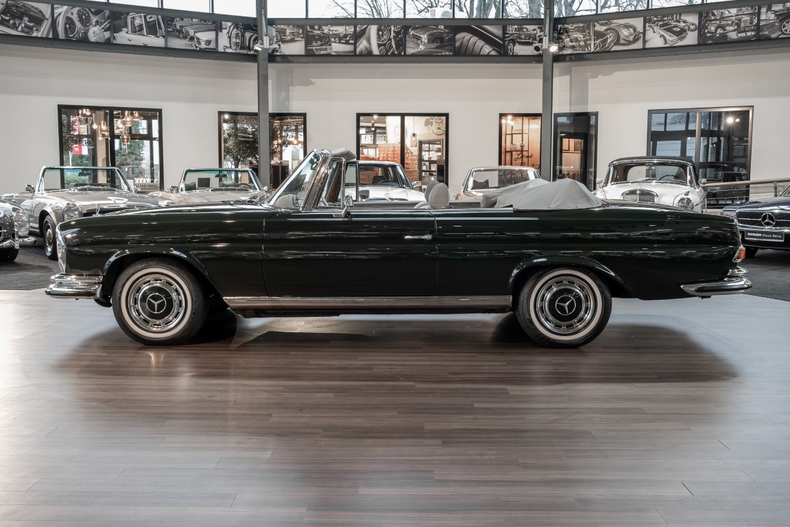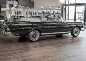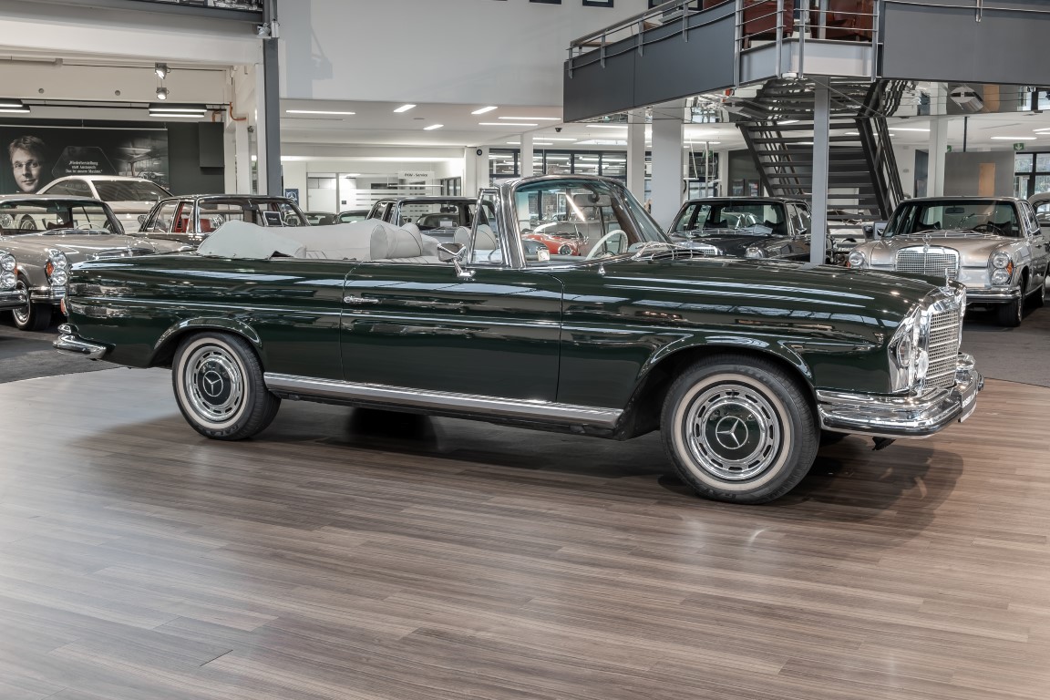 Ein S-Klasse Cabriolet aus dem Hause Mercedes-Benz gehört seit jeher zu den ganz besonders exklusiven Fahrzeugen in der ganzen Welt. Das hier angebotene Mercedes-Benz 280SE Cabriolet entstammt der so begehrten Flachkühler Serie von der nur etwa 1.390 Fahrzeuge gebaut wurden. Der Mercedes Händler aus Los Angeles in Kalifornien USA, hatte den Wagen geschmackvoll zusammengestellt und im Mercedes-Benz Werk bestellt. Schlichtweg eine Augenweide in elegantem Dunkelolivgrün und grauem Leder Interieur wurde geliefert. Ganz im Stil und Geschmack der vermögenden Käuferklientel. Schnell fand der Wagen einen Abnehmer, der mit ihm für die nächsten Jahre durch das sonnige Kalifornien cruiste. In 1989 kam er wohl in den Besitz von Elizabeth „Betsy“ Asher, einer Insiderin der Musikindustrie und Tochter aus gutem Hause. Sie arbeitete als Publizistin, war ein selbsternannter politischer Nachrichtenjunkie, widmete sich leidenschaftlich dem Tierschutz und kannte viele bestens bekannte Musiker und Songwriter der Rockmusik Szene. In 2013 kam das elegante Cabriolet nach Deutschland über ein Handelshaus für klassische Automobile in Rheinland-Pfalz in den Besitz eines Unternehmers aus Niedersachsen. In seinem Besitz wurde der Wagen liebevoll gepflegt und stets in bestem Zustand erhalten. Die letzten Arbeiten erfolgten in unserem Hause in 11.2020 und beinhalteten auch die umfangreiche Überholung des Automatikgetriebes. Nun soll der Wagen ein neues Zuhause bekommen. Eine tolle Chance auf eines der edlen Flachkühler Cabriolets zu interessantem Preis. Wir beraten Sie gerne.