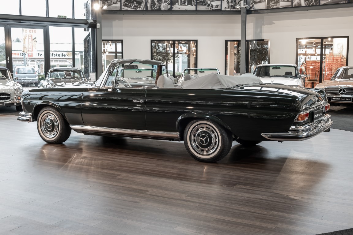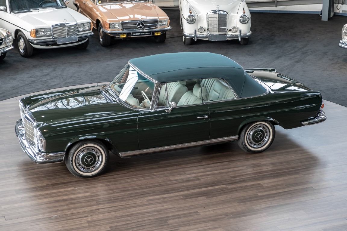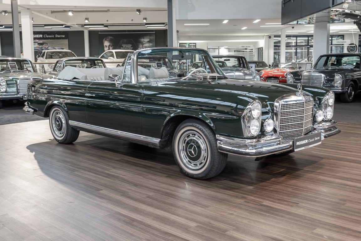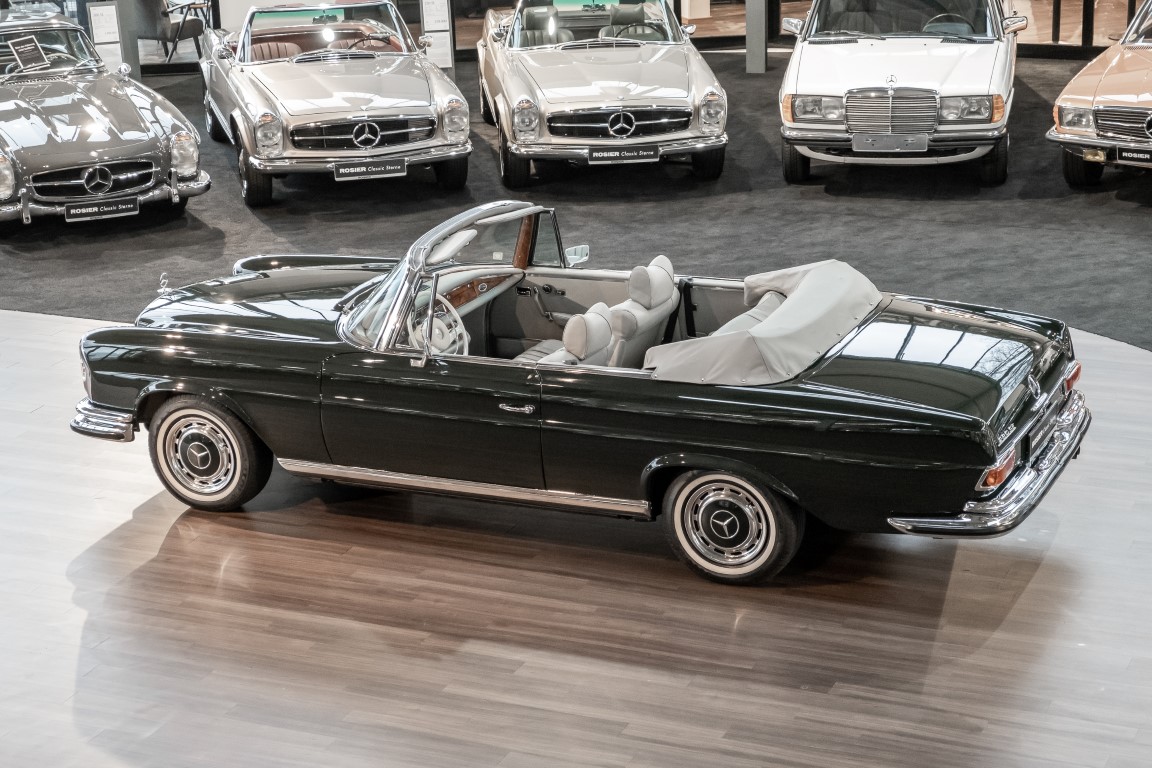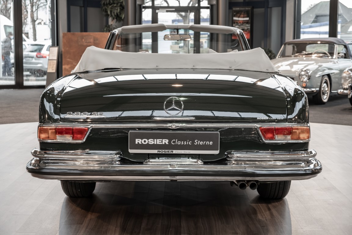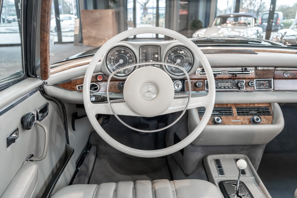 Ein S-Klasse Cabriolet aus dem Hause Mercedes-Benz gehört seit jeher zu den ganz besonders exklusiven Fahrzeugen in der ganzen Welt. Das hier angebotene Mercedes-Benz 280SE Cabriolet entstammt der so begehrten Flachkühler Serie von der nur etwa 1.390 Fahrzeuge gebaut wurden. Der Mercedes Händler aus Los Angeles in Kalifornien USA, hatte den Wagen geschmackvoll zusammengestellt und im Mercedes-Benz Werk bestellt. Schlichtweg eine Augenweide in elegantem Dunkelolivgrün und grauem Leder Interieur wurde geliefert. Ganz im Stil und Geschmack der vermögenden Käuferklientel. Schnell fand der Wagen einen Abnehmer, der mit ihm für die nächsten Jahre durch das sonnige Kalifornien cruiste. In 1989 kam er wohl in den Besitz von Elizabeth „Betsy“ Asher, einer Insiderin der Musikindustrie und Tochter aus gutem Hause. Sie arbeitete als Publizistin, war ein selbsternannter politischer Nachrichtenjunkie, widmete sich leidenschaftlich dem Tierschutz und kannte viele bestens bekannte Musiker und Songwriter der Rockmusik Szene. In 2013 kam das elegante Cabriolet nach Deutschland über ein Handelshaus für klassische Automobile in Rheinland-Pfalz in den Besitz eines Unternehmers aus Niedersachsen. In seinem Besitz wurde der Wagen liebevoll gepflegt und stets in bestem Zustand erhalten. Die letzten Arbeiten erfolgten in unserem Hause in 11.2020 und beinhalteten auch die umfangreiche Überholung des Automatikgetriebes. Nun soll der Wagen ein neues Zuhause bekommen. Eine tolle Chance auf eines der edlen Flachkühler Cabriolets zu interessantem Preis. Wir beraten Sie gerne.