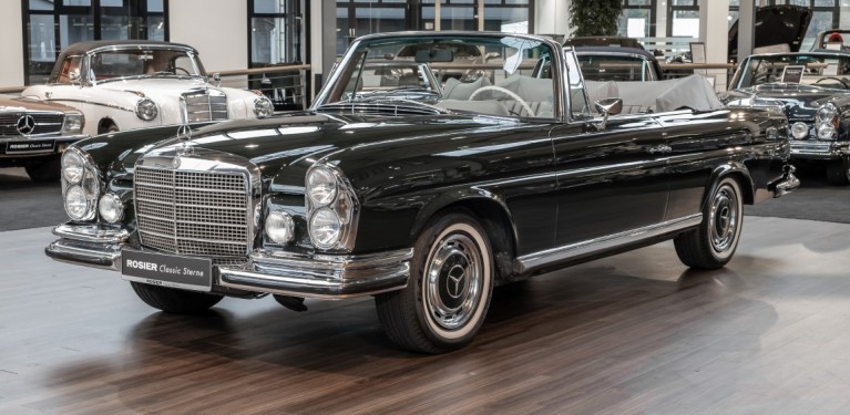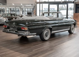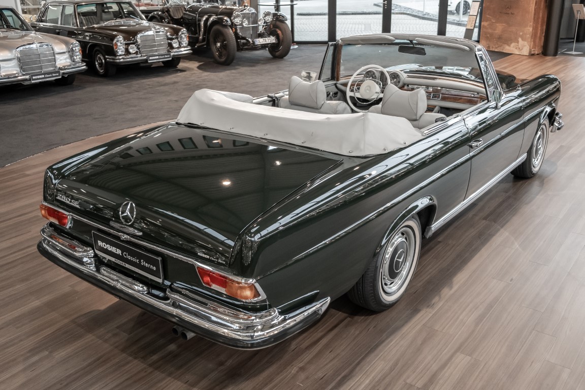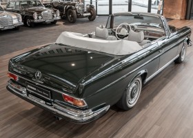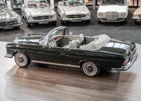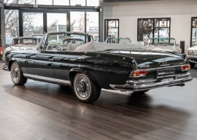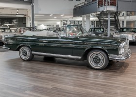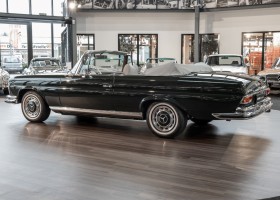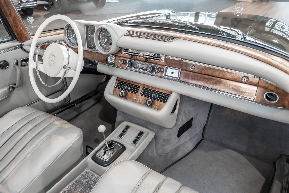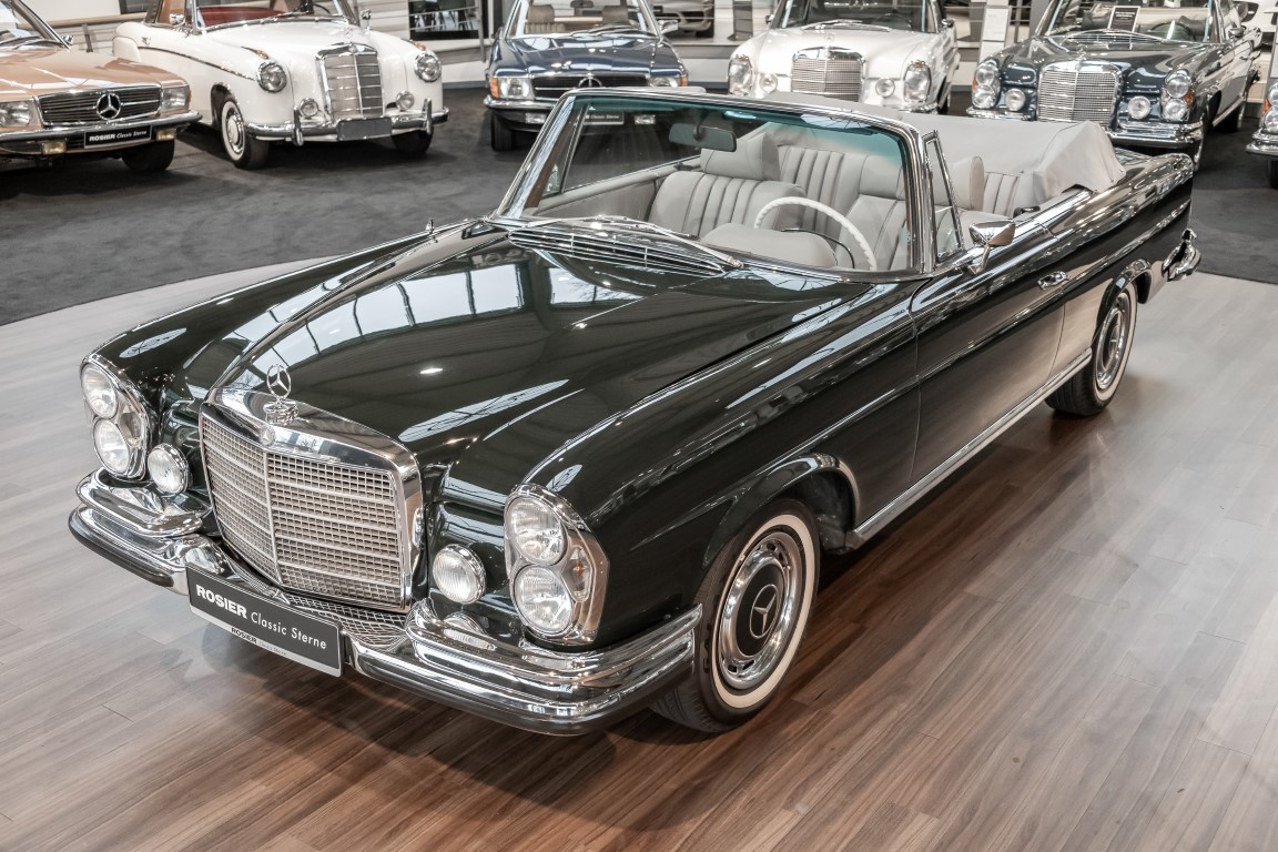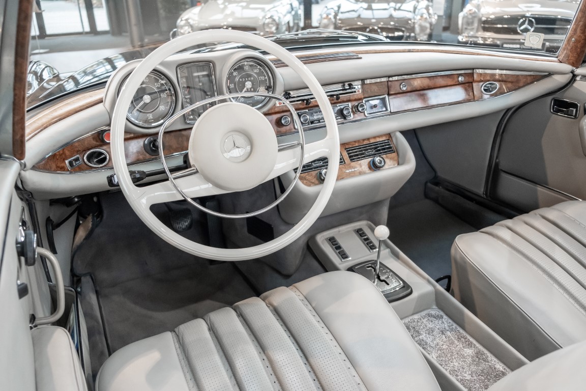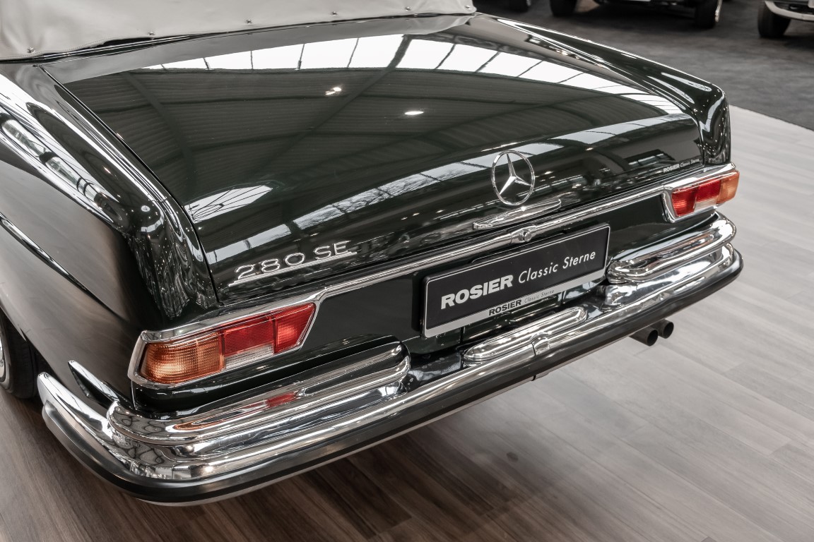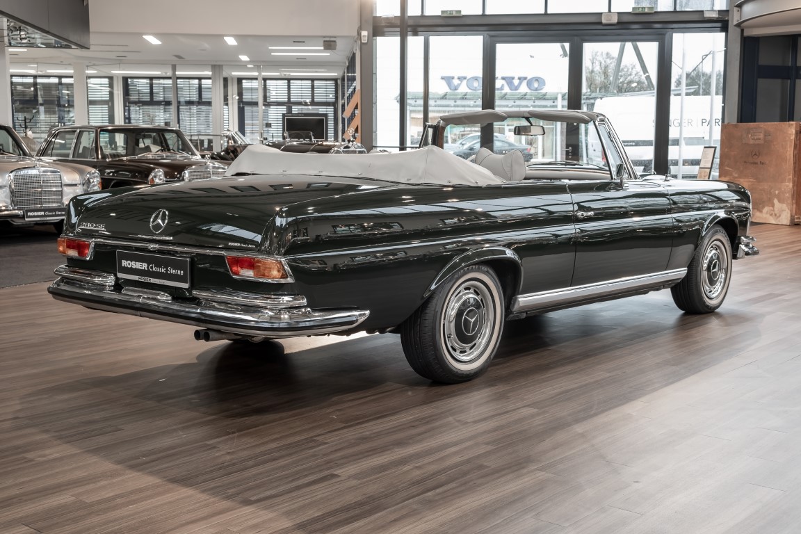 Ein S-Klasse Cabriolet aus dem Hause Mercedes-Benz gehört seit jeher zu den ganz besonders exklusiven Fahrzeugen in der ganzen Welt. Das hier angebotene Mercedes-Benz 280SE Cabriolet entstammt der so begehrten Flachkühler Serie von der nur etwa 1.390 Fahrzeuge gebaut wurden. Der Mercedes Händler aus Los Angeles in Kalifornien USA, hatte den Wagen geschmackvoll zusammengestellt und im Mercedes-Benz Werk bestellt. Schlichtweg eine Augenweide in elegantem Dunkelolivgrün und grauem Leder Interieur wurde geliefert. Ganz im Stil und Geschmack der vermögenden Käuferklientel. Schnell fand der Wagen einen Abnehmer, der mit ihm für die nächsten Jahre durch das sonnige Kalifornien cruiste. In 1989 kam er wohl in den Besitz von Elizabeth „Betsy“ Asher, einer Insiderin der Musikindustrie und Tochter aus gutem Hause. Sie arbeitete als Publizistin, war ein selbsternannter politischer Nachrichtenjunkie, widmete sich leidenschaftlich dem Tierschutz und kannte viele bestens bekannte Musiker und Songwriter der Rockmusik Szene. In 2013 kam das elegante Cabriolet nach Deutschland über ein Handelshaus für klassische Automobile in Rheinland-Pfalz in den Besitz eines Unternehmers aus Niedersachsen. In seinem Besitz wurde der Wagen liebevoll gepflegt und stets in bestem Zustand erhalten. Die letzten Arbeiten erfolgten in unserem Hause in 11.2020 und beinhalteten auch die umfangreiche Überholung des Automatikgetriebes. Nun soll der Wagen ein neues Zuhause bekommen. Eine tolle Chance auf eines der edlen Flachkühler Cabriolets zu interessantem Preis. Wir beraten Sie gerne.
