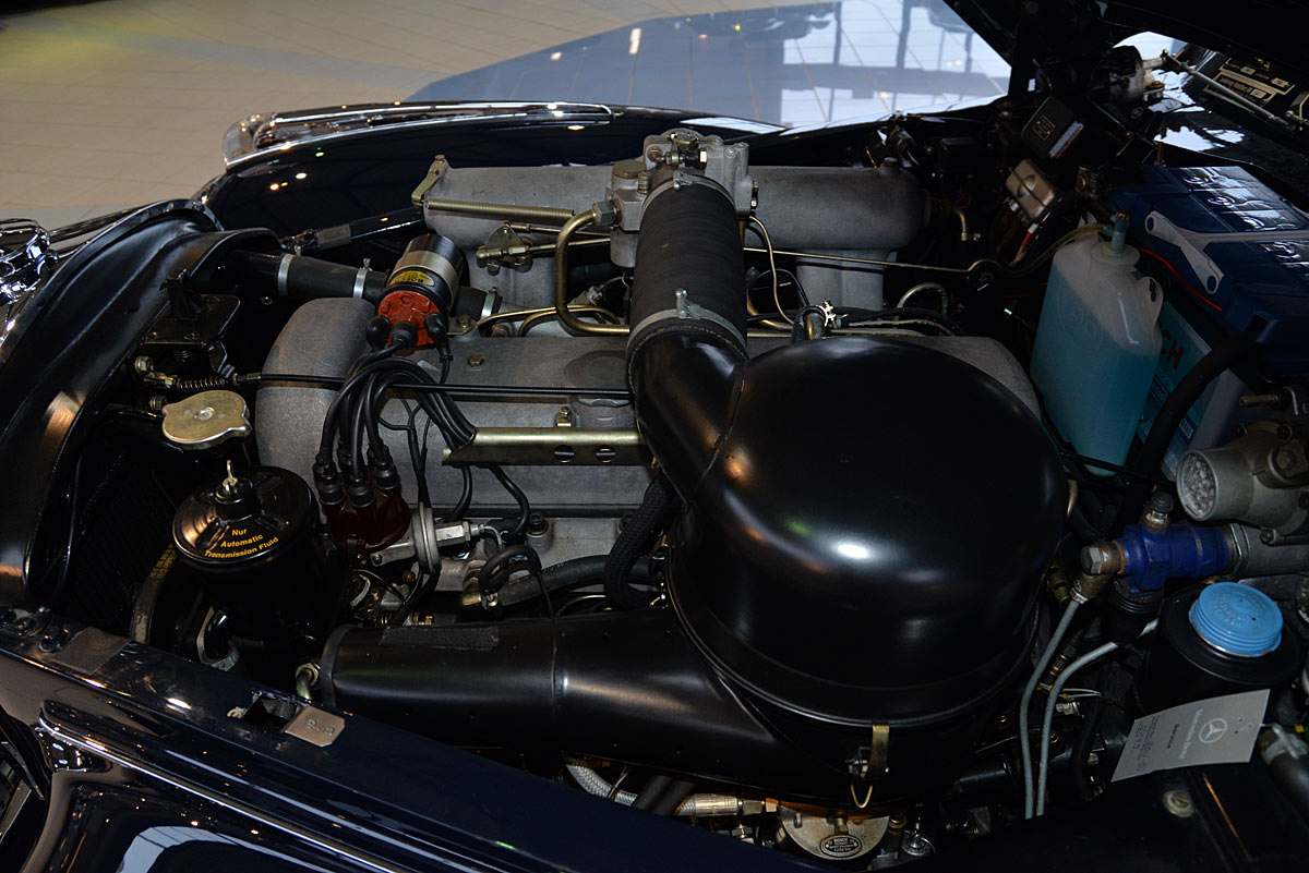 Die Mercedes Reihe W188 wurde im Oktober 1951 auf der Mondial de l‘Automobile in Paris der Öffentlichkeit präsentiert. In 1955 wurde die Modellreihe, die aus Coupé, Cabriolet und Roadster bestand, überarbeitet und in 300 SC umbenannt. Neben reichlich Chromzierrat wurde eine aufwändige Benzineinspritzung verbaut, die dem Wagen kraftvolle 175 PS Leistung bescherte.