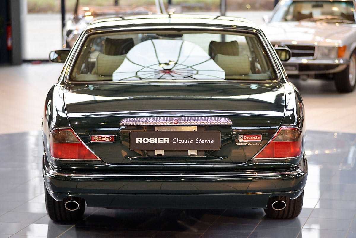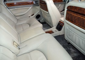 The X300 is the 5th generation of the popular Jaguar XJ series. Particularly high-quality versions were sold under the Daimler brand as exceptionally exclusive vehicles. The Daimler Double Six is undoubtedly an exceptionally exclusive vehicle with its 6-liter V12 cylinder engine. 229KW / 307PS lent the big cat despite its gently purring V12 cylinder engine considerable bounce forward. The equipment is lush with fine leather, wood applications with inlays and picnic tables made of precious wood for the rear passengers, which can be relaxed thanks to a long wheelbase and chauffeured comfortably over long distances.