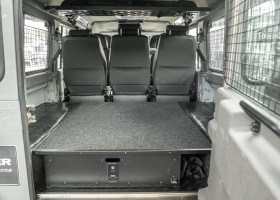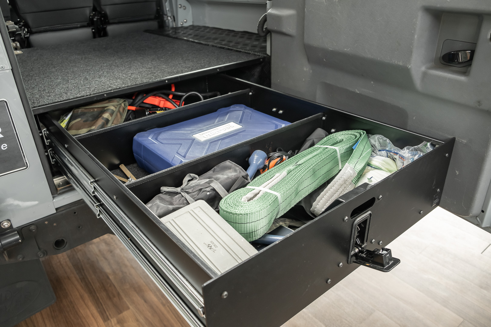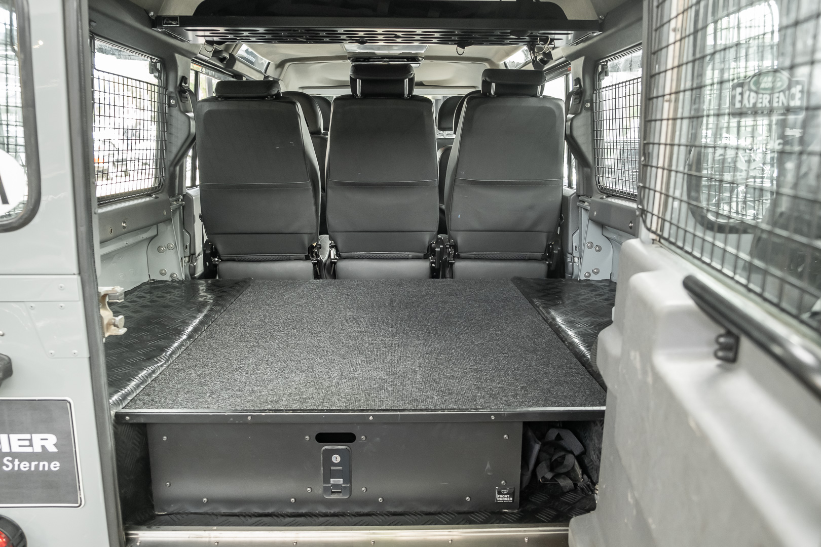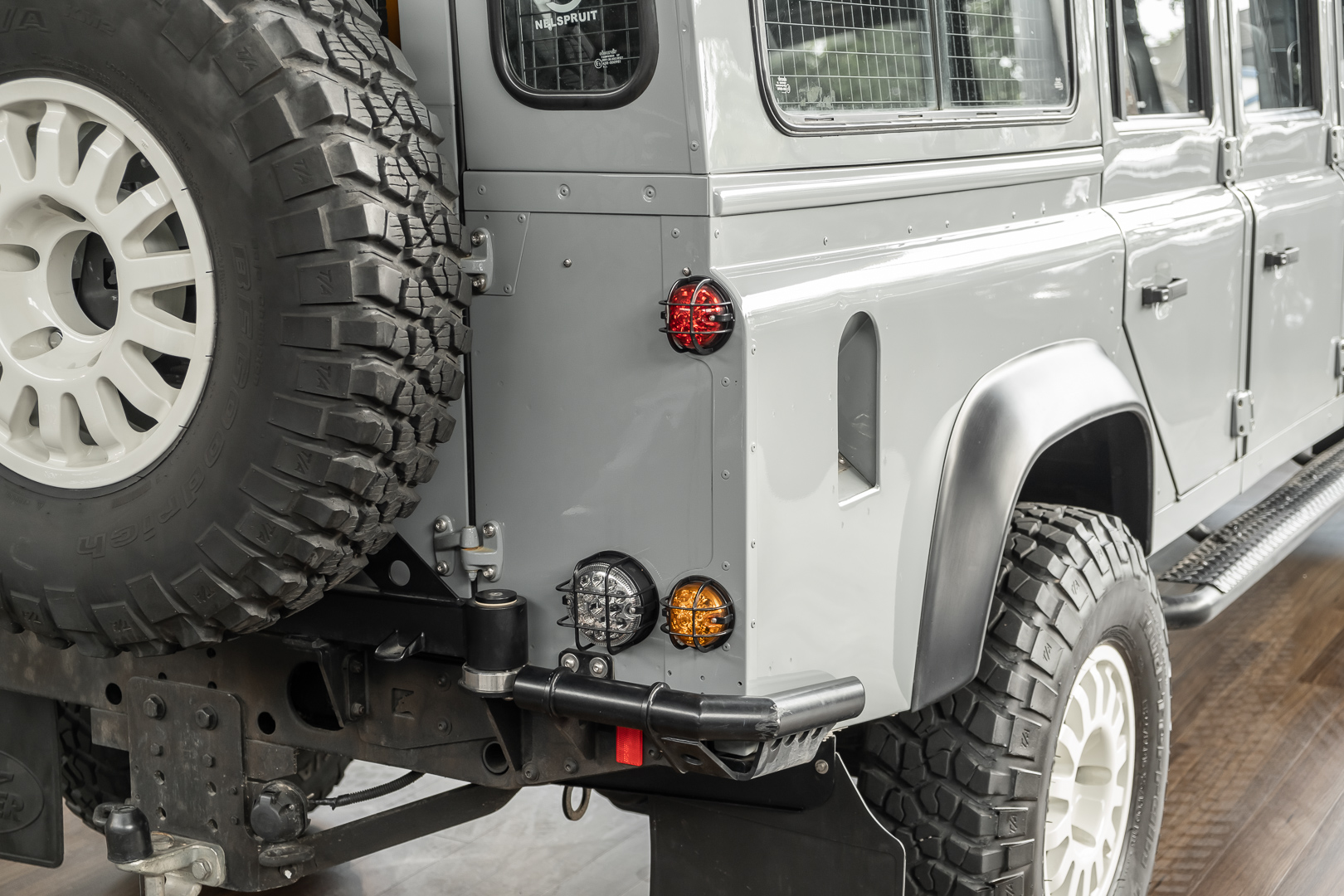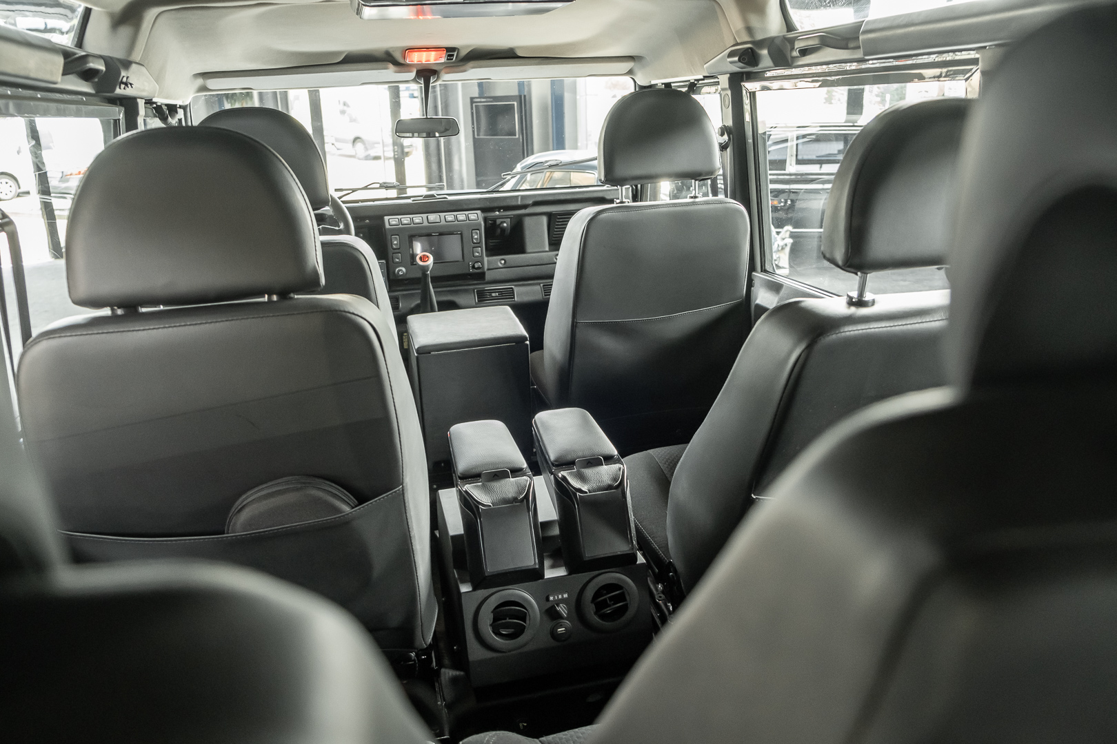An outdoor camping fan saw this seven-seater as the ideal basis for a (large) family vehicle, which he had fitted with a roof tent and off-road caravan. The conversion to left-hand drive makes this already special Defender 147 unique. An extensive entertainment system and air conditioning ensure pleasant journeys, no matter how remote you are traveling.