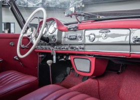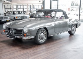 This highly elegant Mercedes-Benz 190SL Roadster was delivered in April 1959 to the general agent of Daimler-Benz, Joseph F. Weckerle, in Morocco, which had meanwhile become independent. He was a big fan of this elegant roadster series and liked to sell it to the wealthy upper class to which he maintained excellent contacts. He himself had already won the "Casablanca Grand Prix" in 1956 in a Mercedes-Benz 190SL touring sports car and had thus made a good name for himself. As a result, the roadster found its way to the USA. There it was very popular and was regarded as one of the most elegant vehicles of the 1950s and early 1960s. In 2011, the 190SL returned to its native country, Germany. A Mercedes specialist near the Swabian capital Stuttgart had acquired it. He subjected the 190SL Roadster to a detailed full restoration. The result of Swabian craftsmanship was fantastic. Everything presented itself as new. The colour scheme in the original Mercedes-Benz colour, DB 172 "anthracite grey metallic" in combination with dark red leather, made the 190SL look like its big brother the 300SL. A uniquely beautiful charisma. A prominent Swabian soon succumbed to the charm of this roadster and still owned the car today. Let yourself be captivated by the charm of this roadster, too, and soon start wonderful trips with the roof open and enjoy the friendly waving of many a participant in the traffic.