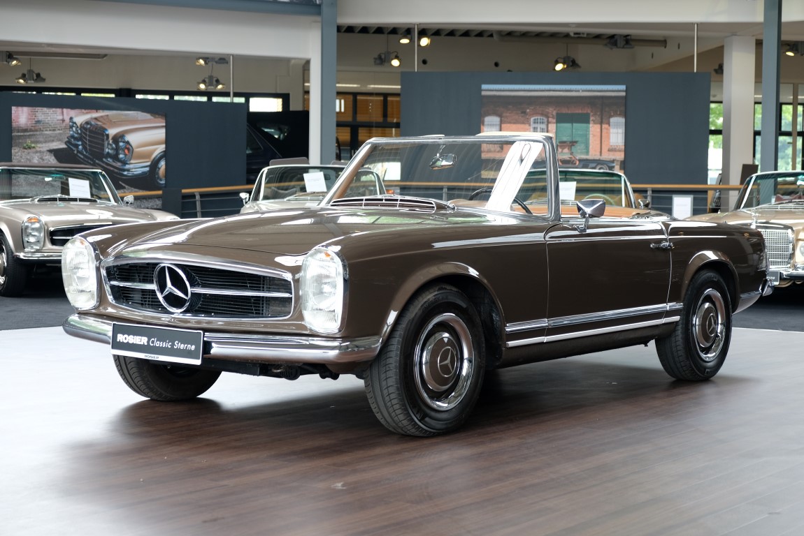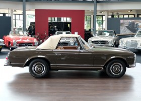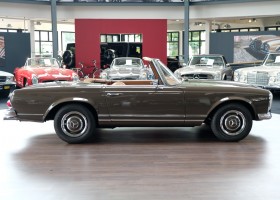 The 250 SL pagoda offered here was delivered on August 2, 1967 to a successful Dealer in Milan / Italy by the Mercedes-Benz Garage Genghini / Milano. The delivery color was Havana brown in conjunction with Havana-brown coupe roof and cognac-colored leather. Hard to beat in elegance was this color combination. The equipment included the very expensive 5-speed gearbox, which is still preserved today, as well as the original engine. The car remained for many years in sunny Italy and came in October 2013 in the possession of a doctor in Geneva / Switzerland. In 2016, the pagoda acquired a Mercedes-Benz partner from Germany and brought him back to his native country. Here he underwent the pagoda of a complex, expert restoration and put the car in its current state of . A pagoda right to drive and enjoy.