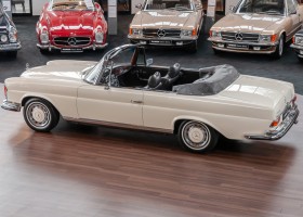 This wonderful convertible from the coveted 111 series was completed in May 1971 and then, like so many of the 1,232 convertibles built, delivered to the USA. The first known owner, a gentleman from Los Angeles, kept the vehicle in his possession until 1987. Via the renowned restoration company Paul Russell and Company, the vehicle reached its new owner in New York, who kept it in his possession for the next 30 years. Everything that was necessary to maintain the outstanding condition of the vehicle was carried out during this time by the specialists at Paul Russell and Company. In 1997, the vehicle was restored to body shell and then painted in the color "Light Ivory".