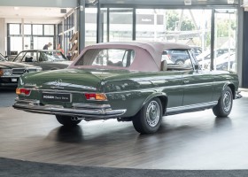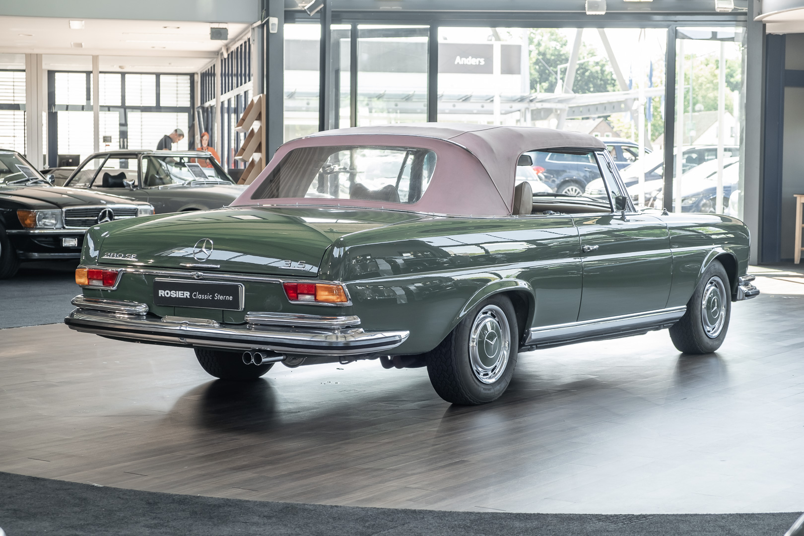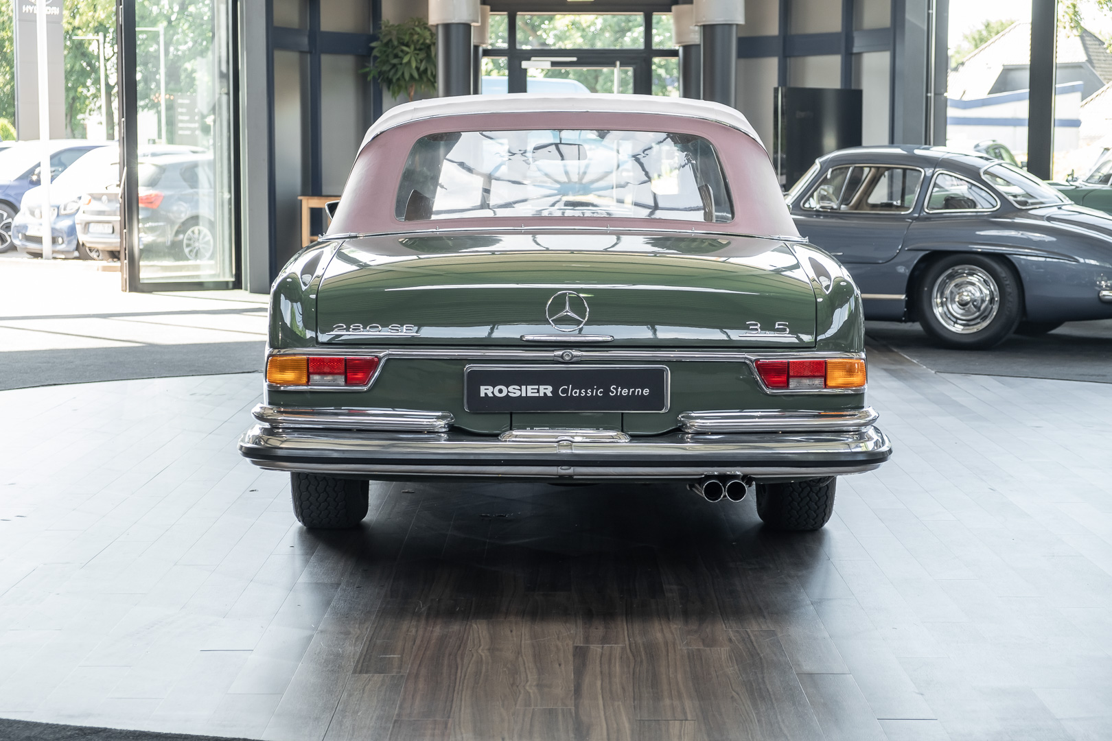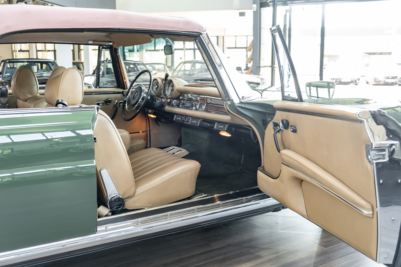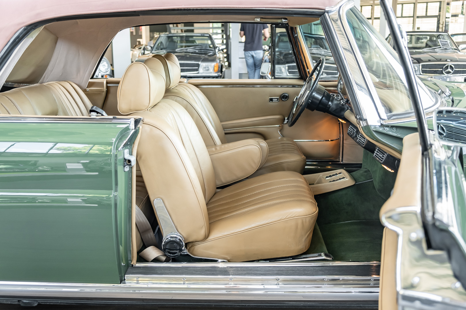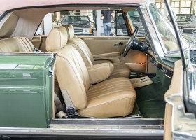 This highly elegant Mercedes 280SE 3.5 Cabriolet was purchased at the turn of the millennium in 2000 by the world-famous American-Japanese photographer and university professor Dr. Masumi Hayashi. She had discovered the car at a local Mercedes dealer in New Zealand and had taken a liking to the beautiful lines of the Mercedes-Benz Cabriolet. She wanted to have such a vehicle restored to new condition and integrate it into her famous art museum. She bought the accident-free and rust-free vehicle and had it shipped to Tokyo in Japan. She soon commissioned the Mercedes-Benz Center in Tokyo to carry out the restoration. Only the best materials were to be used. After about 4 years, the vehicle was finished. In keeping with her artistic eye, she chose the fine light olive green, which is very similar to the tundra green of Mercedes-Benz models from earlier years. The elegant, upholstered convertible roof was to be given a fine, light pinkish beige, in perfect harmony with the elegant beige leather interior. The factory equipment of this vehicle was lavish with air conditioning, electric windows, automatic transmission and Becker radio and promised not only the highest level of elegance but also the necessary comfort. After the sadly untimely death of Dr. Hayashi, who died at the age of just 60, the car subsequently came into the possession of a real estate entrepreneur in Newport Beach, California.The car had only been driven a little when it was purchased in California in 2015 by Thomas Rosier, the owner of the Rosier Classic Center in Oldenburg, and was soon sold to a collector.We are now able to offer you this vehicle from the collection again and are looking for an enthusiast for this very special 3.5-liter convertible.