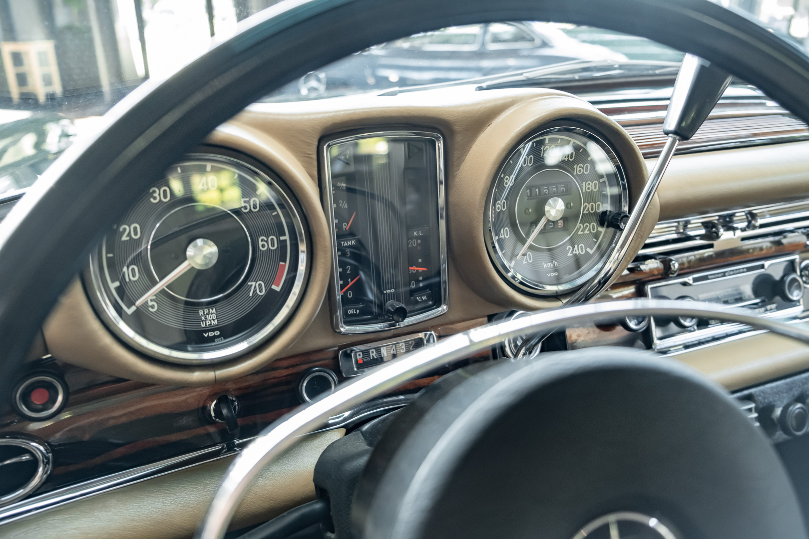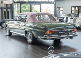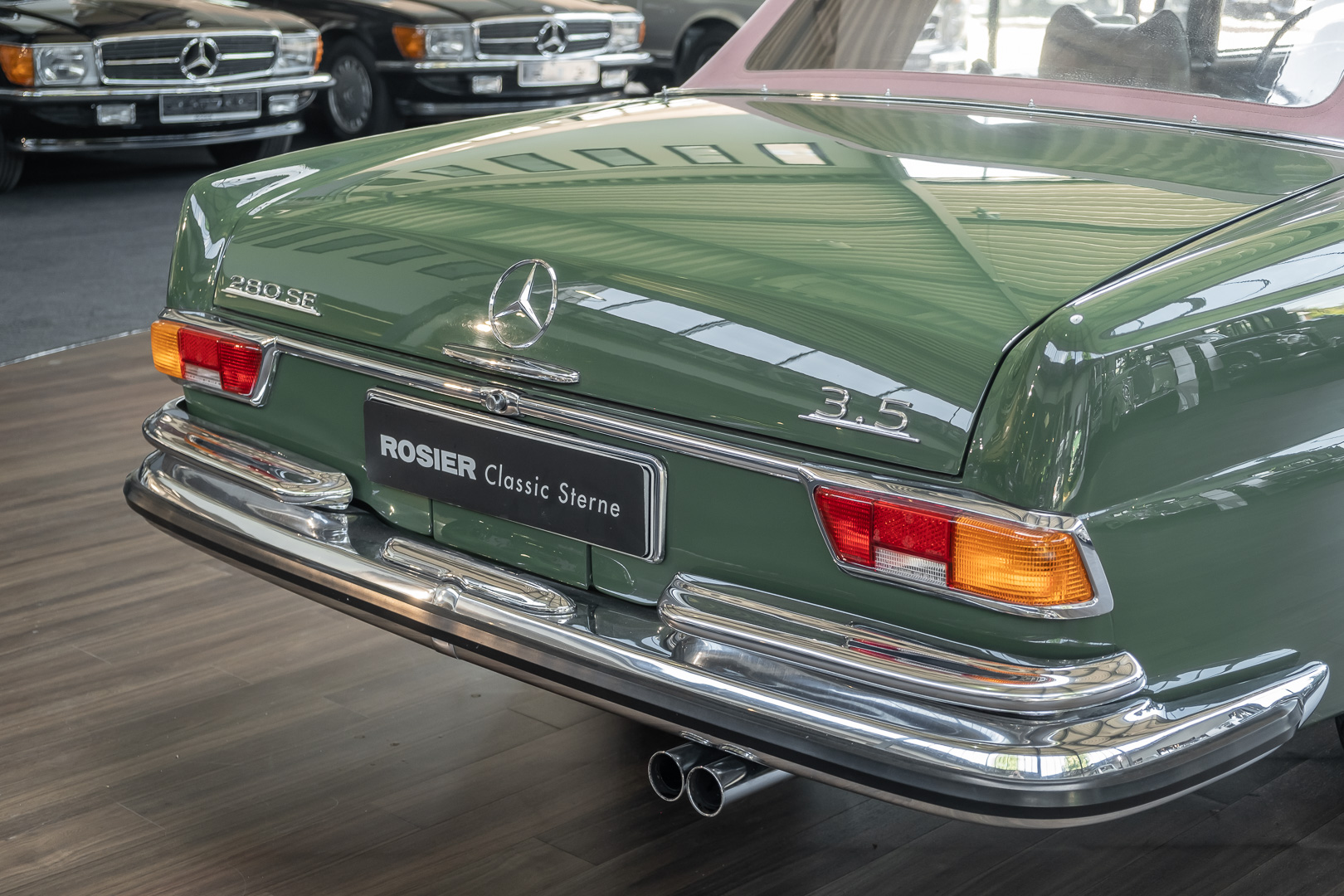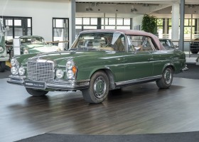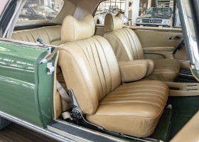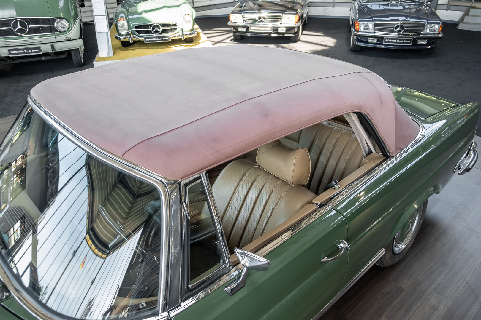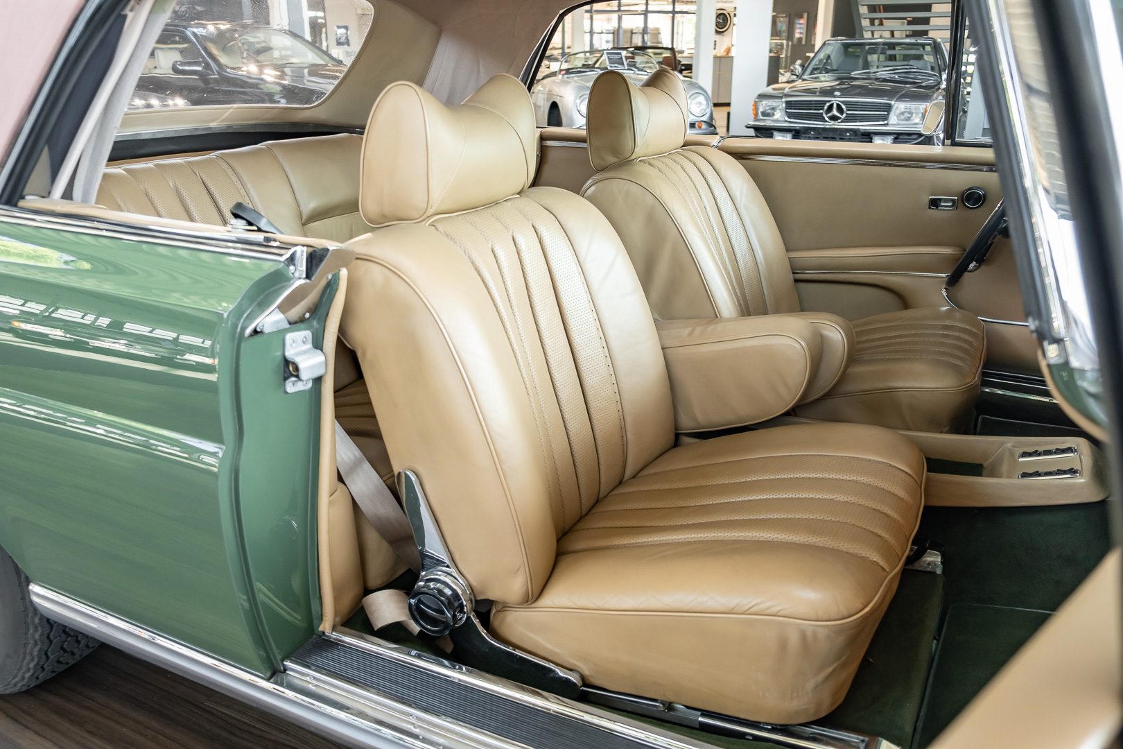 This highly elegant Mercedes 280SE 3.5 Cabriolet was purchased at the turn of the millennium in 2000 by the world-famous American-Japanese photographer and university professor Dr. Masumi Hayashi. She had discovered the car at a local Mercedes dealer in New Zealand and had taken a liking to the beautiful lines of the Mercedes-Benz Cabriolet. She wanted to have such a vehicle restored to new condition and integrate it into her famous art museum. She bought the accident-free and rust-free vehicle and had it shipped to Tokyo in Japan. She soon commissioned the Mercedes-Benz Center in Tokyo to carry out the restoration. Only the best materials were to be used. After about 4 years, the vehicle was finished. In keeping with her artistic eye, she chose the fine light olive green, which is very similar to the tundra green of Mercedes-Benz models from earlier years. The elegant, upholstered convertible roof was to be given a fine, light pinkish beige, in perfect harmony with the elegant beige leather interior. The factory equipment of this vehicle was lavish with air conditioning, electric windows, automatic transmission and Becker radio and promised not only the highest level of elegance but also the necessary comfort. After the sadly untimely death of Dr. Hayashi, who died at the age of just 60, the car subsequently came into the possession of a real estate entrepreneur in Newport Beach, California.The car had only been driven a little when it was purchased in California in 2015 by Thomas Rosier, the owner of the Rosier Classic Center in Oldenburg, and was soon sold to a collector.We are now able to offer you this vehicle from the collection again and are looking for an enthusiast for this very special 3.5-liter convertible.