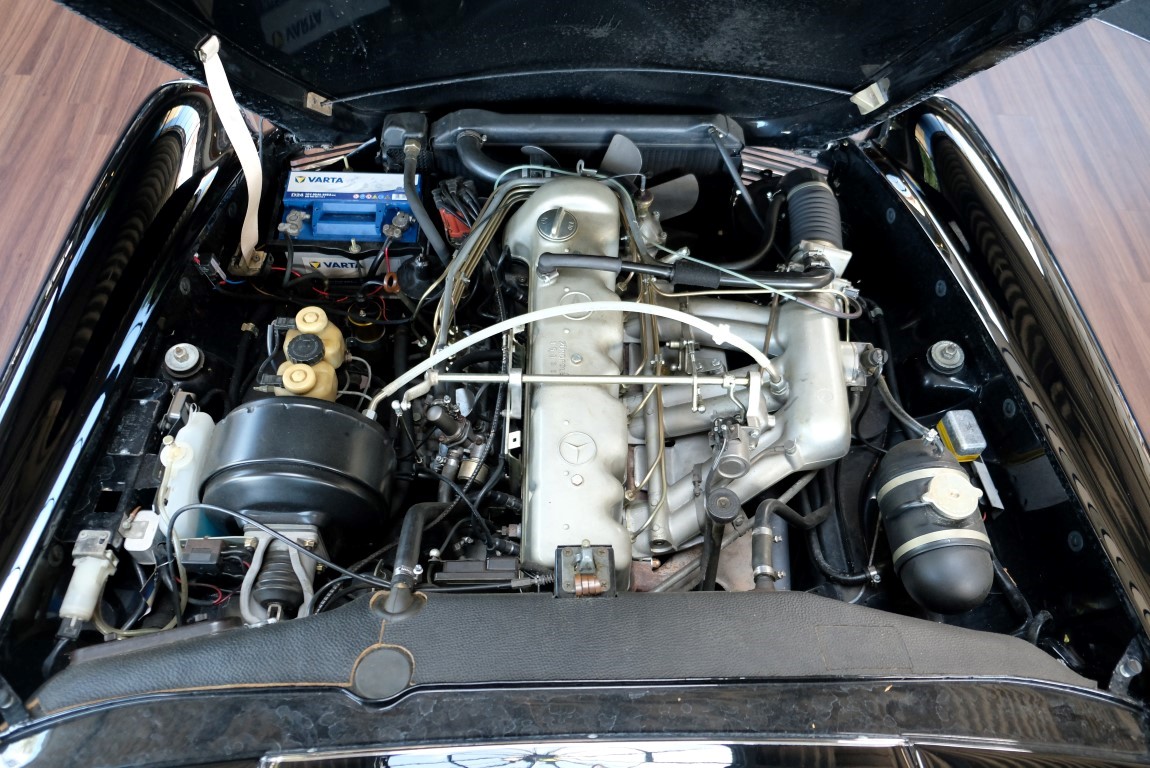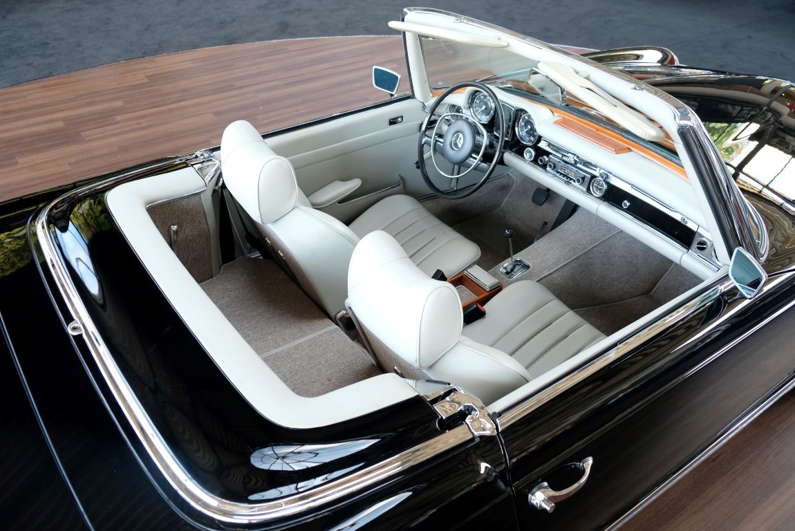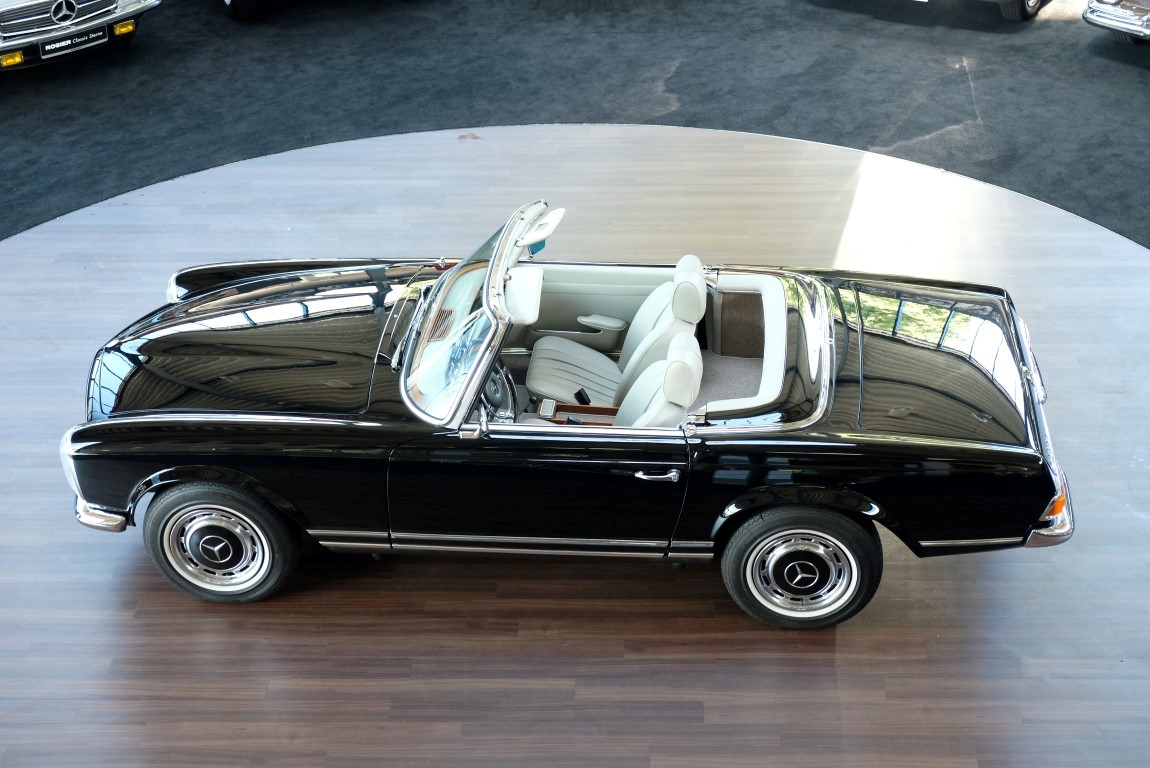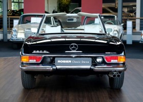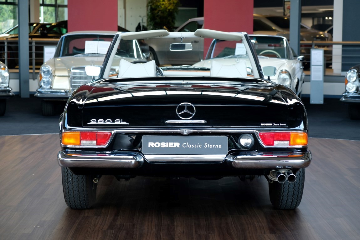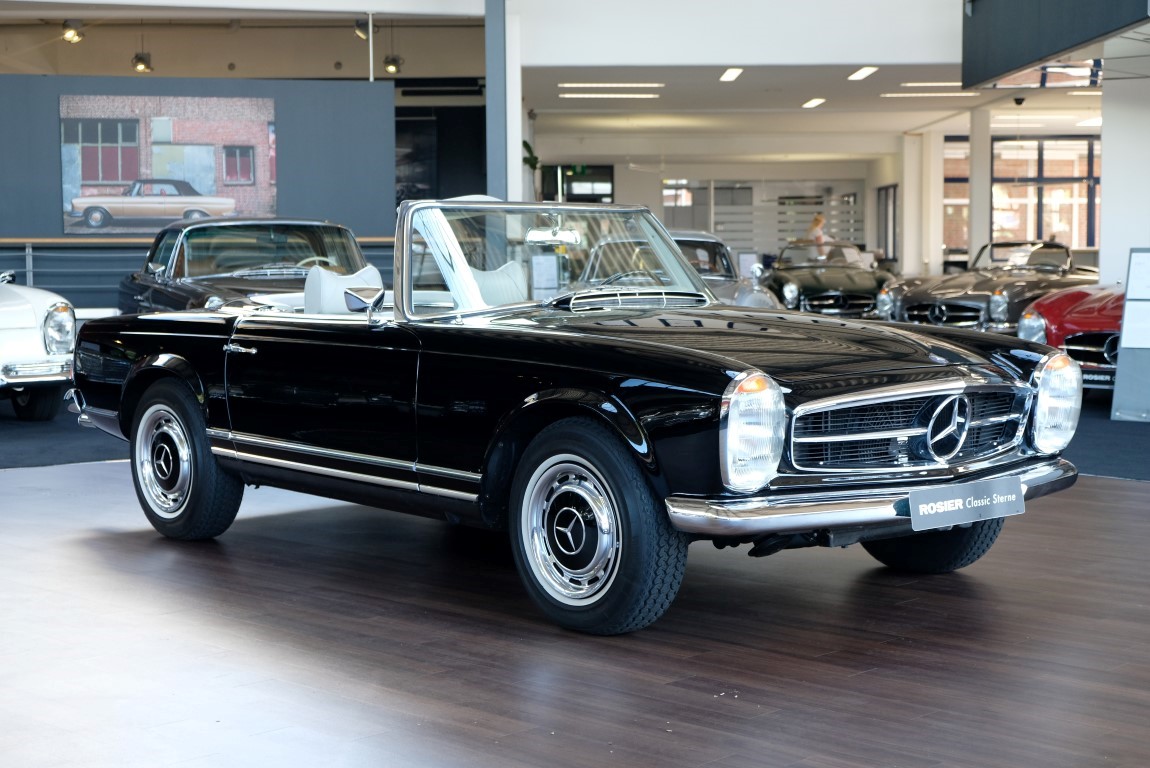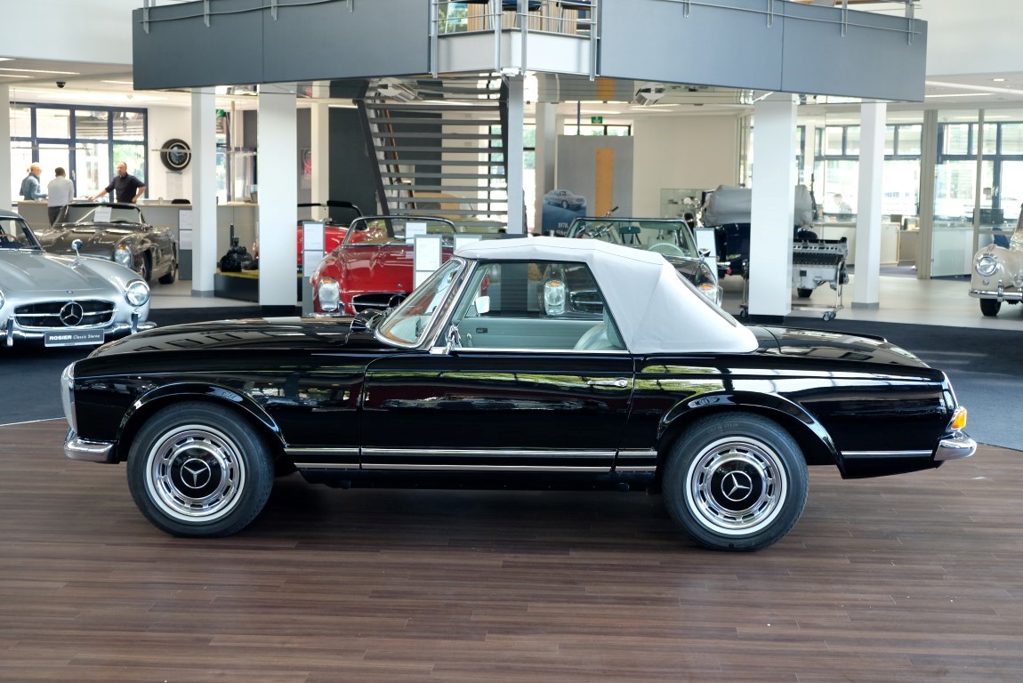 They were just around 70 years old and wanted to fulfill a long-cherished dream.They had a lot of fun at the pagoda. You kept the pagoda for about 12 years and did not give it until you decided to move to a retirement home. So the car came to Germany, to Rosier Classic sterne in Oldenburg. Here the car was subjected to extensive restoration, in the scope of which the car was completely disassembled and rebuilt. The technique has been revised and a new paint applied. When the car was completed in 2013, he found a new home in the high-quality collection of a long-standing customer of the house. Now that the collection was supplemented by another high-quality classic, had to give way to space of one of the existing vehicles. We had the choice and opted for the black 280 SL pagoda. A dream car that will surely find a new home quickly.
