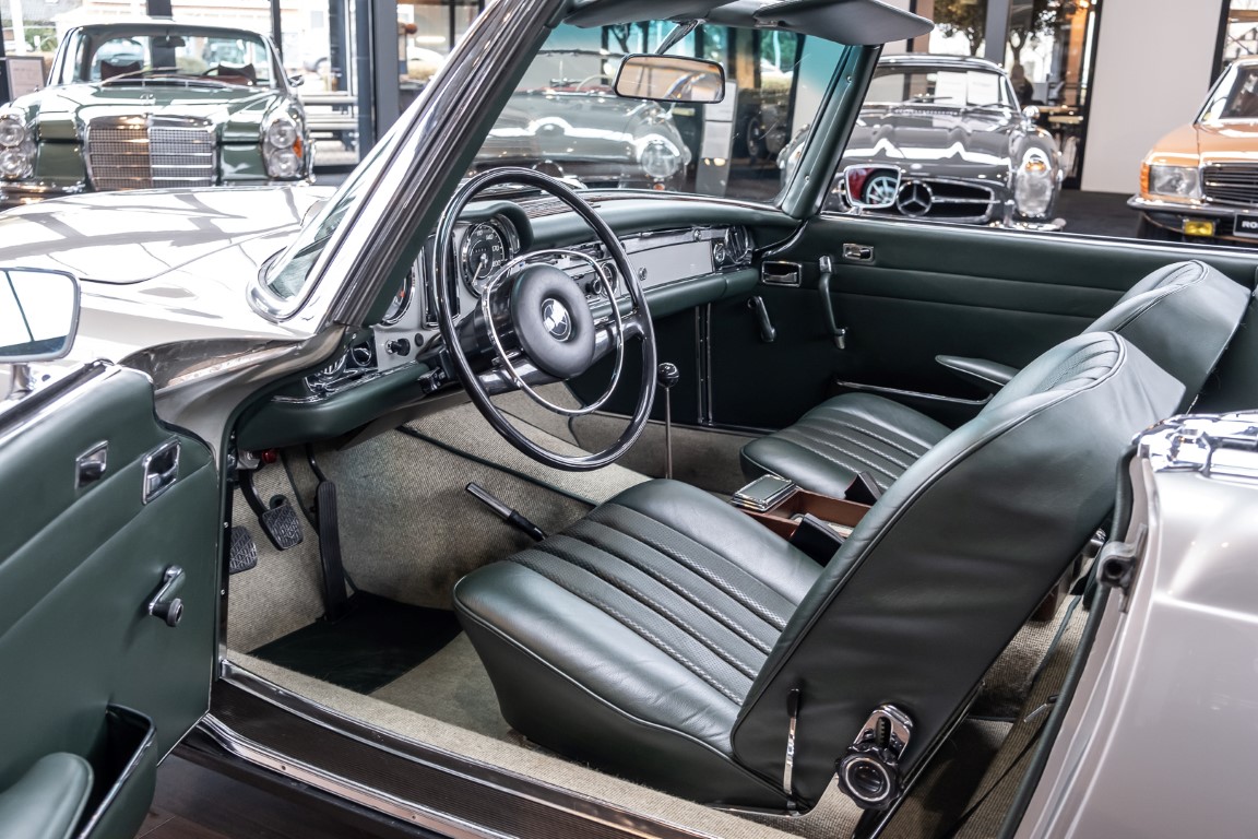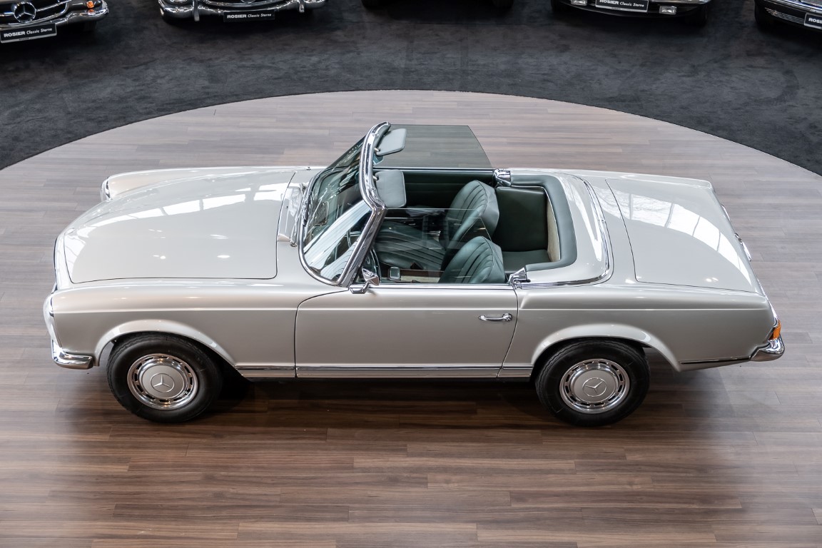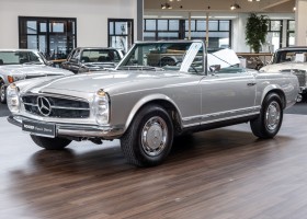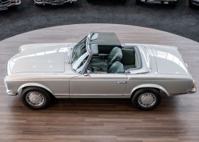 This 280 SL Pagoda has a french design. First delivery and is in a fantastic original condition. The underbody is untouched and sensational for a vehicle of this age. In February 2011 the engine of the roadster was completely disassembled and then completely overhauled. The soft top was renewed. To put a vehicle in this condition after a restoration is impossible, because the light patina is the charm of this authentic pagoda. The original mileage is 58.900 km and can be attested. Technically this SL was carefully checked and revised, all service works are documented comprehensibly since 2011. Data card, service booklet etc. are available in the original. A rare opportunity to purchase such a vehicle with a unique charisma. A great investment.