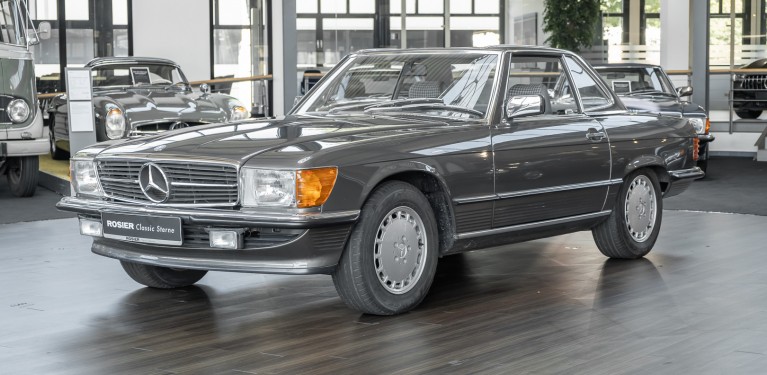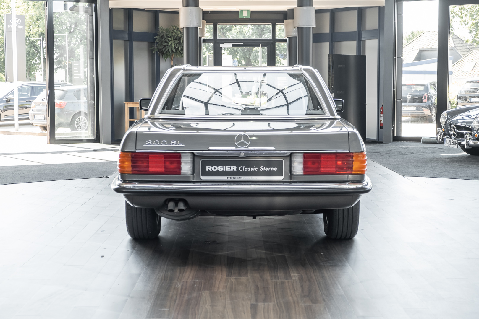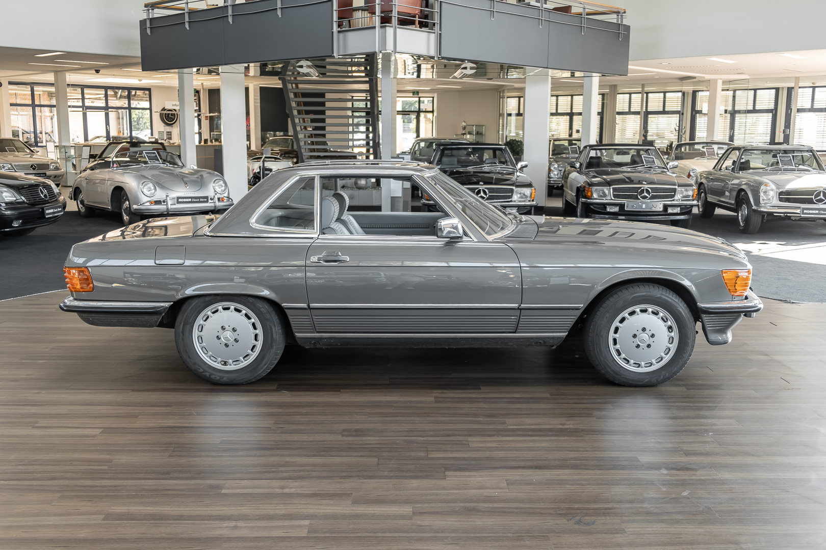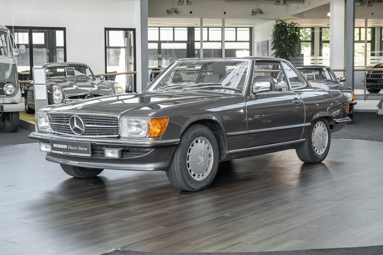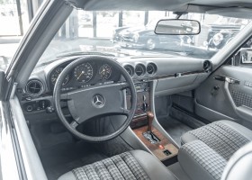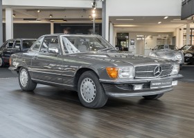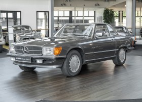 New in the showroom: 300 SL of the 107 model series in anthracite gray metallic in perfect combination with gray check fabric seats. With a mileage of only 41,000 km and a well-maintained Mercedes service booklet this 300 SL presents itself in top condition without exception. The vehicle is currently being reconditioned, further information will follow.