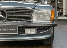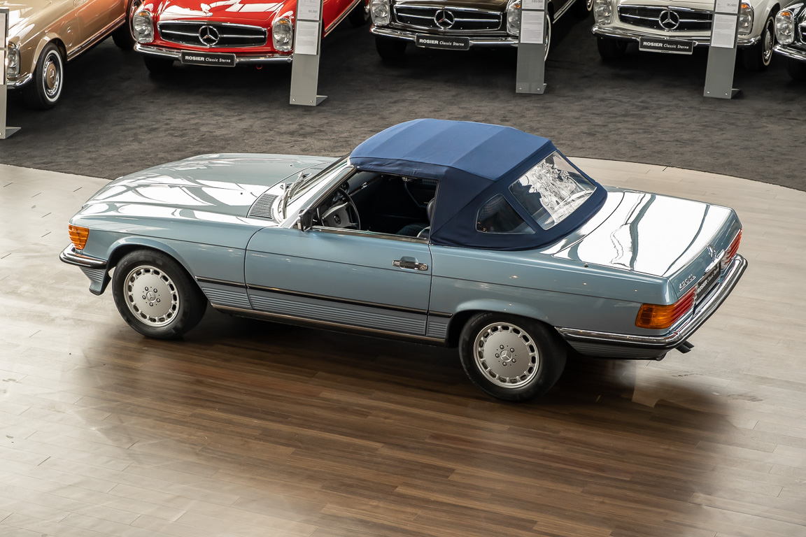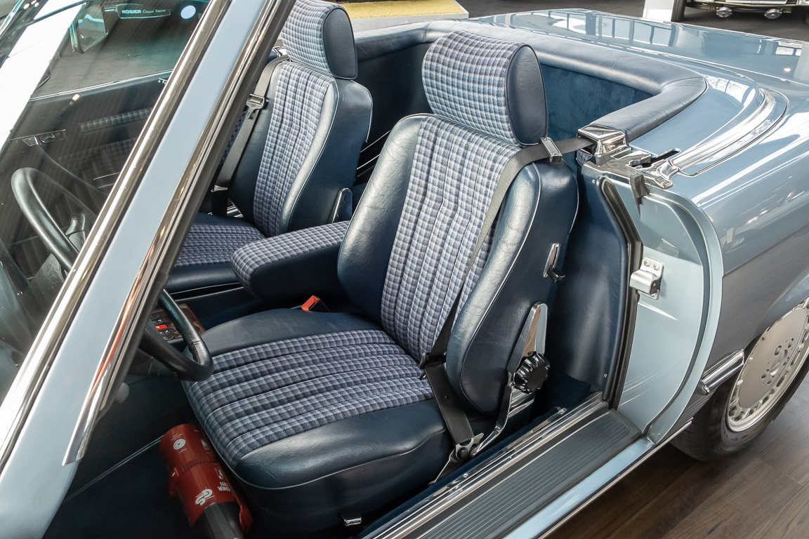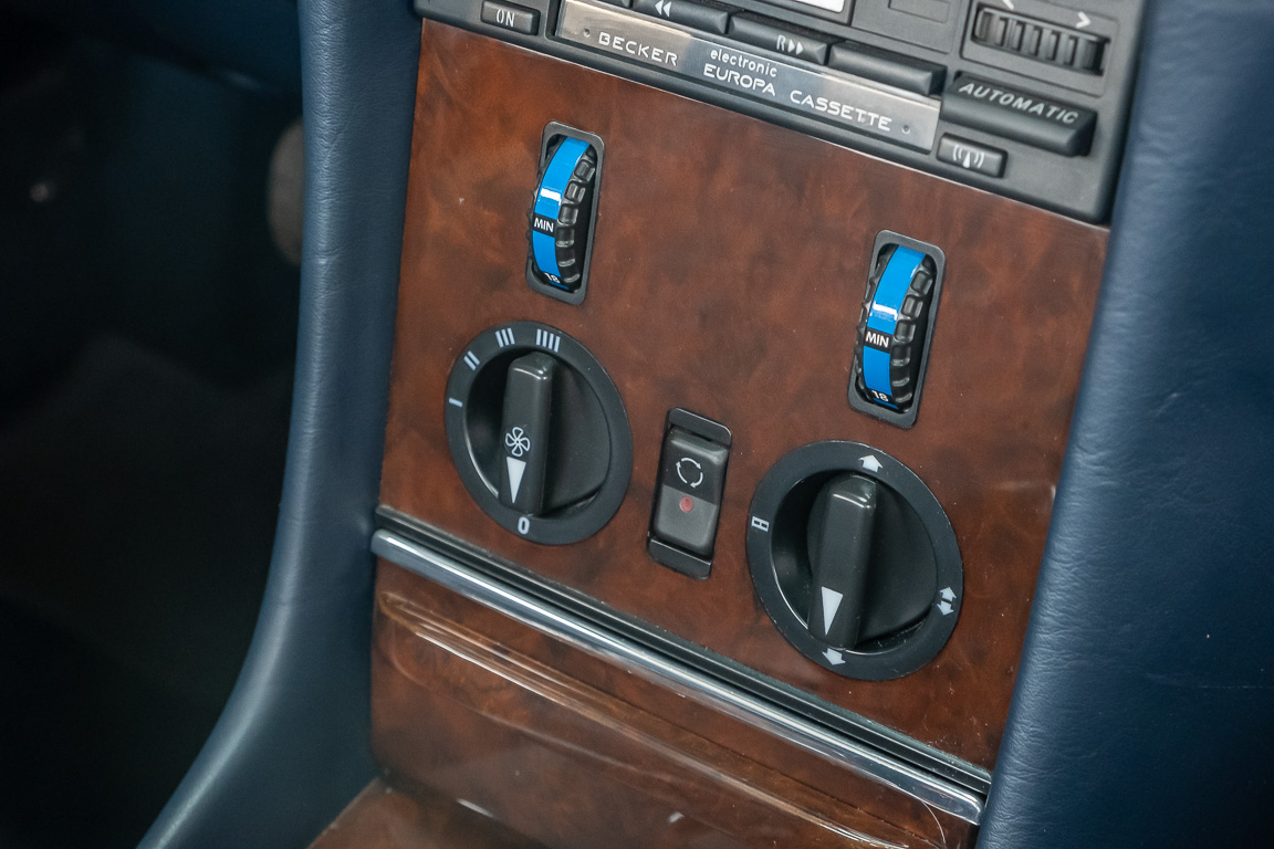 The present service booklet reveals an interesting history of this R107: On May 17, 1988, the vehicle was registered to a renowned hotel in the heart of Zurich. Probably the owner of the hotel fulfilled a long-cherished dream with this diamond-blue gem. Just a few weeks after delivery of the vehicle, in a Zurich suburb, the hotelier set off on a trip to Vigo, a picturesque town on the west coast of Spain. Judging by his Spanish family name, probably a visit to his homeland. It's hard to imagine the gorgeous roads that were traversed on the nearly 2,000-kilometer drive. Past Lake Geneva, through Lyon and Bordeaux, and through Spain's mountainous Basque country.