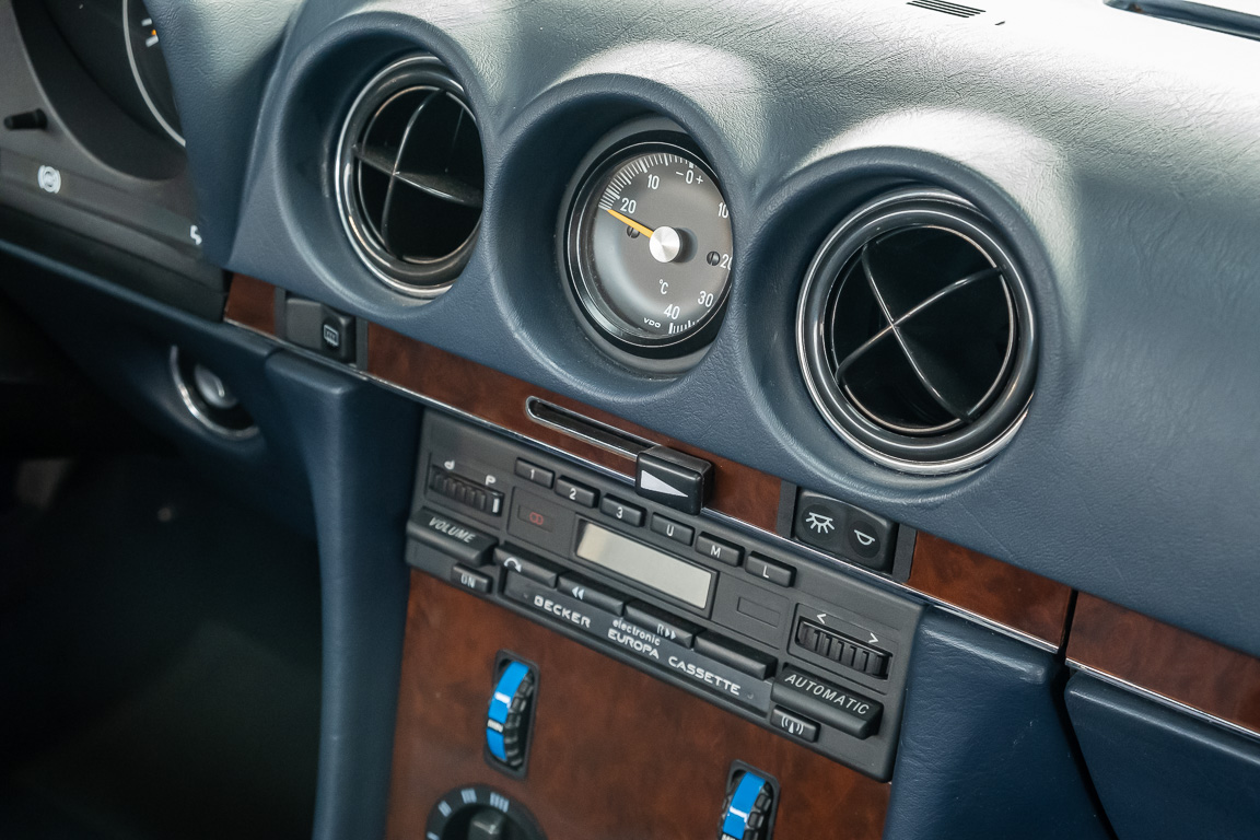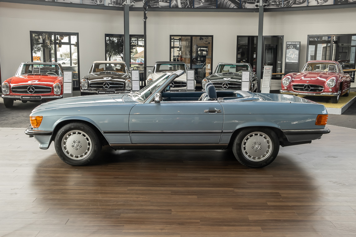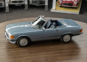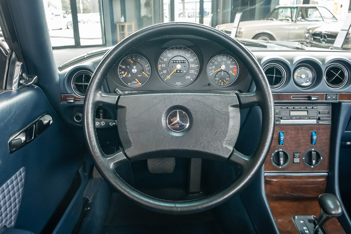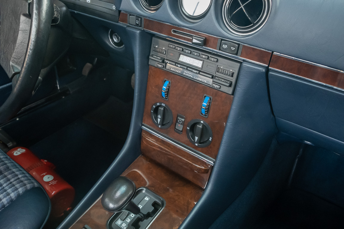 The present service booklet reveals an interesting history of this R107: On May 17, 1988, the vehicle was registered to a renowned hotel in the heart of Zurich. Probably the owner of the hotel fulfilled a long-cherished dream with this diamond-blue gem. Just a few weeks after delivery of the vehicle, in a Zurich suburb, the hotelier set off on a trip to Vigo, a picturesque town on the west coast of Spain. Judging by his Spanish family name, probably a visit to his homeland. It's hard to imagine the gorgeous roads that were traversed on the nearly 2,000-kilometer drive. Past Lake Geneva, through Lyon and Bordeaux, and through Spain's mountainous Basque country.