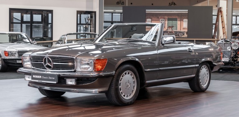 A real rarity: a 500 SL with original 14,500 kilometres. In 1987 this vehicle in noble anthracite grey metallic was delivered to the Munich branch, so it was built in German specification and was originally intended for the German market.