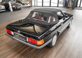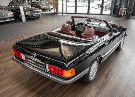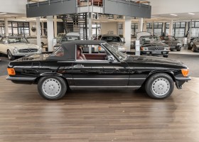 We are delighted to be able to offer you this fantastic 560 SL from the coveted 107 series. The rare and charming color combination of deep black paint (040) and red leather suits the SL exceptionally well. The vehicle has been completely converted to European standards and has a clean Carfax. A great opportunity to acquire a well-maintained vehicle with a manageable mileage. We would be happy to show you the vehicle in person.