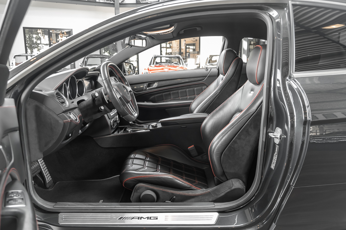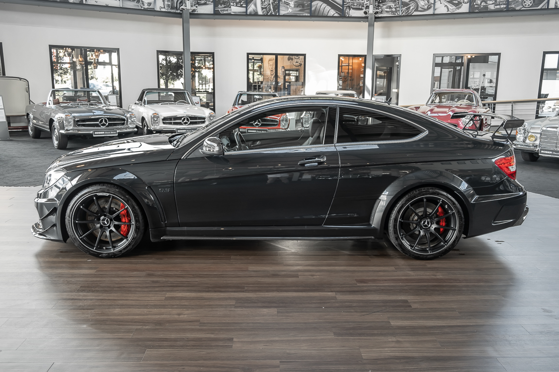 We are pleased to offer you this C 63 AMG Coupé in the rare Black Series version. As the highest expansion stage of the 204 series, the Black Series draws 517 hp from 6.3 liters of displacement. The emotions aroused by this last genuine AMG naturally aspirated model are difficult to put into words. The special paint in black metallic combined with black leather and red stitching suits this Black Series like a tailor-made suit. The vehicle is completely serviced and will be handed over to its new owner with fresh HU/AU. Take this special opportunity and experience the myth of this Black Series.