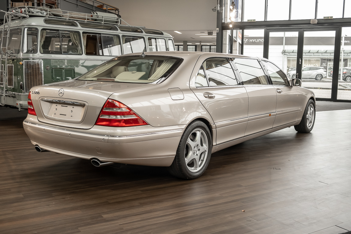 We are pleased to offer an exceptionally rare Mercedes-Benz S-Class: a one-of-a-kind long-wheelbase S600 Pullman equipped with AMG's enlarged 6.3-liter naturally aspirated V12 engine producing 444 horsepower. This opulent and powerful sedan, built entirely by Mercedes-Benz, was ordered for the chairman of one of the world's largest electronics companies. Unlike the few other W220 Pullmans built, this car received a rare option that was only available through AMG for one month in 2001: an enlarged 6.3-liter V12 that produced 77 more horsepower than the standard V12. Pullmans have been part of the Mercedes-Benz S-Class heritage since the early 1930s and are highly sought after worldwide by dignitaries, industry leaders and customers for whom privacy is paramount. This 2001 S600 was used for Chairman's trips on the West Coast and has only 9,600 miles on the odometer. It has been cared for and maintained according to Mercedes-Benz requirements and appears essentially as new. This Pullman is a full foot longer than a normal S600. A luxury sedan with high comfort, powerful and whisper quiet 12 cylinder engine, vis-à-vis seating and uniquely elegant appearance. Come and see for yourself, we will be happy to advise you.