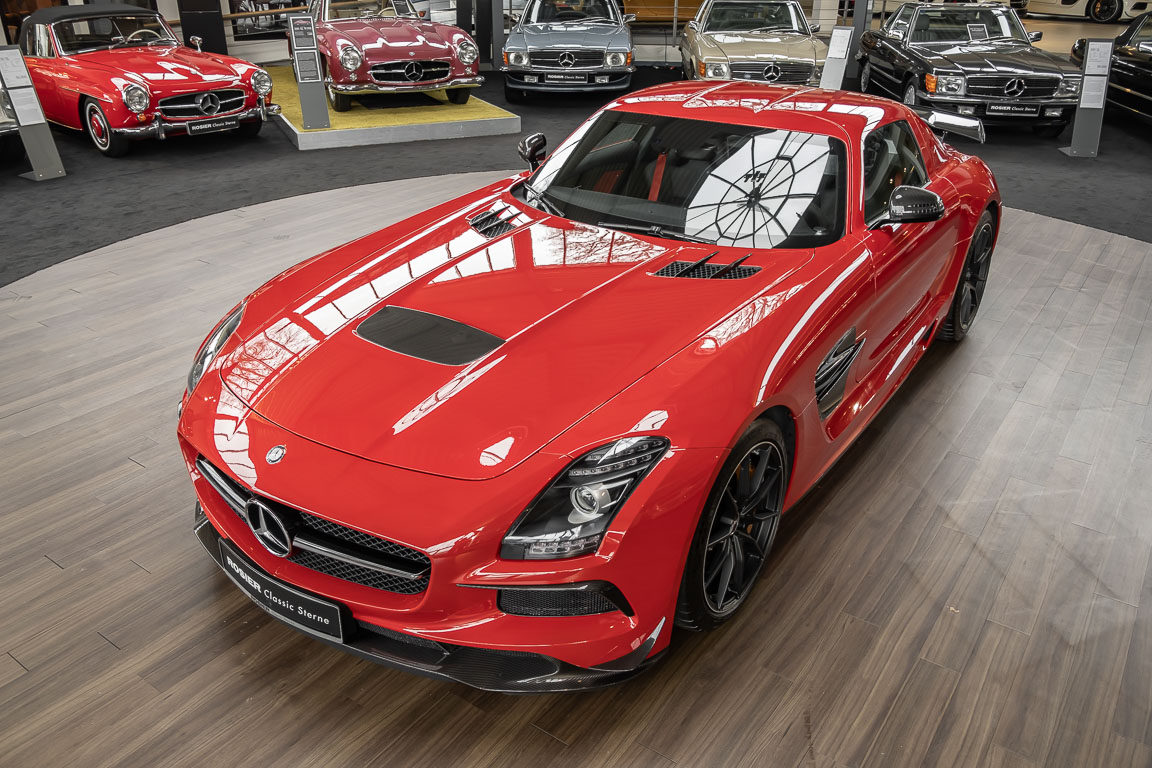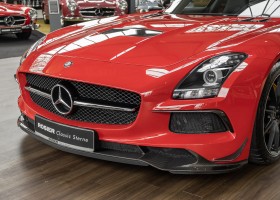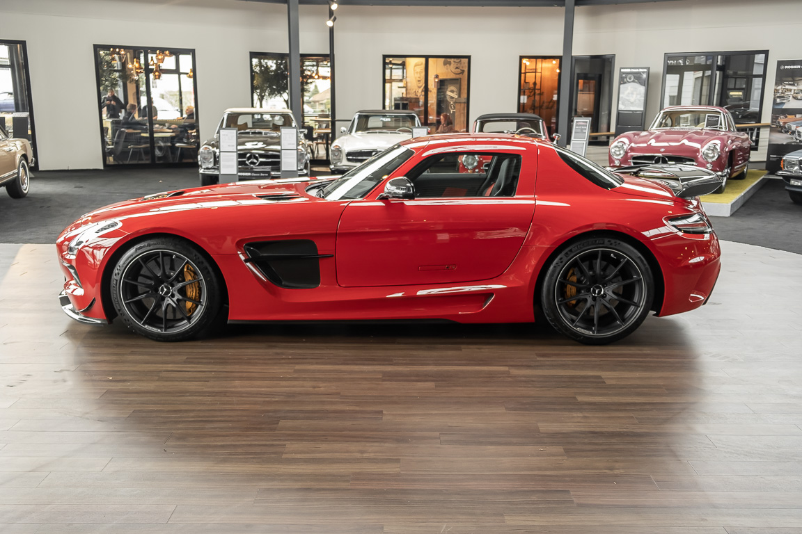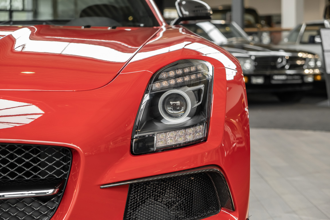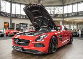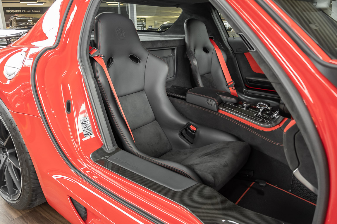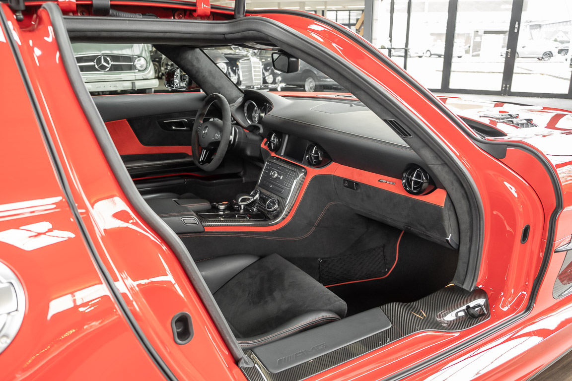 We are pleased to offer you the next gullwing icon after the legendary 300 SL. The Mercedes-Benz SLS AMG Black Series was produced in small series, in a strictly limited edition of 350 vehicles, and is a highly interesting gem for collectors worldwide. With 631 hp, the 6.3l naturally aspirated V8 engine not only provides 60 hp more power than the standard SLS, thanks to intelligent lightweight construction, the Black Series ensures driving performance like a racing car. At least in theory. In practice, despite racing genes, the Black Series models were mostly stored and hardly moved due to rapidly rising prices. Like this specimen.