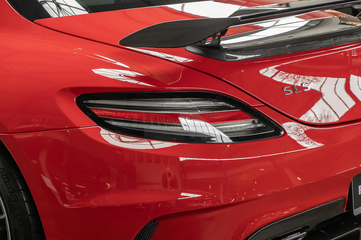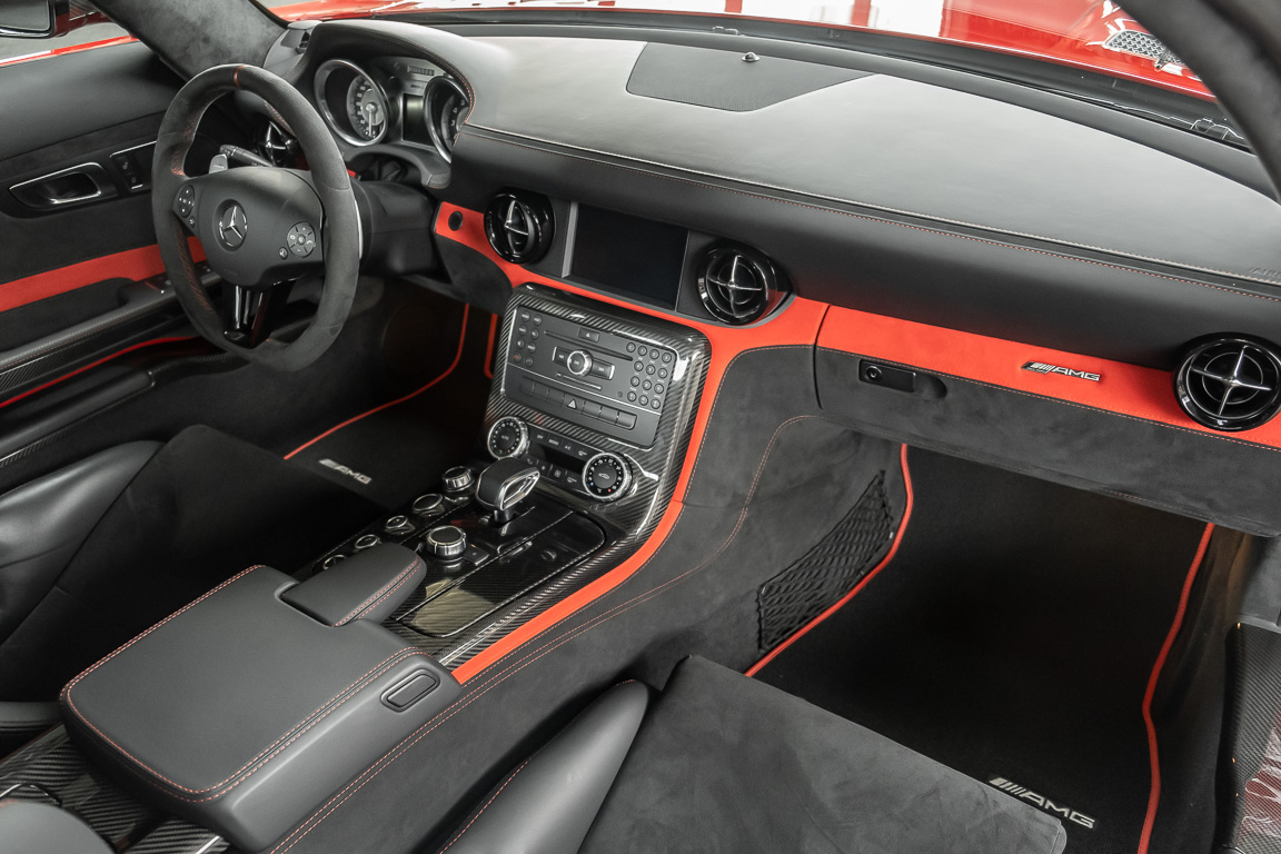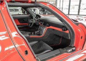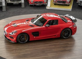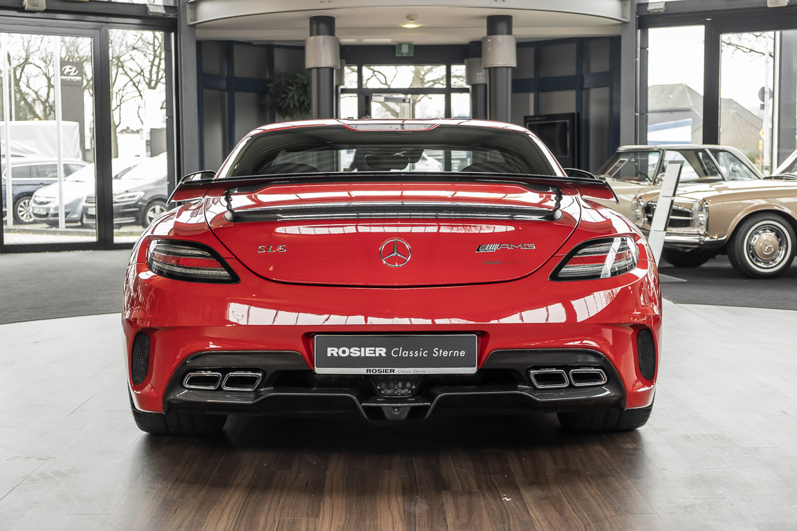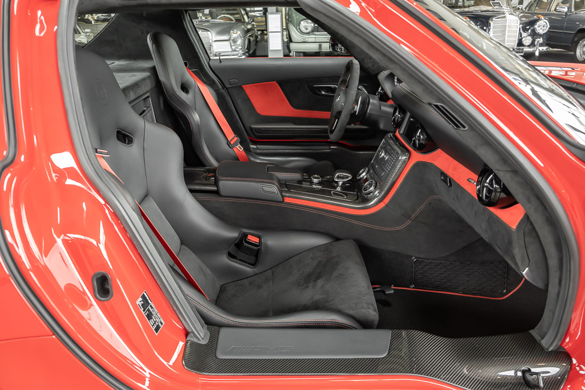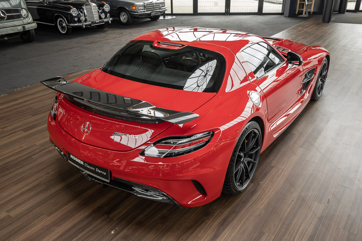 We are pleased to offer you the next gullwing icon after the legendary 300 SL. The Mercedes-Benz SLS AMG Black Series was produced in small series, in a strictly limited edition of 350 vehicles, and is a highly interesting gem for collectors worldwide. With 631 hp, the 6.3l naturally aspirated V8 engine not only provides 60 hp more power than the standard SLS, thanks to intelligent lightweight construction, the Black Series ensures driving performance like a racing car. At least in theory. In practice, despite racing genes, the Black Series models were mostly stored and hardly moved due to rapidly rising prices. Like this specimen.
