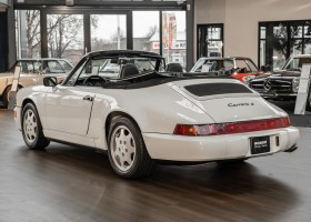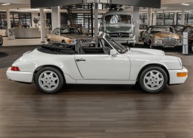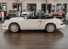 We are pleased to offer you this wonderful 964 Porsche Cabrio. Very special is certainly the dreamlike condition of this 1991 Cabriolet, which you do not notice the mileage of 59,885 miles in the slightest. Very special, however, is the story behind this white Carrera Cabrio. Whitney Houston, the world-famous singer and actress, ordered this vehicle from the Porsche dealer she trusted on April 26, 1991. With more than 200 million records sold and over 200 gold, platinum, silver and diamond records, as well as six Grammys, she is one of the world's most successful singers! In 1992, shortly after the purchase of this vehicle, she reached the peak of her popularity through her acting debut in the lead role of the movie Bodyguard as well as through the soundtrack "The Bodyguard", which was largely sung by her. We offer you a rare opportunity to experience a piece of musical history.