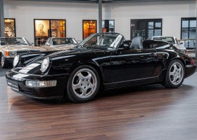 With a total mileage of about 85,000 km, the vehicle is in a beautiful, original condition. The noble appearance in deep black lacquer in combination with the black leather interior makes the vehicle already today a breathtaking youngtimer and a real classic.