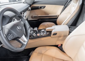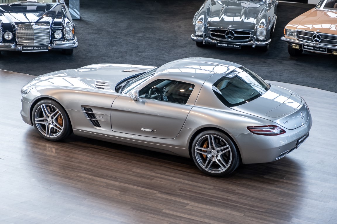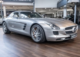 Dieser Mercedes-Benz SLS AMG Roadster präsentiert sich in absoluter Bestform. Mit gerade einmal 650 Kilometern Laufleistung ist dem Fahrzeug ohne Weiteres der Charme eines Neuwagens abzunehmen. Als Teil einer Exklusiven Sammlung und nur zu Erhaltungsfahrten wurde dieses Schmuckstück bewegt. Zum Glück, kann man heute sagen. Mit Keramikbremse, Bang & Olufsen Premium-Soundsystem und einer Fülle an Sonderausstattung stellt dieses ohnehin gefragte Coupé eine einzigartige Gelegenheit dar. Die aufsehenerregende Außenlackierung im exklusiven AMG Alubeam war dem Käufer dieses Traum-SLS seinerzeit über 10.000 Euro wert. So viel Aufpreis kostete damals die Sonderlackierung bei AMG.