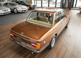 Wir freuen uns, Ihnen diesen BMW 2002tii aus dem Jahre 1974 anbieten zu dürfen. Der Auftritt in Sienabraun Metallic in Kombination mit beigem Leder steht diesem Fahrzeug ausgezeichnet. Die bereits werkseitig verbauten Extras machen diesen 2002 zu einem echten Schmuckstück. Mit Schiebedach, Klimaanlage, Colorverglasung sowie Leichtmetallfelgen blieben für damalige Verhältnisse keine Wünsche offen. Im Jahre 2014 wurde das Fahrzeug aus Evanston in Illinois in sein Ursprungsland zurückgeholt. Trotz des soliden Zustandes entschied sich der Besitzer für einen vollumfänglichen Neuaufbau dieses Traum-Bayern, bei dem weder Kosten noch Mühen gescheut wurden. So wurde das Fahrzeug in den Jahren 2014 und 2015 umfangreich und auf höchstem Niveau bei einem BMW- und Alpina-Klassikspezialisten in Albaching, nahe München restauriert. Das Ergebnis dieser Qualitätsarbeit kann sich sehen lassen: Der Motor wurde aufwändig auf den Deutschen Standard umgebaut – inklusive einer höheren Verdichtung. Das Original-Getriebe wurde überholt und alle Verschleißteile ausgetauscht. Bremsen, Lenken, Schalten: alles fühlt sich an, wie bei einem Jahreswagen. Ein absoluter Traum, bei dem man die „Freude am Fahren“ mit allen Sinnen erfährt! Steigen Sie ein und „erfahren“ Sie es selbst.