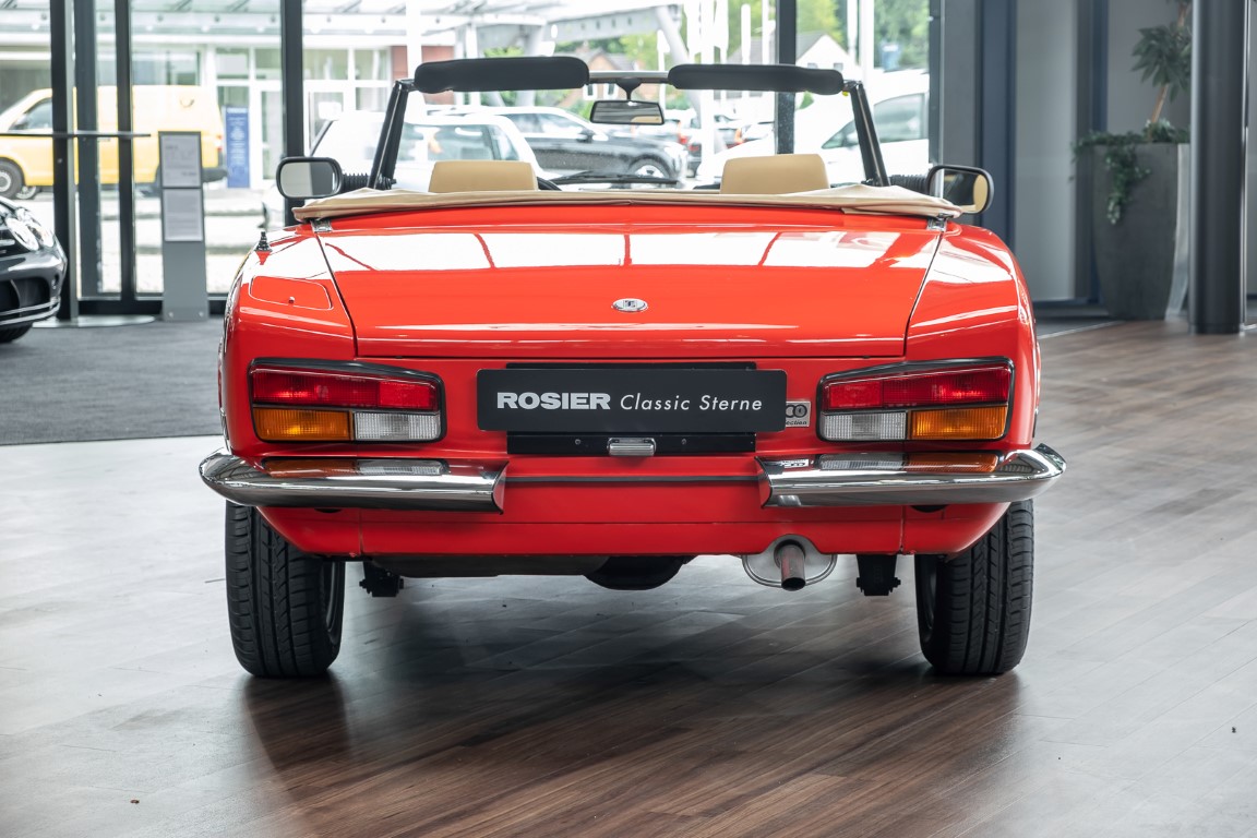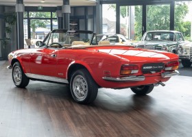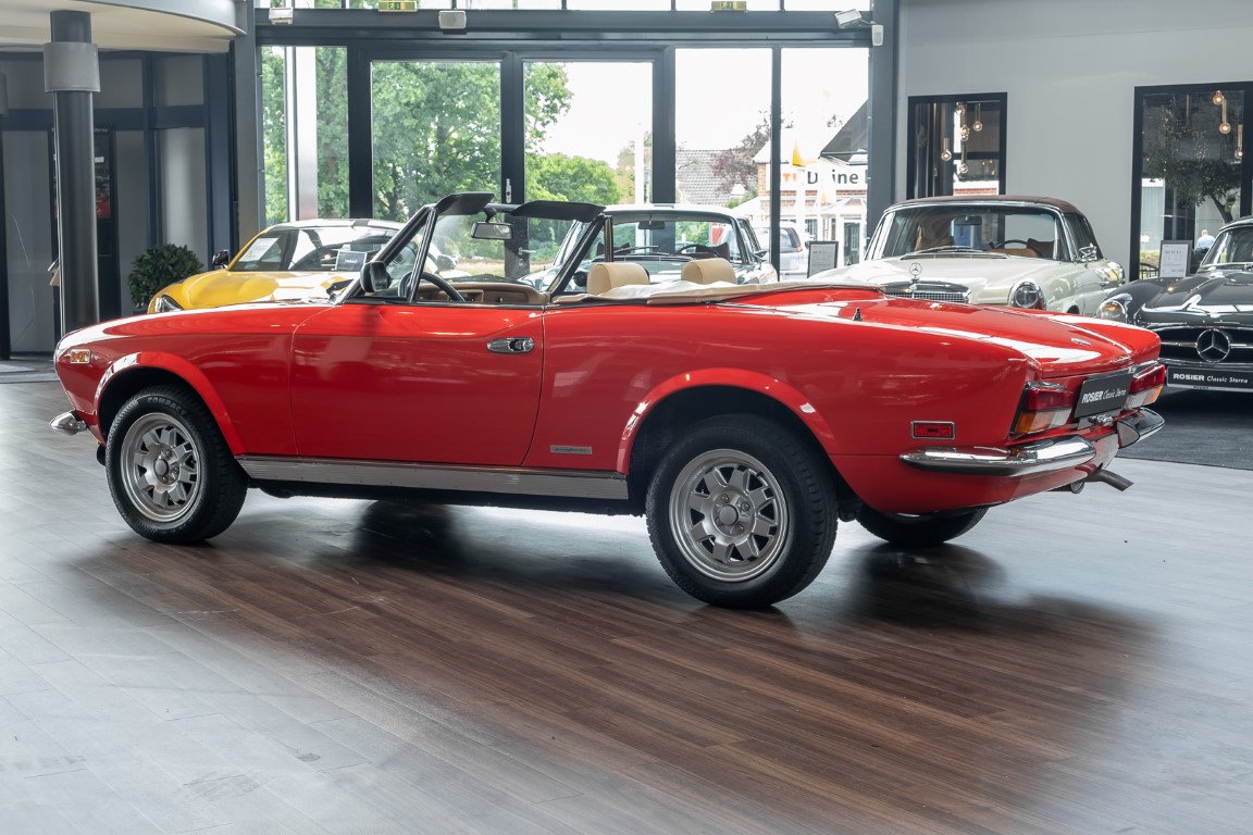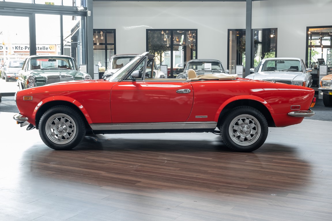 Der Fiat 124 Spider wurde 1966 auf dem Turiner Automobilsalon vorgestellt. „Er war eine echte Schönheit“, wie der Fiat 124 Spider-Club so treffend beschreibt, „ein echter Sportwagen seiner Zeit“. Den größten Zuspruch fand er in Deutschland und den USA und entpuppte sich als richtiger Verkaufsschlager. Als FIAT das Modell im Herbst 1982 aus dem Programm nahm, wurde der Spider noch bis 1985 in den Werkshallen von Pininfarina weitergebaut. Für den europäischen Markt hieß er Pininfarina Spider Europa, für den US Markt wurde er liebevoll Pininfarina Spider Azzurra genannt. Der hier angebotene Pininfarina Spider Azzurra wurde in 1983 gefertigt und an seinen Erstbesitzer im trockenen Denver/Colorado in den USA ausgeliefert. Er wurde wenig gefahren und stand Zeitweise im angesehenen LeMay Automuseum in Denver. Als der Wagen in 1990 an seinen zweiten Besitzer verkauft wurde, hatte er gerade einmal 9.500 Meilen gelaufen. Der zweite Besitzer hatte den Wagen ebenfalls wenig gefahren, dafür aber bestens gepflegt. Er verkaufte den Wagen in 2014 an Westgor Nathan Todd in Burnsville/Minnesota von dem wir ihn letztendlich übernehmen konnten. Wir freuen uns, Ihnen diesen schicken Pininfarina Spider Azzurra mit knapp über 15.500 Meilen (entspricht etwa 25.000 km) Laufleistungleistung anbieten zu können. Eine tolle Gelegenheit auf einen relativ modernen Klassiker mit enormem Charme.