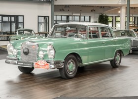 Kaum auf dem Markt zu bekommen sind originale Rallye-Fahrzeuge aus den 1950er und 1960er Jahren. Meist wurden die Fahrzeuge parallel im normalen Straßenverkehr eingesetzt und Ihr ruhmreiches Doppelleben wurde in der Öffentlichkeit nicht bekannt. Wir freuen uns sehr, Ihnen mit dem hier angebotenen Wagen ein tolles Original mit eindrucksvoller Rallye-Geschichte anbieten zu können. Diese Mercedes-Benz 220S Limousine wurde in 1963 im Werk fertiggestellt und gleich nach seiner Übergabe an den damaligen Erstbesitzer, nach den Vorgaben der in 1963 gültigen Rallyereglements, modifiziert. Diverse Versteifungen der Karosserie wurden vorgenommen, bessere Scheinwerfer und Zusatzscheinwerfer wurden verbaut, ebenso wie Sportstoßdämpfer. Der Motor wurde so modifiziert, dass er auch mit Kraftstoff schlechterer Qualität auskommen konnte.