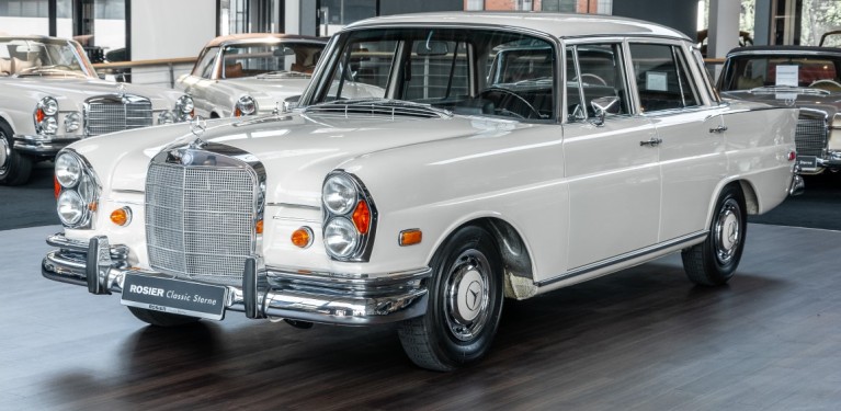 Diese elegante Mercedes-Benz 230S Heckflossen-Limousine wurde Ende 1967 von Frankie L. Kraus aus Houston/Texas/USA geordert und am 06.03.1968 an ihn erstausgeliefert. Leider hatte sich zwischenzeitlich sein Gesundheitszustand so verschlechtert, dass er nicht mehr in der Lage war den Wagen zu fahren. Er wollte sich von seinem Traumwagen nicht trennen und behielt ihn bis zu seinem Tod im Frühjahr 1985.