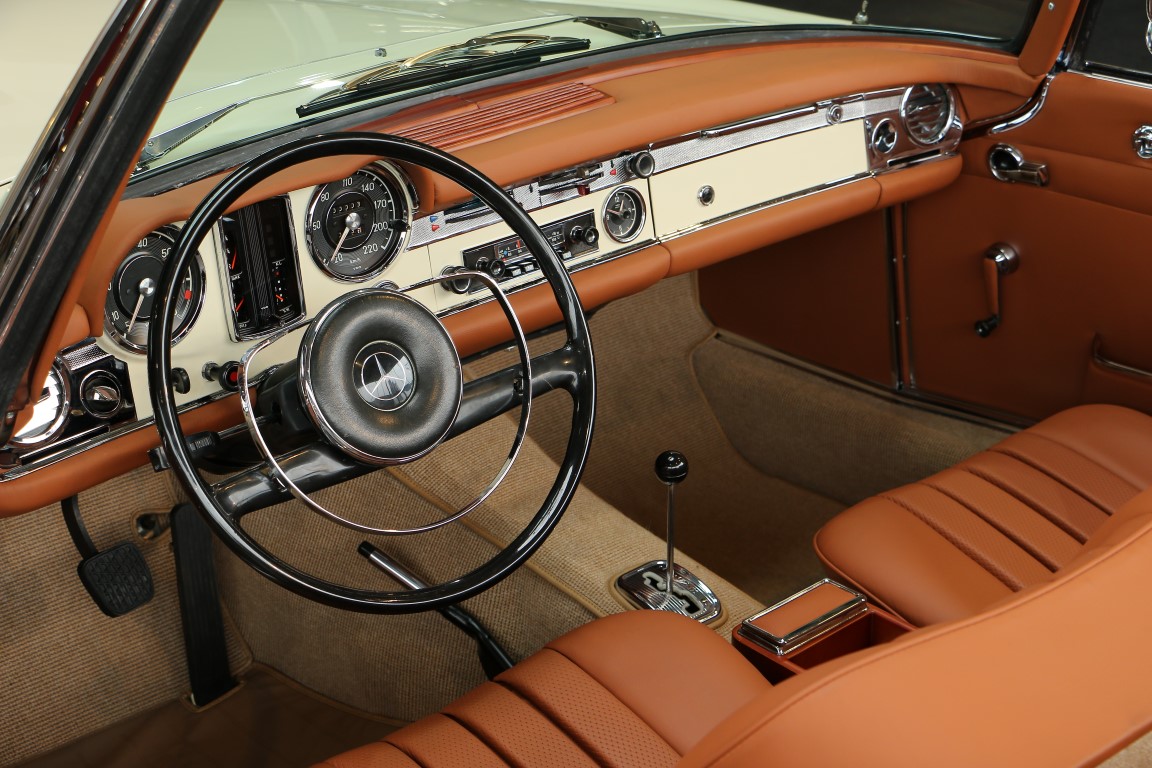 Diese 230 SL Pagode W113 wurde nach dem Grundsatz der Mercedes-Benz Philosophie restauriert: „Das Beste, oder nichts.“ Absolut jede Baugruppe wurde im Detail befundet und im Anschluss in akribischer Genauigkeit wieder zusammengesetzt. Oberste Priorität war es, der Werksauslieferung möglichst nahe zukommen. Für alle nicht mehr lieferbaren originalen Mercedes-Benz Ersatzteile wurden individuelle Lösungen gesucht und gefunden. Teile wurden neuaufgearbeitet bzw. durch hochwertige Teile ersetzt oder nachkonstruiert. Lackierung, Interieur, Verdeck & die Technik wurden nach Herstellervorgaben restauriert. Alle Maßnahmen für eine Europäisierung wurden veranlasst und umgesetzt. Überzeugen Sie sich selbst von der Qualität des Ergebnisses.