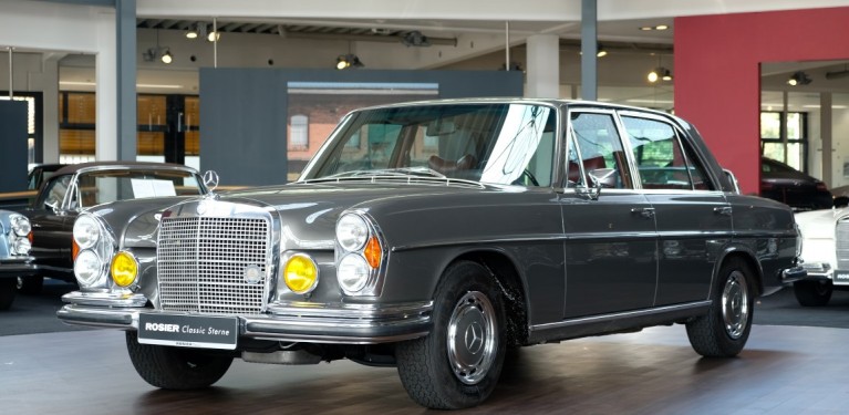 Er hatte sich einen Traum erfüllt und gab dem Wagen einen standesgemäßen Garagenplatz an seiner Villa mit eigenem Bootssteg, in der malerischen Halstead Bay. Als er sich in 2017 entschied, den Wagen abzugeben, konnten wir ihn übernehmen und nach Deutschland holen. Die mit dem kraftvollen 6,3 Liter Motor ausgestatteten 300 SEL Modelle sind sehr gesucht. Top Exemplare sind kaum zu bekommen. So haben wir uns entschlossen, den Wagen trotz hervorragender Substanz komplett zu überarbeiten und ein Top Exemplar daraus zu machen. Der Unterbau wurde professionell gereinigt und neu versiegelt, die Achsen überholt, neue Luftbälge und Stoßdämpfer verbaut, die Servolenkung überholt, ein neuer Kühler verbaut, der Originalmotor überprüft, neu eingestellt und wo nötig Teile erneuert. Im Rahmen der Rückrüstung der seitlichen amerikanischen Beleuchtung auf deutschen Standard, erhielt der Wagen eine neue Ganzlackierung. Nun präsentiert sich der Wagen in sensationellem Zustand, man möchte schnell den Begriff „wie neu“ verwenden. Lassen Sie sich ebenfalls faszinieren, von der Ausstrahlung dieses Top-Mercedes. Einen solchen 300 SEL 6.3 findet man höchst selten.
