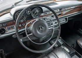Der Motor läuft kraftvoll, das Getriebe schaltet die Gänge angenehm. Das dicke Qualitätsleder ist in einem hervorragenden Zustand und die Türen fallen so satt ins Schloss, dass es eine wahren Wonne ist. Es ist schon ein ganz besonderes Gefühl, mit der größten und am stärksten motorisierten S-Klasse aus den beginnenden 1970er Jahren durch malerische Gegenden zu gleiten und in der entspannten Welt der automobilen Klassiker zu versinken. Steigen Sie ein und erfahren es selbst.