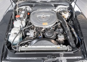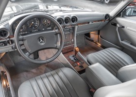 Im Mai 1989 erfüllte sich ein Herr aus dem schönen Leonberg, 13 Kilometer westlich der Landeshauptstadt Stuttgart seinen persönlichen Traum vom Offenfahren mit diesem traumhaften 500 SL der Baureihe 107. Eine zeitlose Kombination aus einer Außenlackierung in Blauschwarz-Metallic in Kombination mit alpakagrauem Leder entsprach dem damaligen Zeitgeist und garantiert noch heute einen modischen Auftritt. In Sachen Ausstattung wurden keine Kompromisse eingegangen: von der Klima-Automatik über elektrische Fensterheber sowie Sitzheizung für Fahrer und Beifahrer blieben keine Wünsche offen. Ein Tempomat, Makeup-Spiegel in der Sonnenblende und ein Becker Radio rundeten die Ausstattung ab und entspricht der damaligen Vollausstattung.