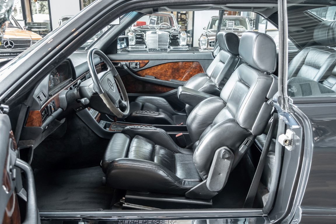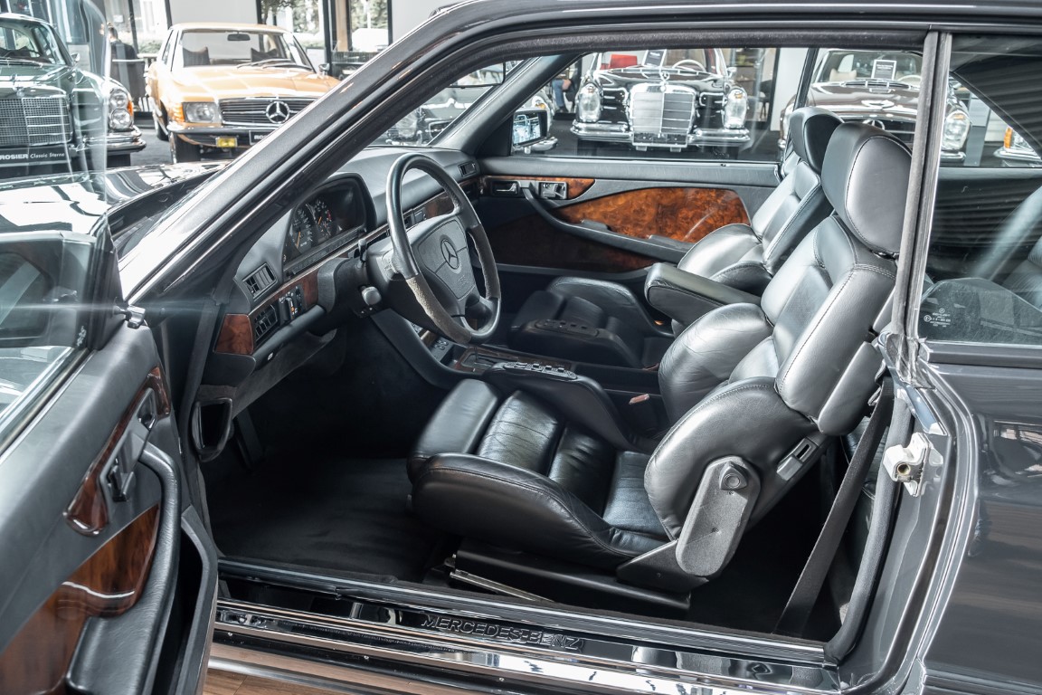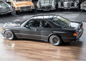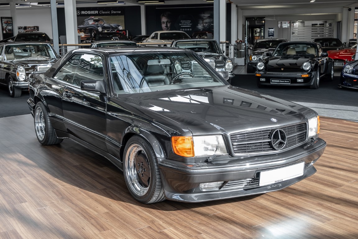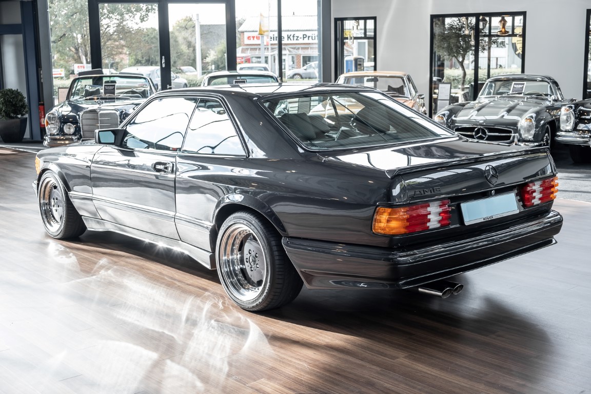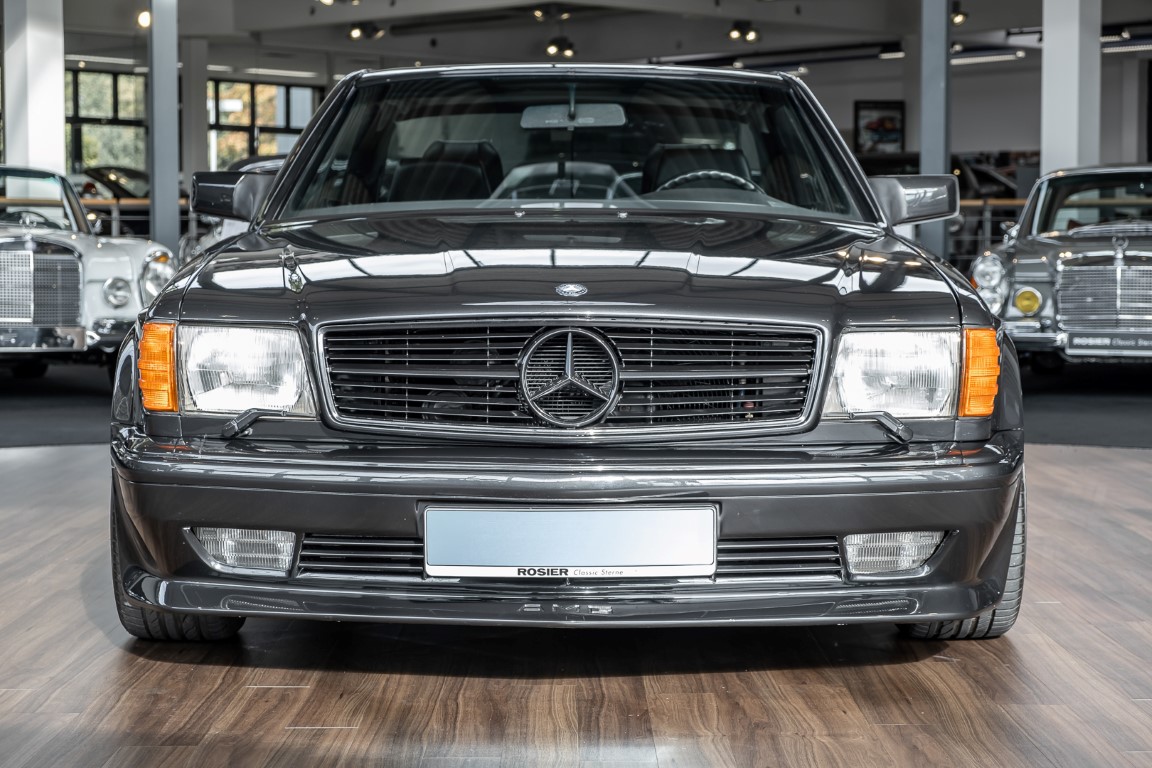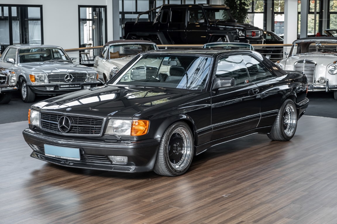 Die mit dem 5,6-l-Achtzylinder ausgerüsteten Typen 560 SEC und 560 SEL der Baureihe 126 waren zum Zeitpunkt ihres Erscheinens die leistungsstärksten bis dahin gebauten Mercedes-Benz Serien-Pkws und leisteten ab 1987 aufsehenerregende 297 PS. Für all diejenigen Kunden, die sich nach Mehr sehnten, mussten sich beim damals noch eigenständigen Mercedes-Tuner AMG aus der beschaulichen Gemeinde Affalterbach umschauen. Das ehemals 5.6 Liter-V8-Aggregat wurde auf 6.0 Liter aufgebohrt und eine eigens von AMG konstruierte Vierventil-Technik verbaut, die es damals bei Mercedes nicht gab. Damit erhielt das Fahrzeug eine Leistungssteigerung von 279 PS auf unglaubliche 350 Pferdestärken - und das trotz KAT! Der Neupreis des Fahrzeuges lag bei etwa 270.000,00 DM. Nur rund 50 dieser exklusiven Exemplare wurden damals durch die Hand der AMG-Ingenieure auf dem „Serien-SEC“ aufgebaut. Mit einem muskulösen Breitbau, sportlichen 17-Zoll-AMG-Felgen und einer prachtvollen Innenausstattung entzückte man die damalige Exklusiv-Kundschaft.