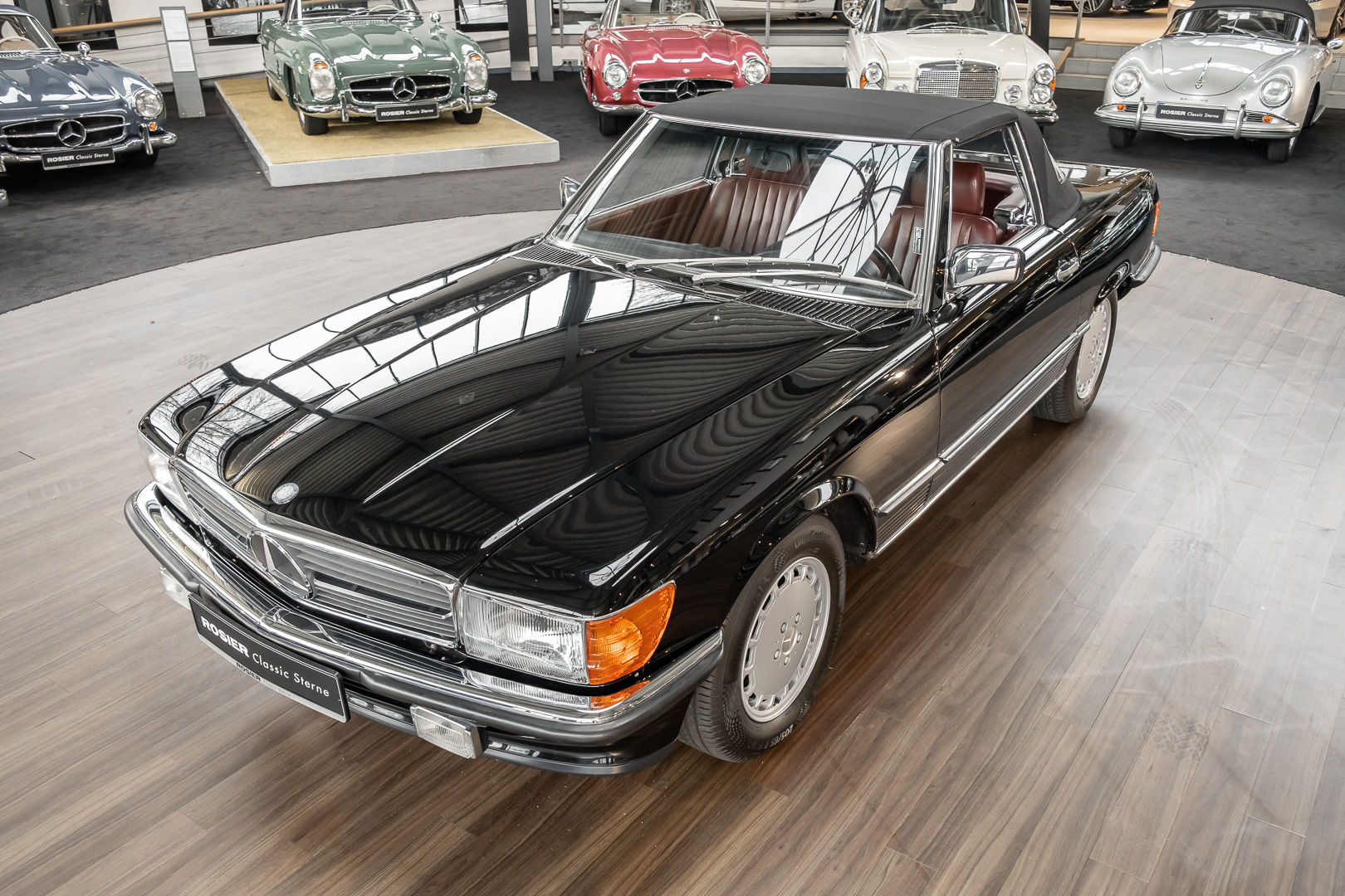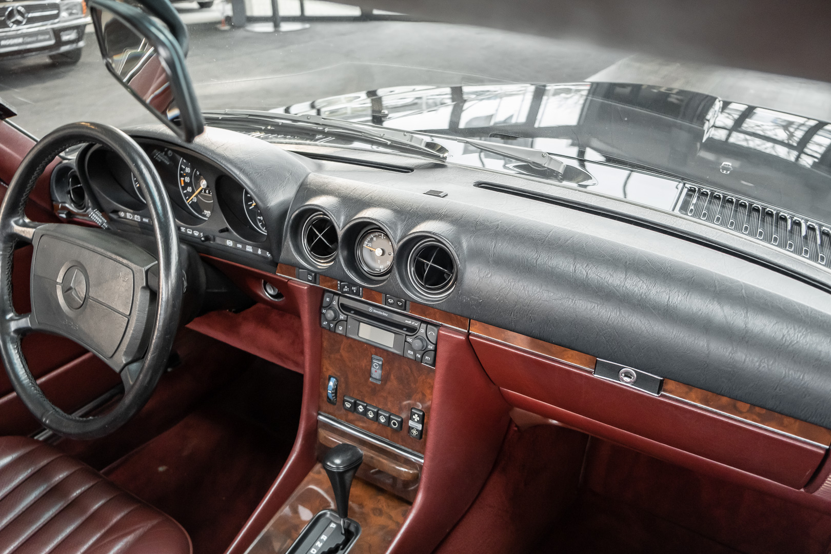 Wir freuen uns, Ihnen diesen tollen 560 SL der begehrten Baureihe 107 anbieten zu können. Die seltene und charmante Farbkombination aus tiefschwarzem Lackkleid (040) und rotem Leder steht dem SL außerordneltich gut zu Gesicht. Das Fahrzeug ist komplett auf europischen Standard umgerüstet und besitzt ein sauberes Carfax. Eine tolle Gelegenheit ein gepflegtes Fahrzeug mit überschaubarer Laufleistung zu erwerben. Gerne führen wir Ihnen das Fahrzeug persönlich vor.
