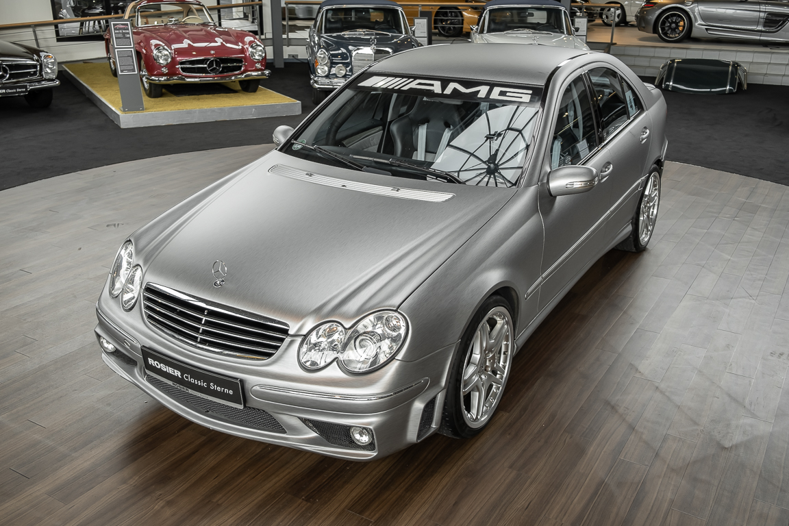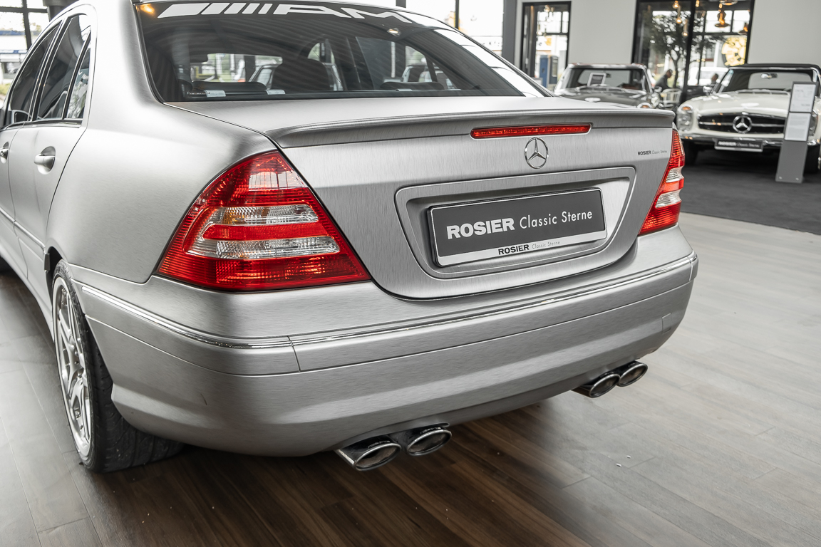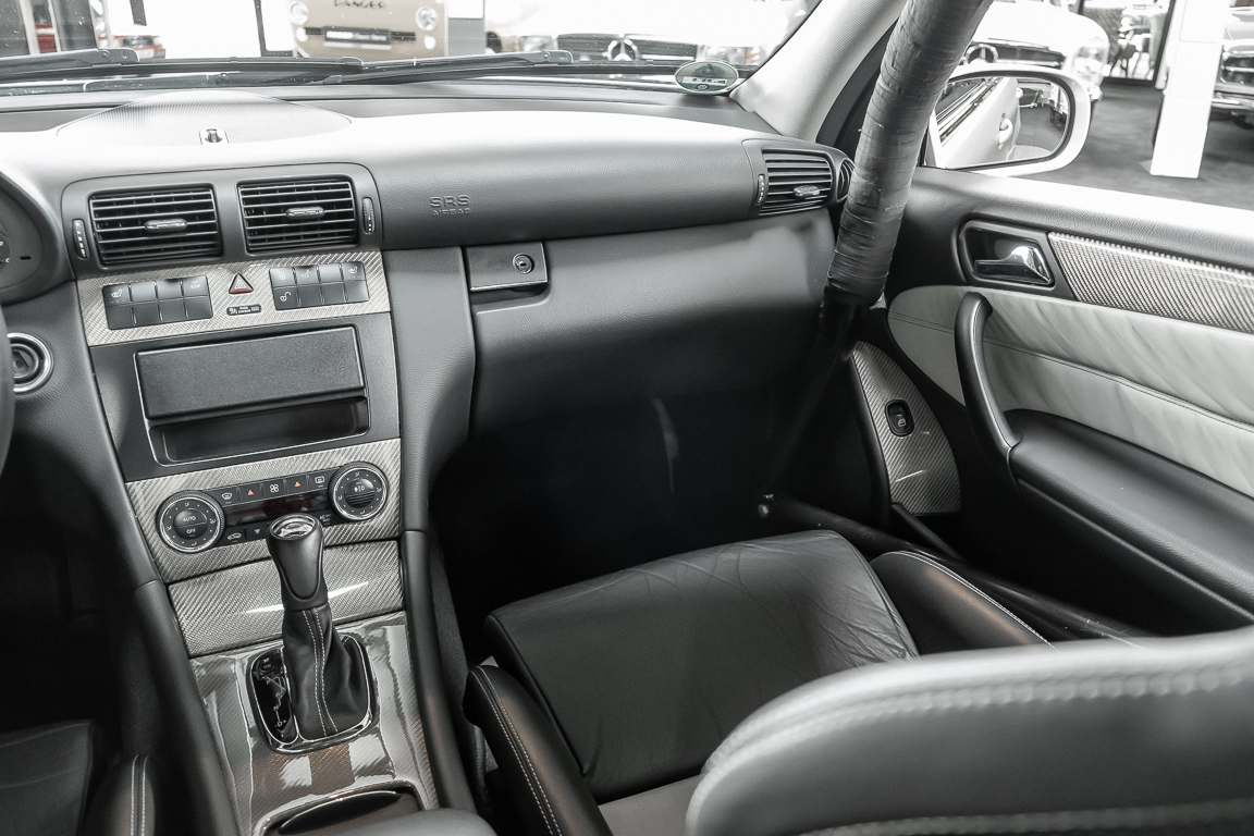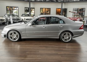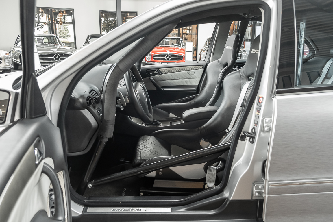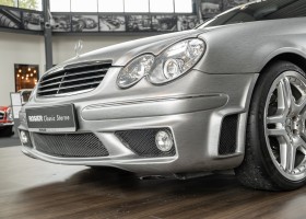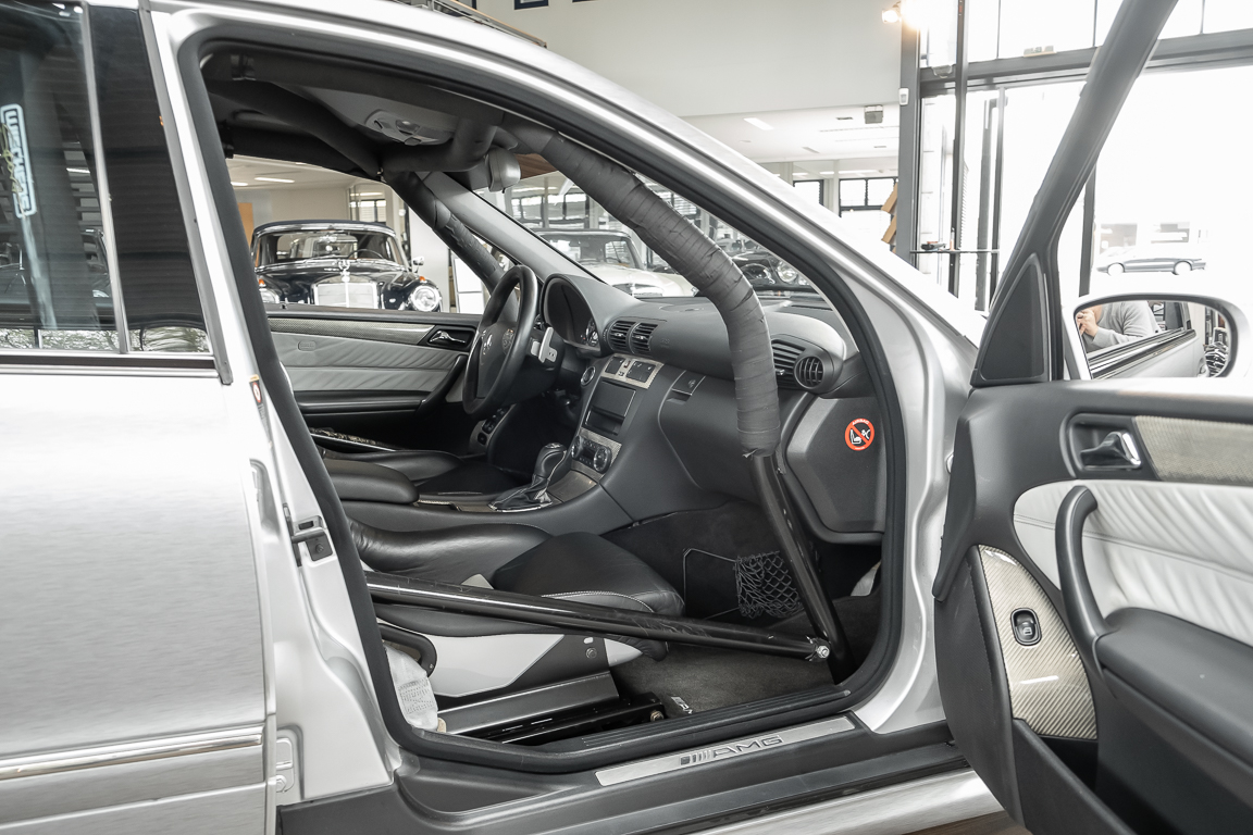 Einen ganz besonderen Vertreter der AMG-Gattung können wir Ihnen mit diesem C55 AMG Tracksport anbieten. Neben dem „klassischen“ Mercedes Tuning im Serienprozess baute AMG immer wieder auch Kleinstserien auf Individualwunsch. Im offiziellen Auftrag von AMG wurde bei der Firma HWA der Umbau von insgesamt nur 4 Fahrzeugen beauftragt, die für Rennsportveranstaltungen der Formel1 sowie der DTM als Renntaxis und Vorausfahrzeugen gebraucht wurden. Inhaber und Namensgeber der HWA AG war kein geringerer als Hans Werne Aufrecht, der zusammen mit Erhard Melcher im Jahre 1967 das Automobilsport-Unternehmen AMG gründete und später an die Daimler AG verkaufte. Aufrechts Spezialgebiet blieb aber immer der Umbau bzw- Aufbau spezieller Rennausführungen. Auch dank seiner Mitarbeit ist das erste Black Series Modell der Mercedes-Geschichte, der SLK 55 AMG Black Series zu einem durchschlagenden Erfolg geworden.