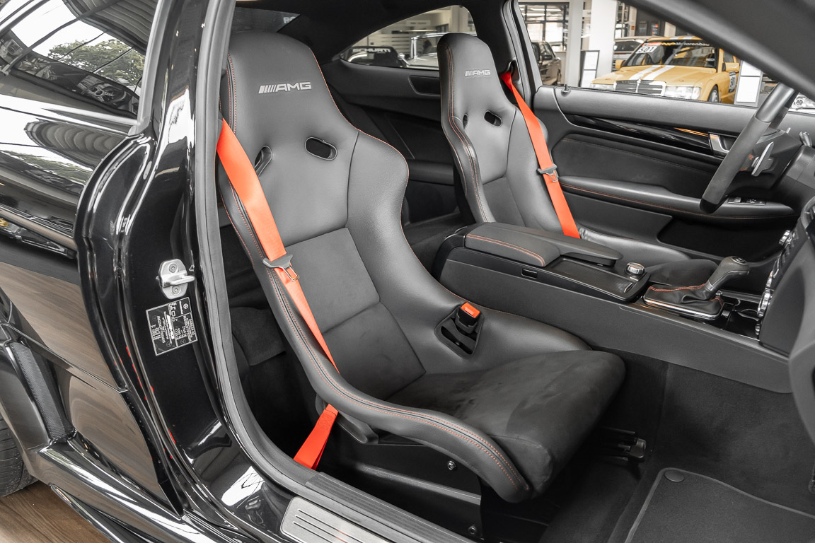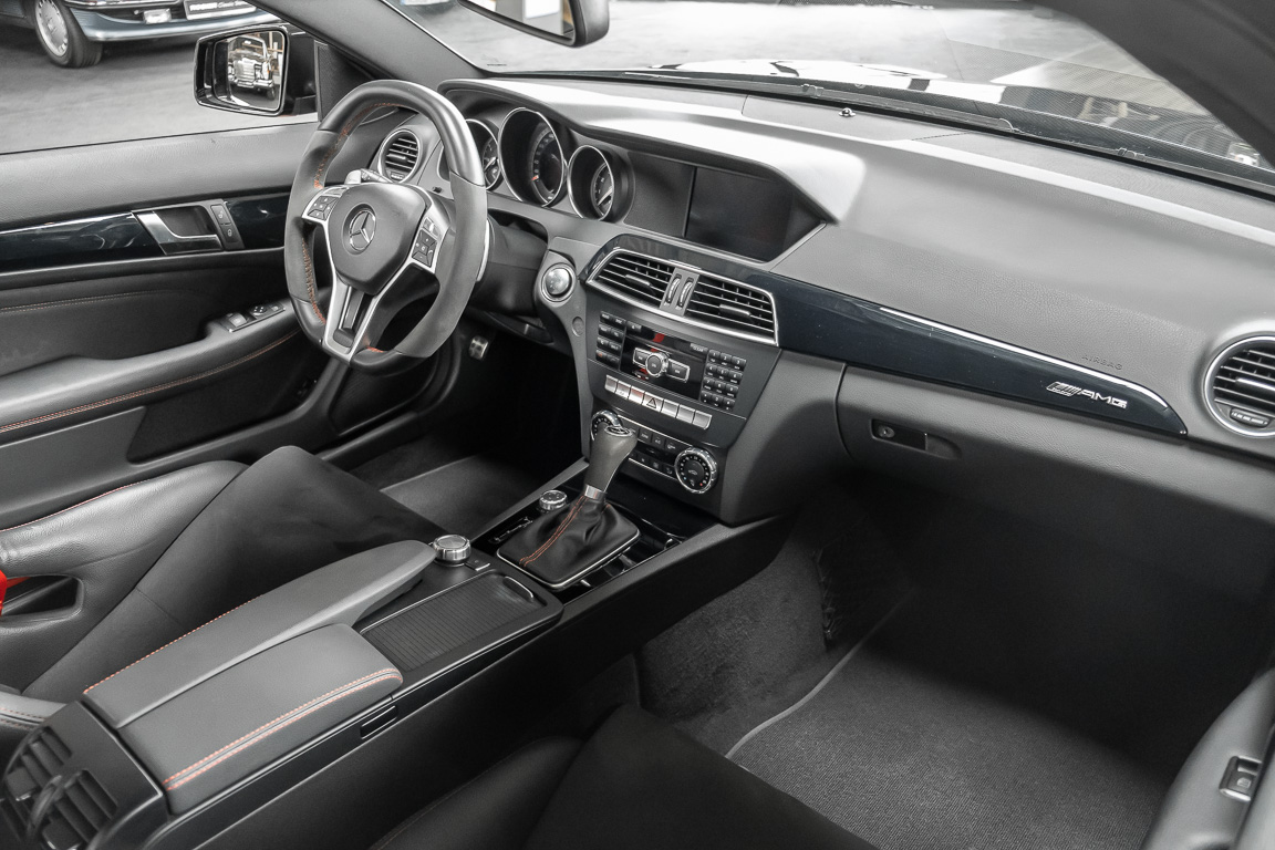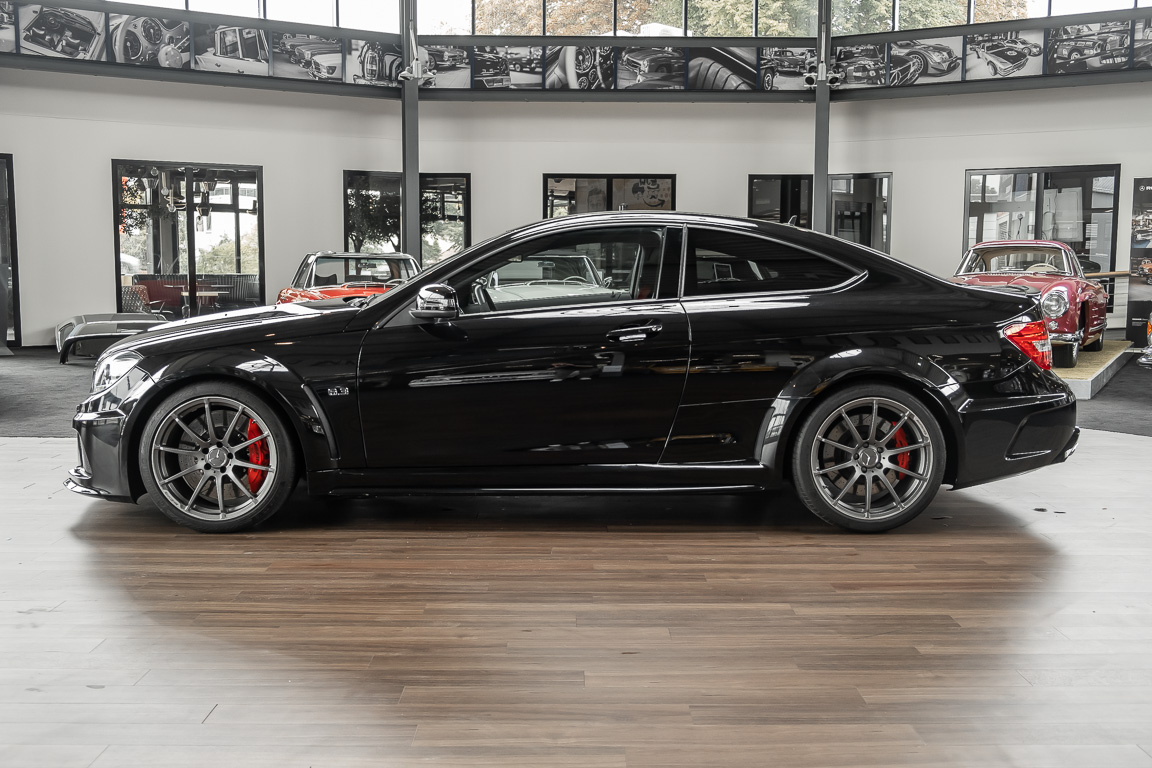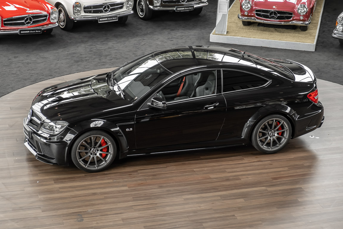 Wir freuen uns, Ihnen dieses C 63 AMG Coupé in der seltenen Black Series Ausführung anbieten zu dürfen. Als höchste Ausbaustufe der Baureihe 204 schöpft der Black Series 517 PS aus 6,3 Liter Hubraum – nur etwa 800 Enthusiasten kamen damals in den Genuss dieses Ausnahmesportlers. Insgesamt nur drei Vorbesitzer durften sich dem Genuss dieses V8 hingeben. Die Emotionen, die dieser letzte echte AMG Sauger weckt, sind nur schwer in Worte zu fassen. Die Lackierung in Obsidian Schwarz Metallic in Kombination schwarzem Alcantara und roter Ziernaht steht diesem Black Series wie ein Maßanzug. Das Fahrzeug ist komplett gewartet und wird mit frischer HU/AU an seinen neuen Besitzer übergeben. Nutzen Sie diese besondere Gelegenheit und erfahren Sie den Mythos dieses Black Series.