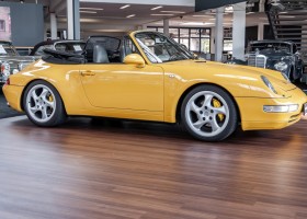 Dieses Porsche 993 Cabriolet wurde am 20. Februar 1995, in sportlichem Speedgelb und schwarzer Lederausstattung, an seinen Erstbesitzer im Bayrischen Germeringen ausgeliefert. Bei Ihm verblieb der Wagen die nächsten rund 14 Jahre. Etwa 80.000 km hatte er gelaufen und wurde bestens gepflegt. Etwa in 2010 fand er ein neues Zuhause in der malerischen Bodeseeregion, oberhalb von Lindau. Dort erwarb ihn sein bis heute letzter Besitzer für seine sorgfältig ausgewählte Sportwagensammlung.